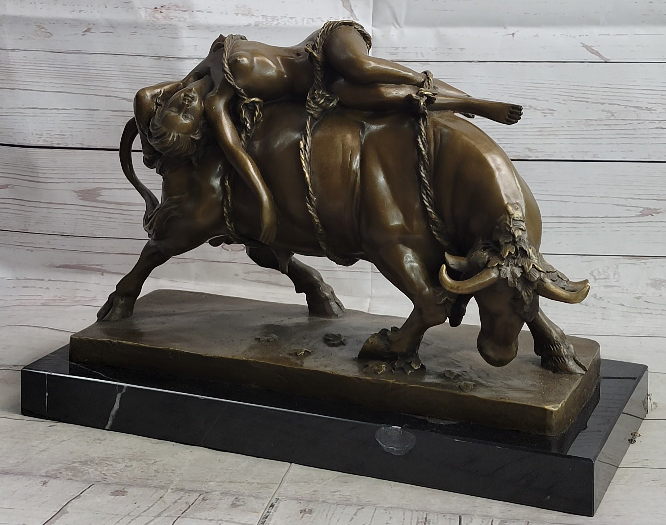 Nude Europa & Zeus as a Bull Bronze Sculpture Statue Art Greek Mythology