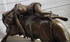 As a work of art, this sculpture invites contemplation and appreciation for the beauty and strength of these two magnificent creatures. It would make a valuable addition to any art collection or a thoughtful gift for someone who appreciates fine craftsmanship and artistic expression.Bronze Dimensions with Marble Base: Height 13" X Width 17"