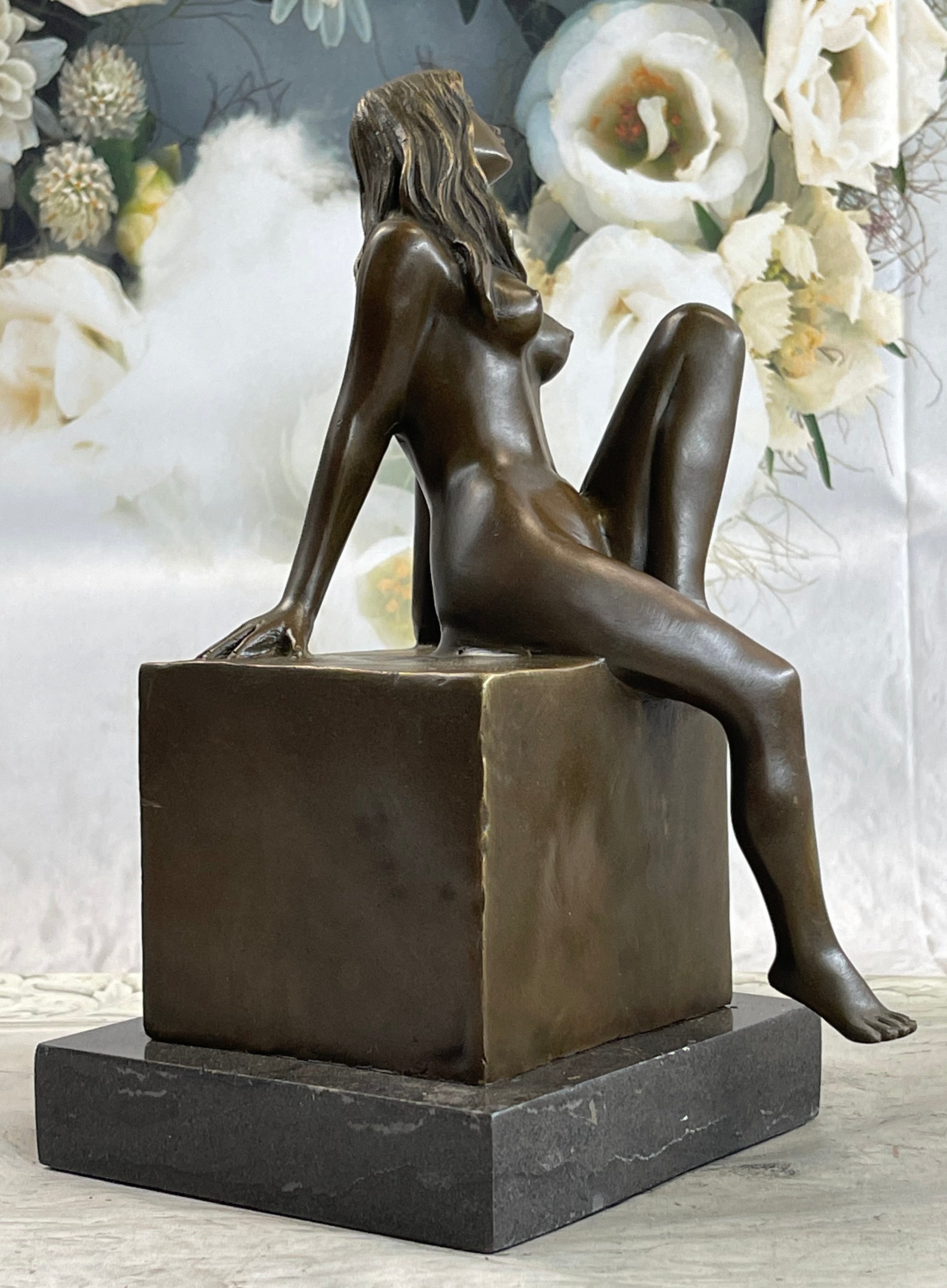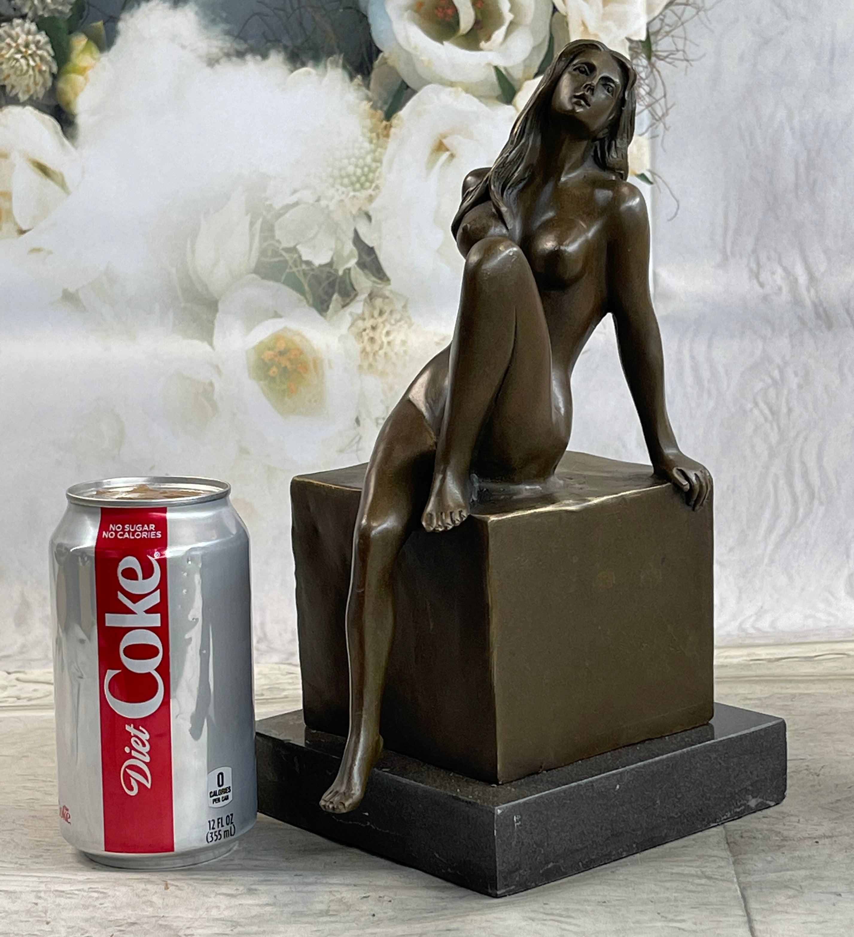 Nude Female Figure Girl Sitting One Leg Up Bronze Statue Sculpture Decor 11" x 5"