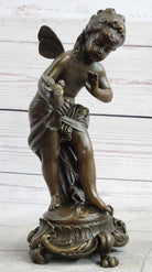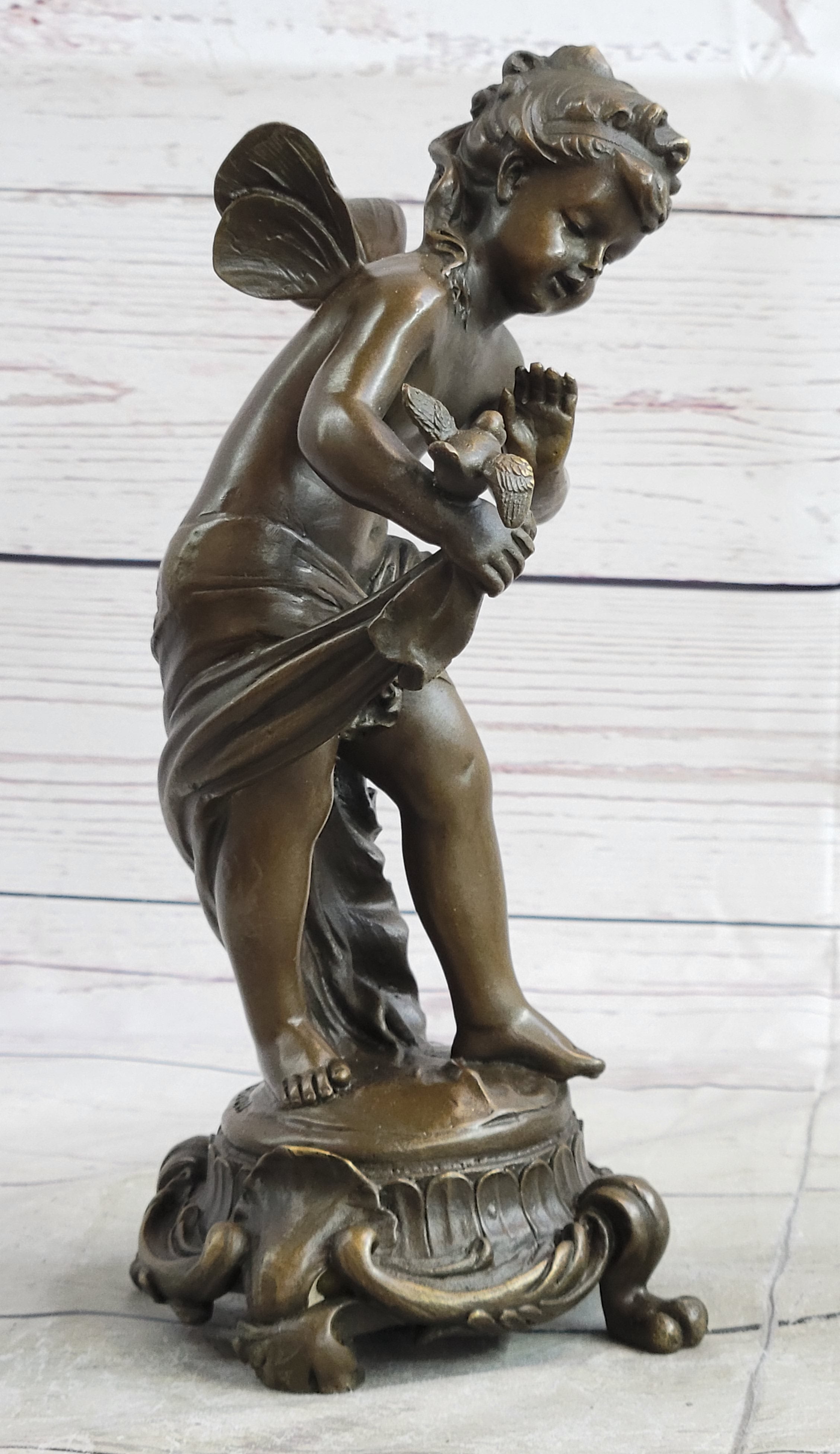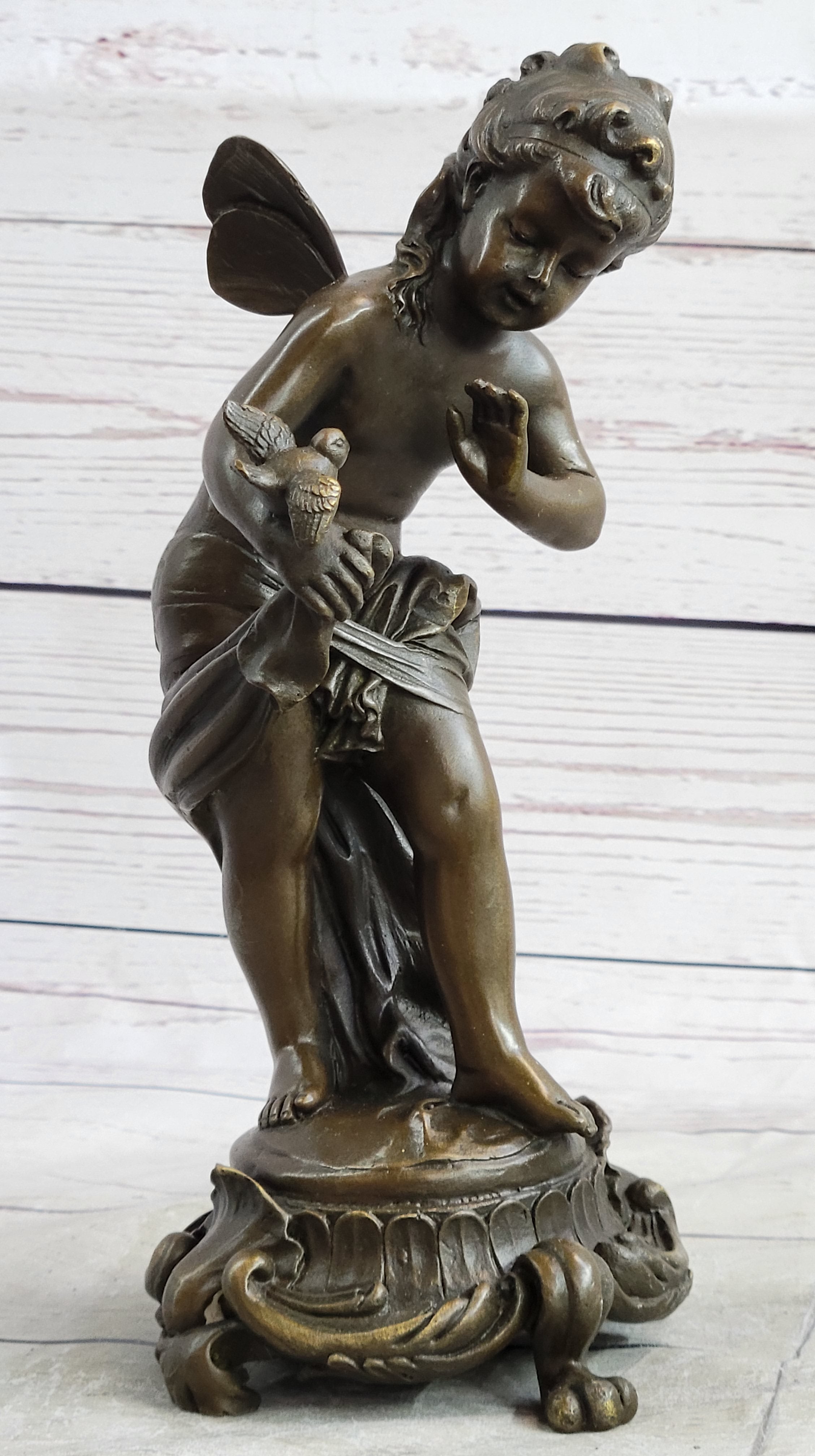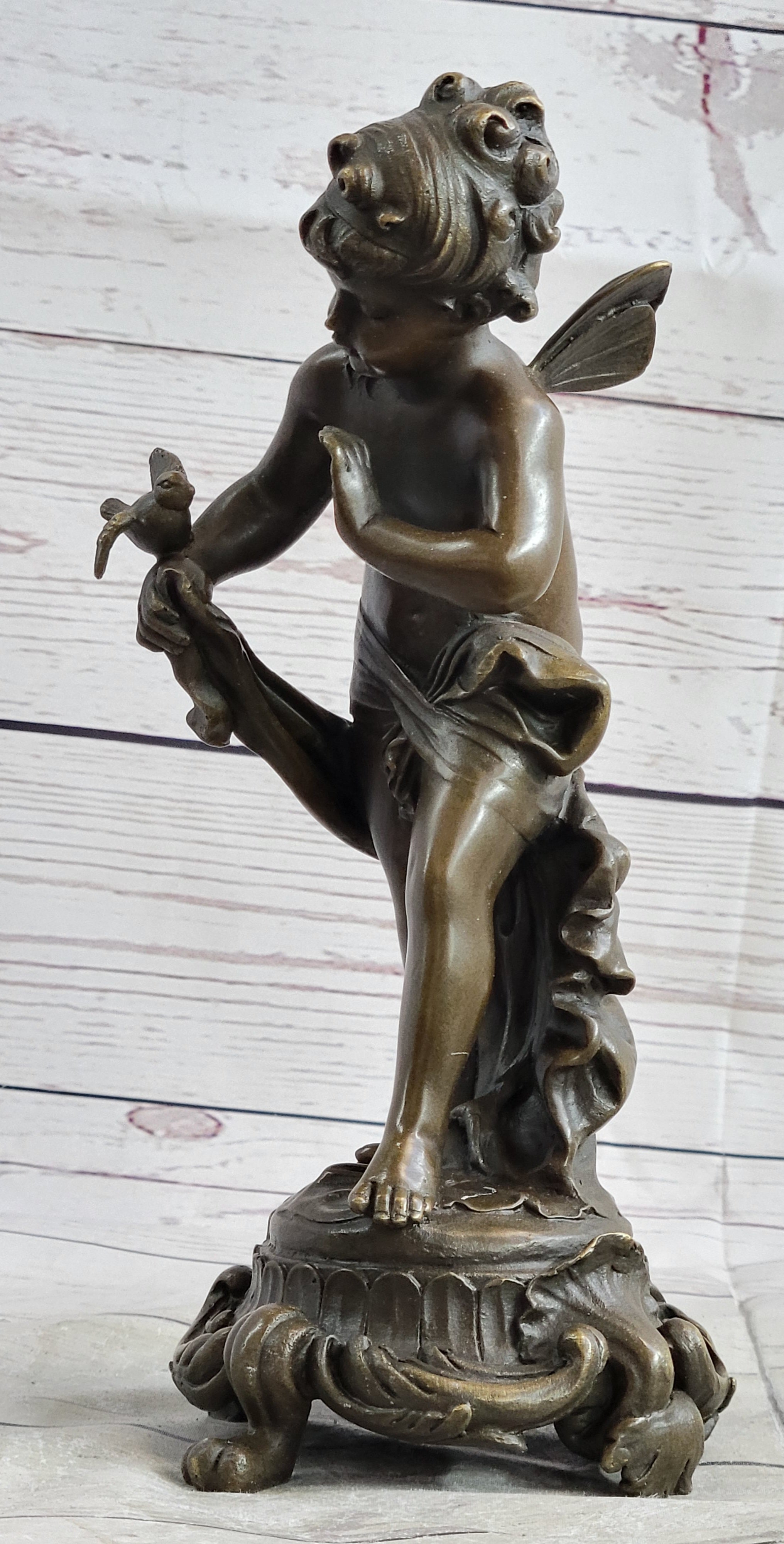 Nude Fairy Nymph Girl & Bird French Bronze Statue Sculpture Decor