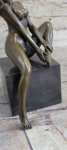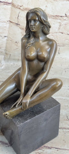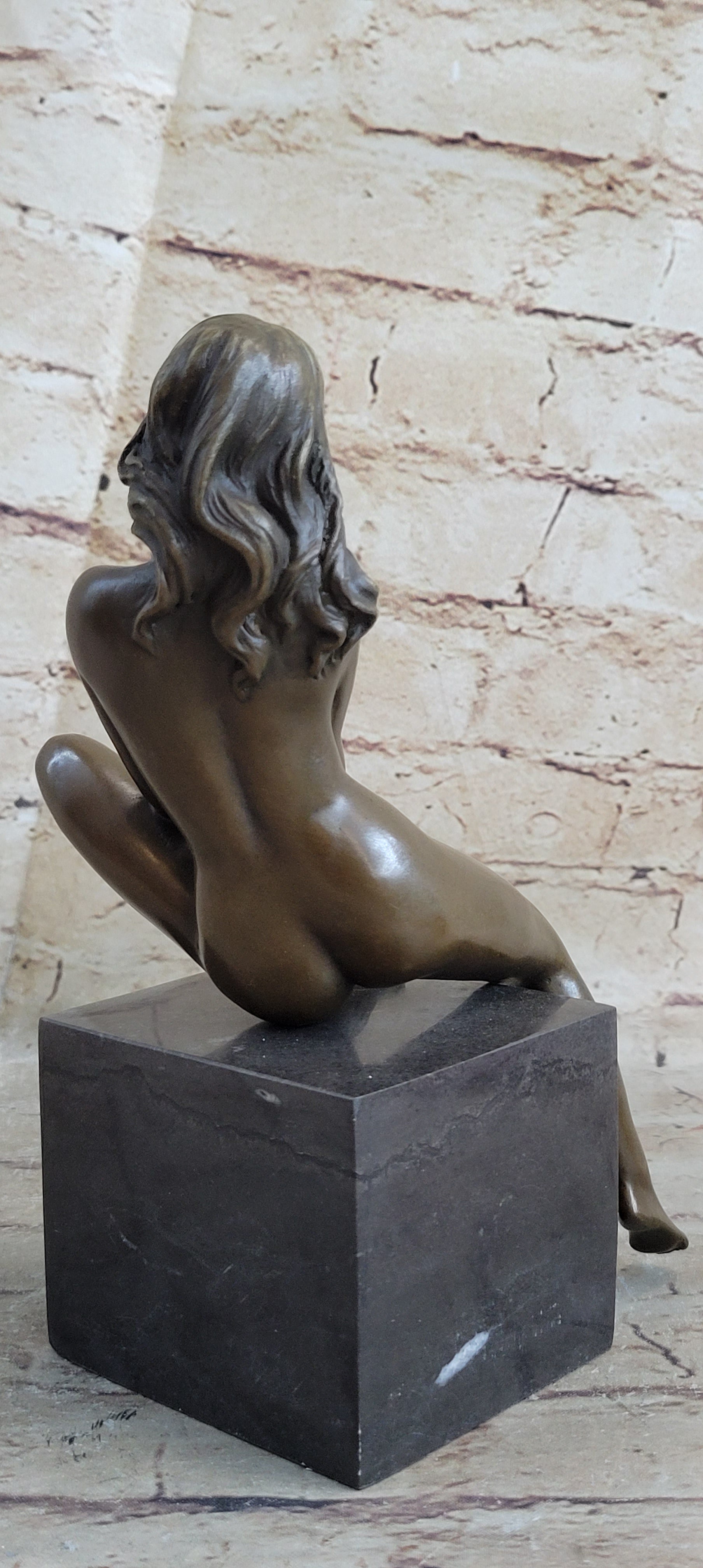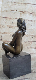 Nude Female Bronze Figure Sitting on Black Marble Base Original Signed Art Sculpture 8" x 8.5"