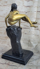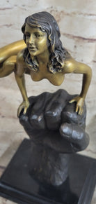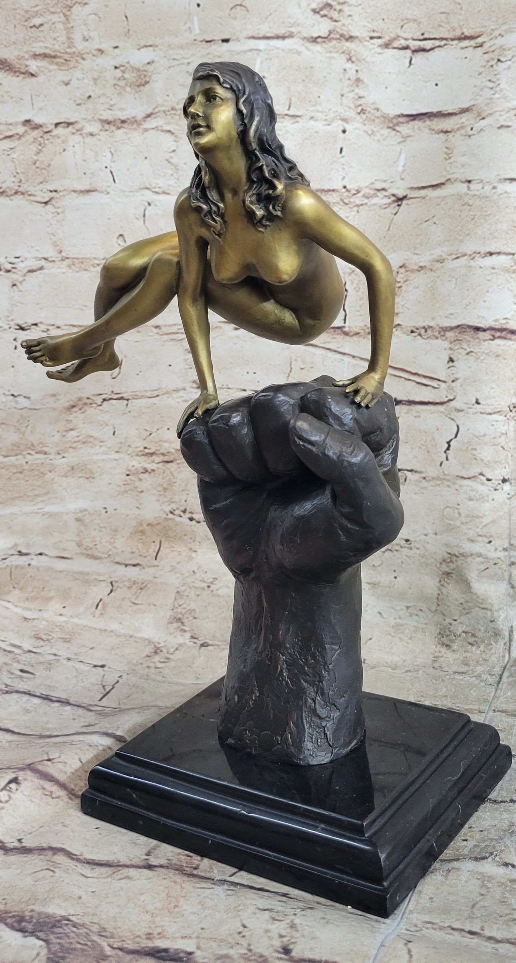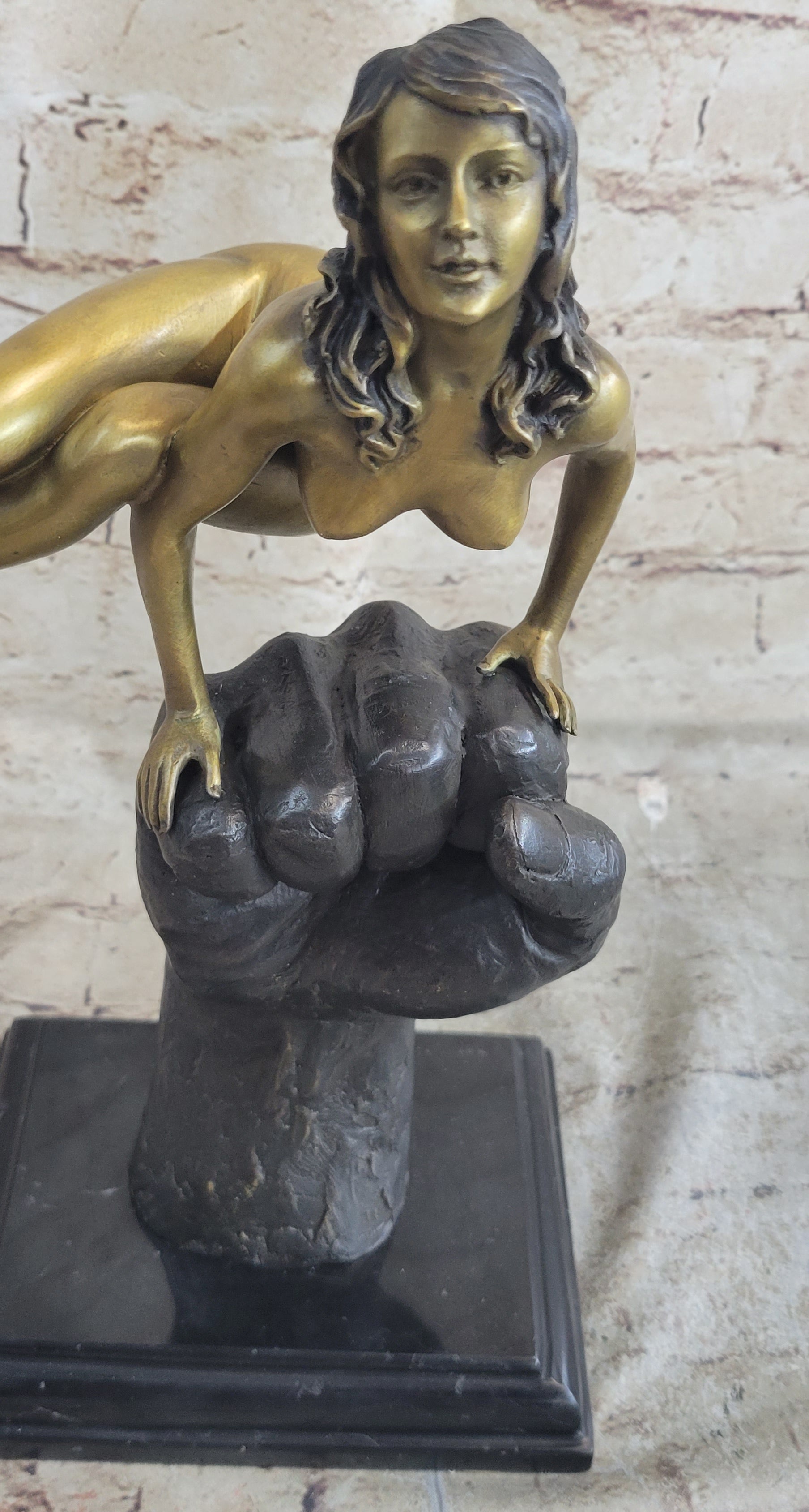 Nude Female Figure Balancing on a Fist Surreal Modern Art Bronze Sculpture Statue