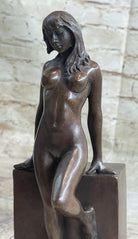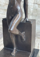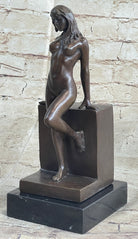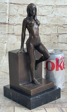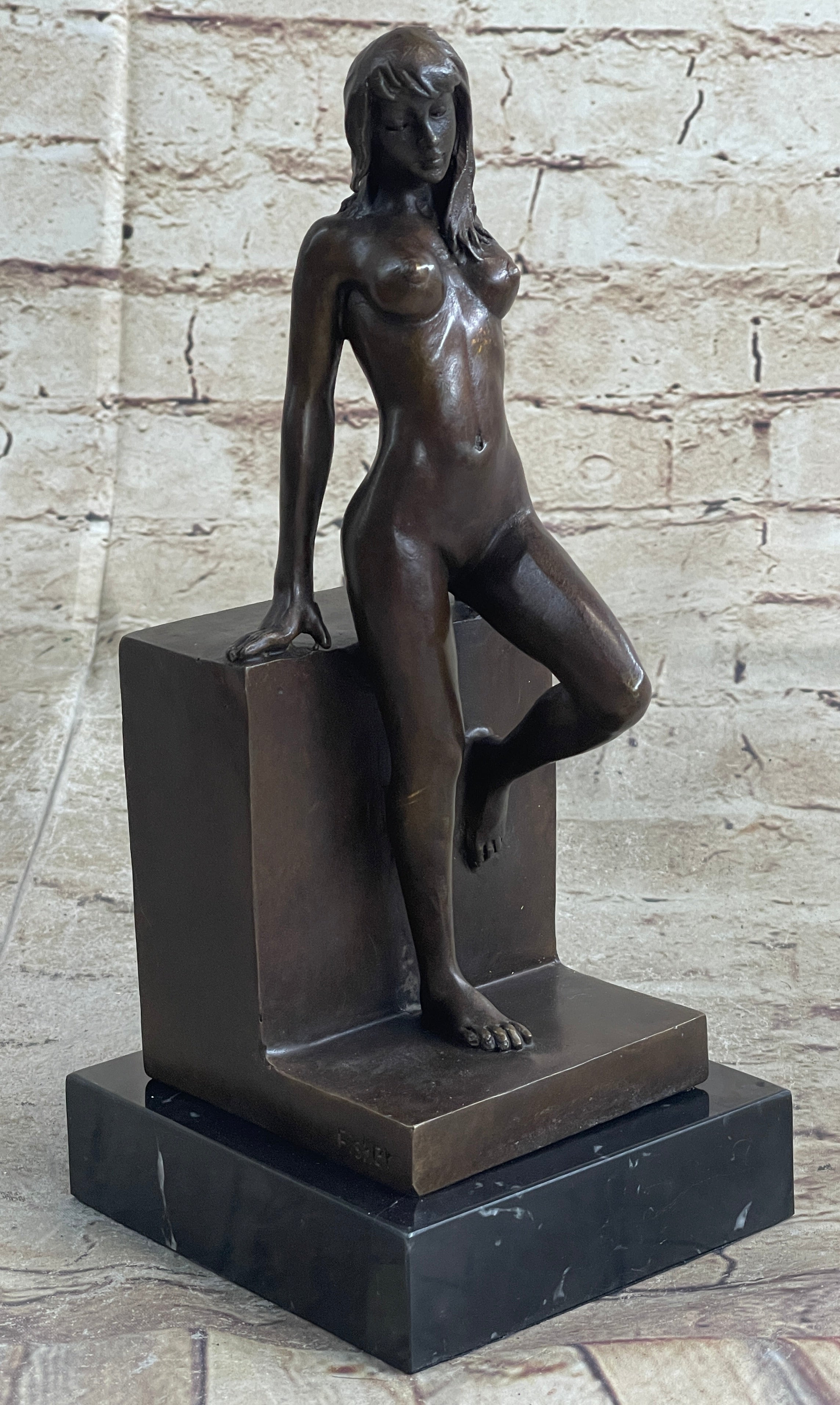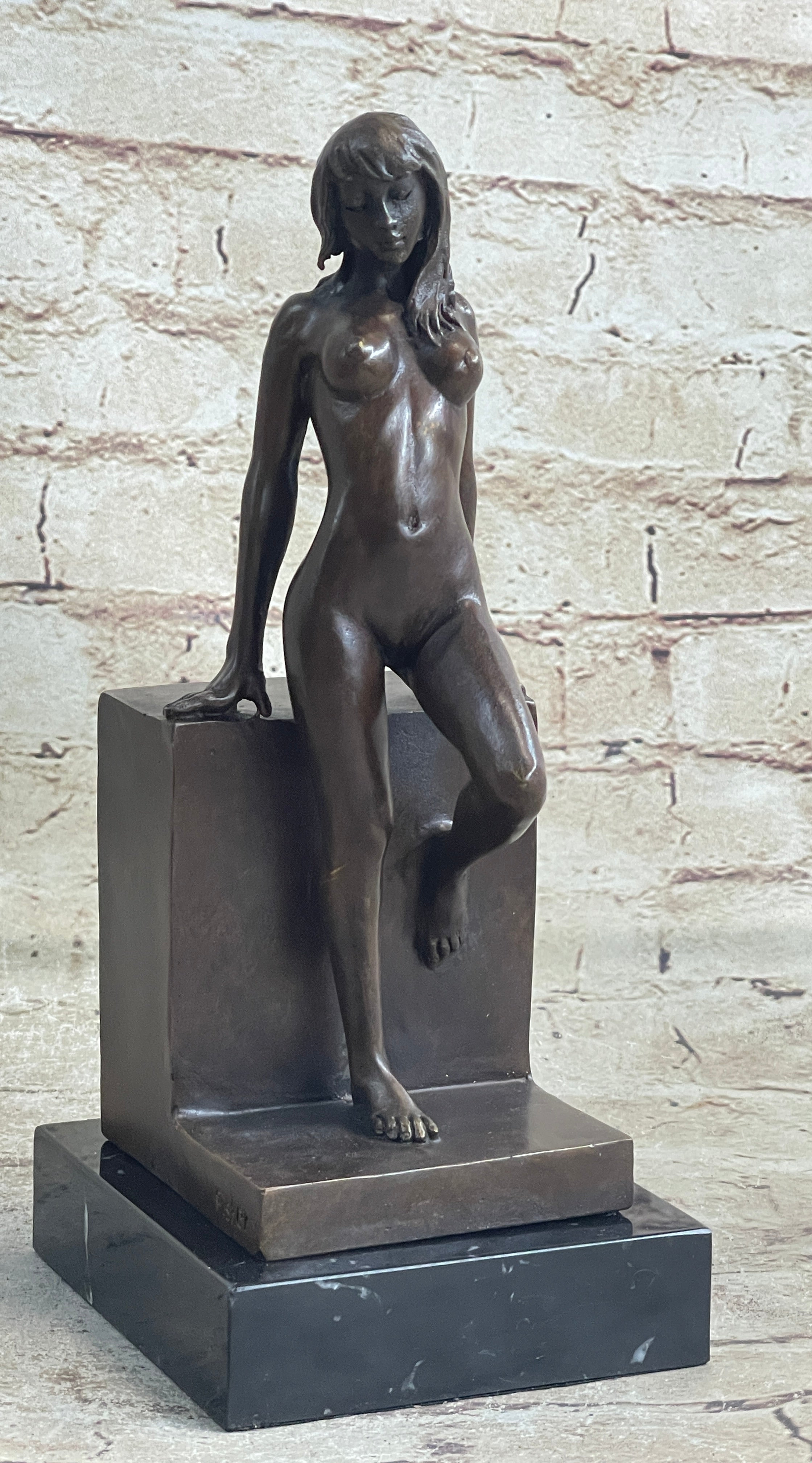 Nude Female Figure Girl Leaning Art Deco Bronze Sculpture Statue Figural Decor