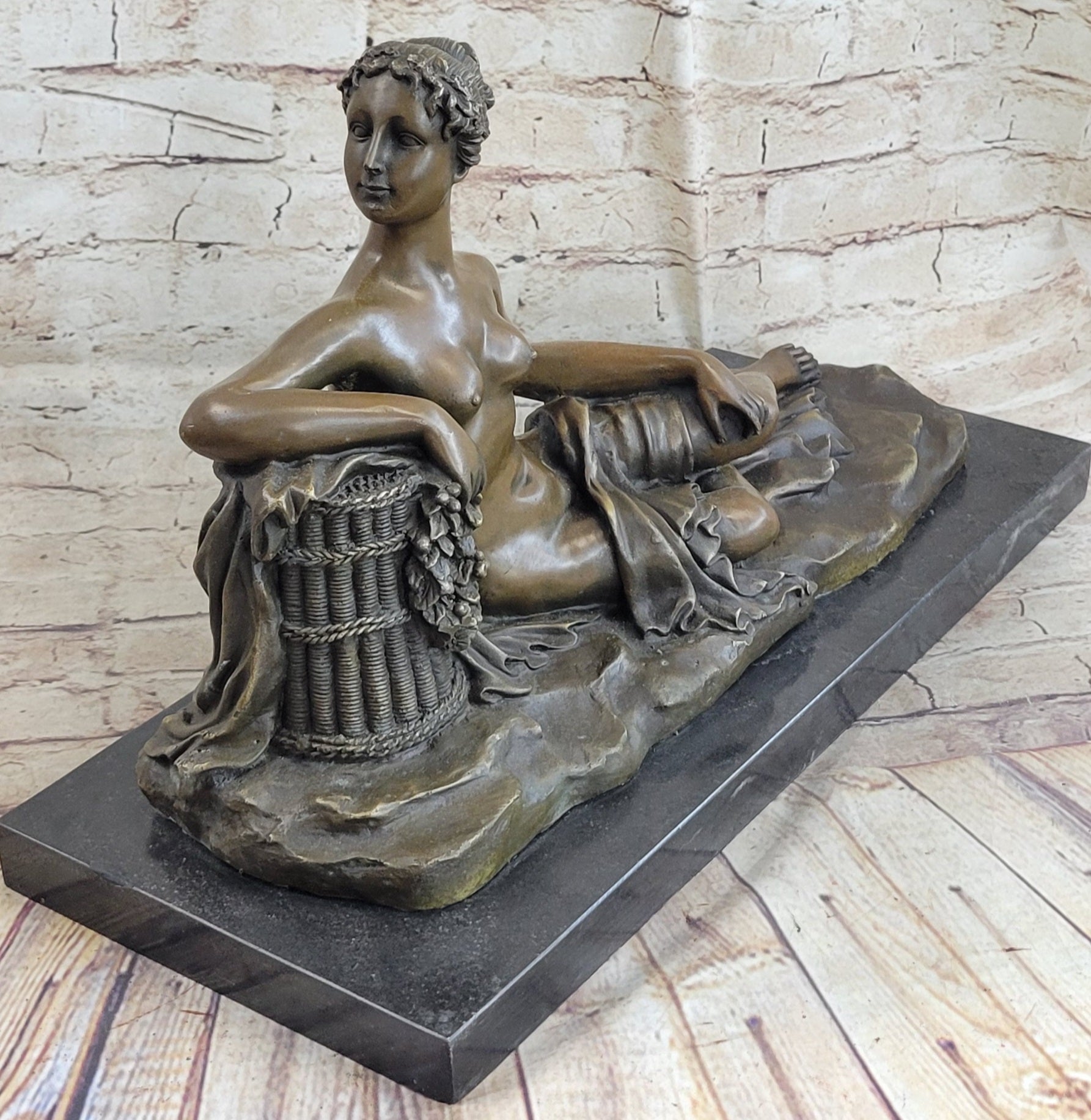 Nude Female Figure Greek Roman Goddess Naked Girl Lounging Bronze Metal Statue Sculpture Decor