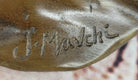 Mounted on a sturdy base and signed by the artist, this exquisite bronze statue is a testament to fine artistry and classic design. Whether displayed in a home, gallery, or office, it serves as a captivating centerpiece that embodies the elegance and sophistication of the Art Deco period.Bronze Dimensions: Height 6" X Width 4.5"