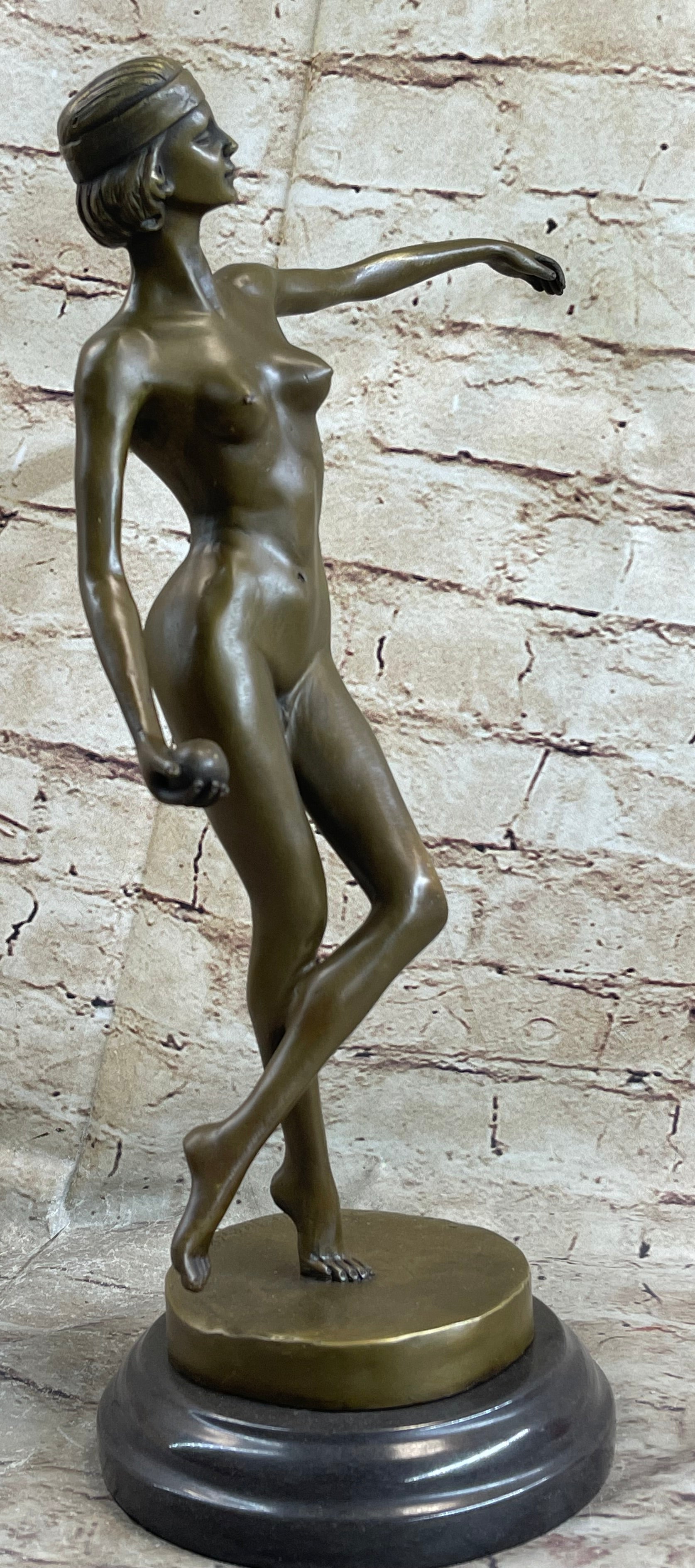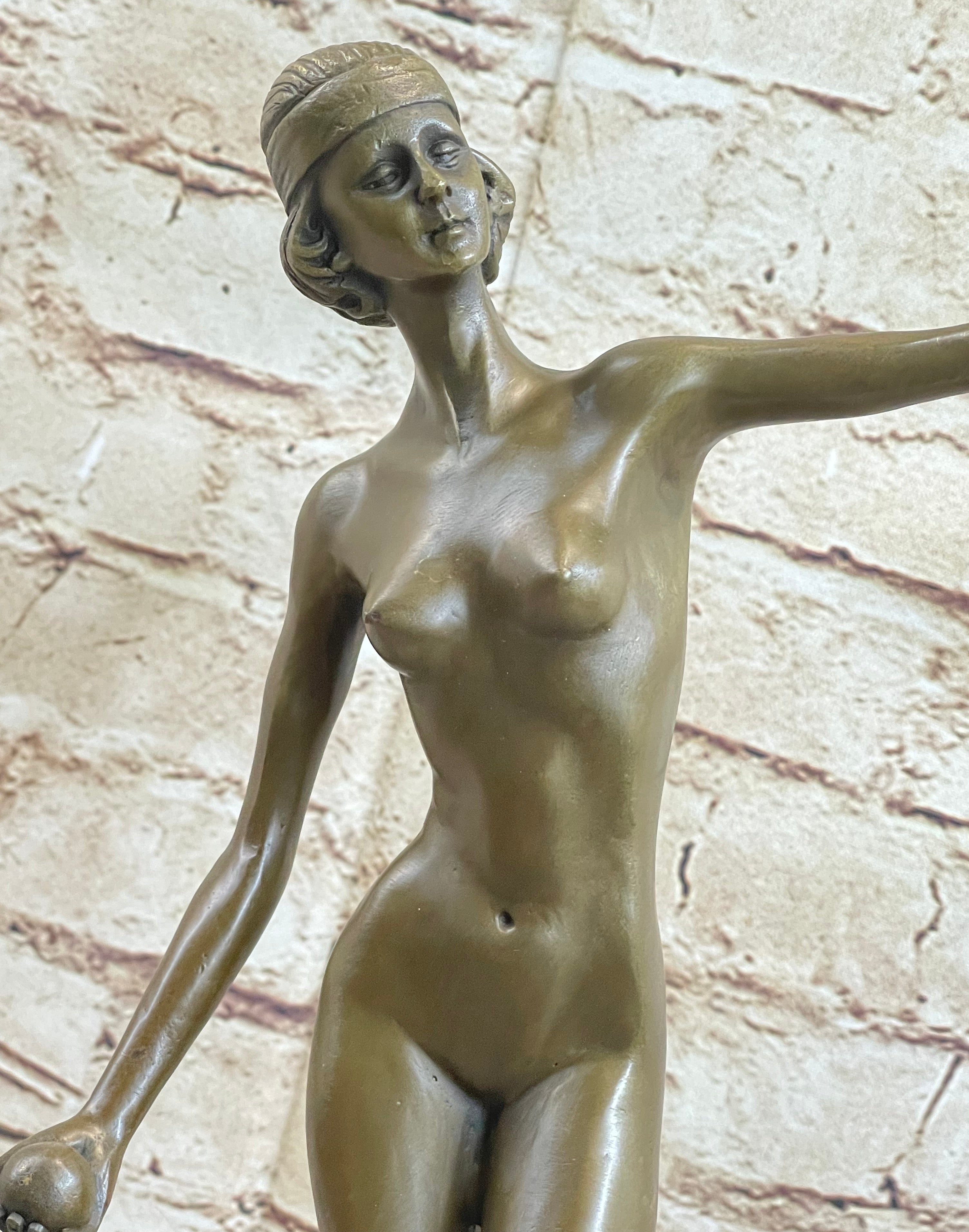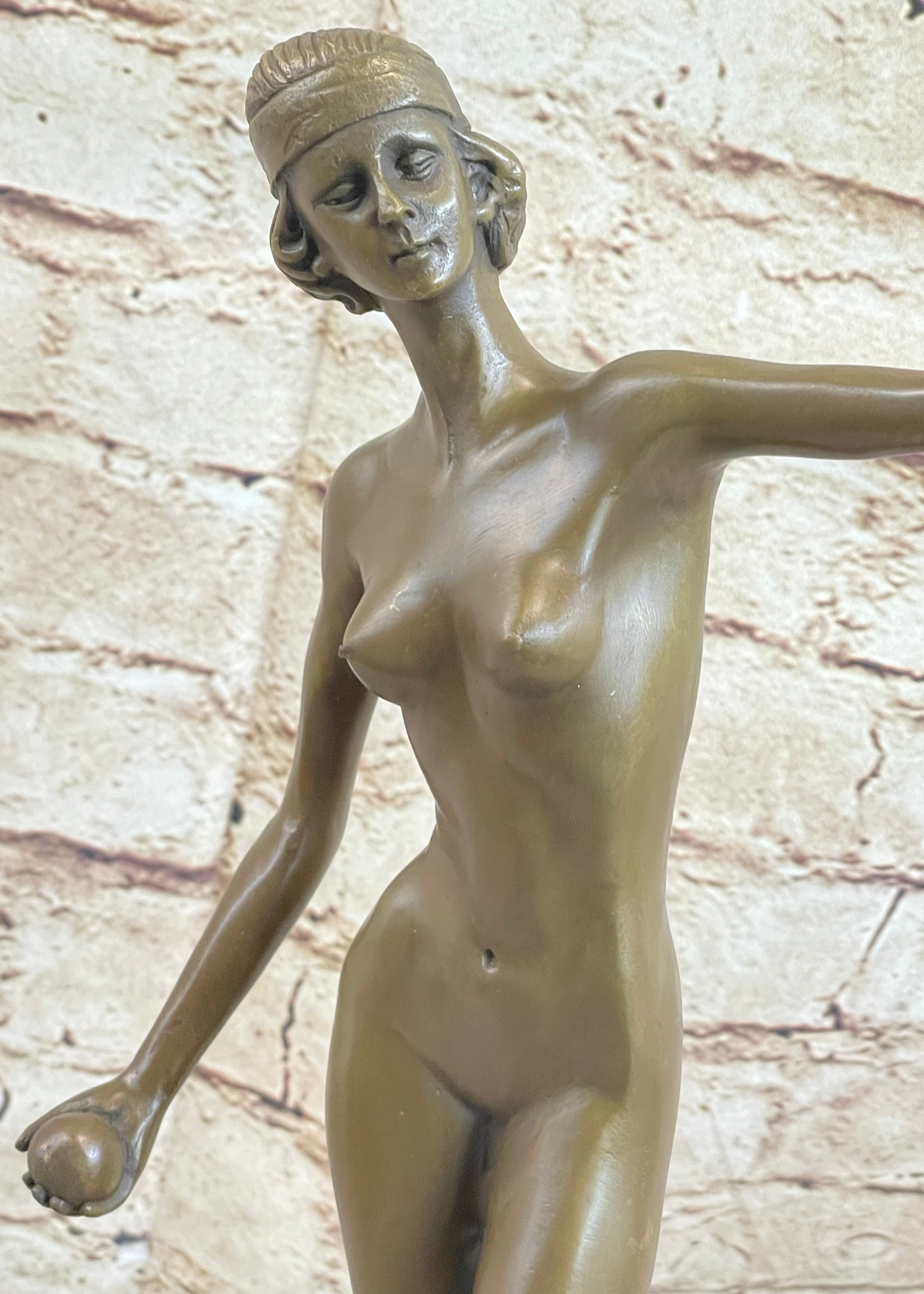 Nude Female Figure Naked Girl Holding Ball Bronze Metal Statue Sculpture Figurine Decor