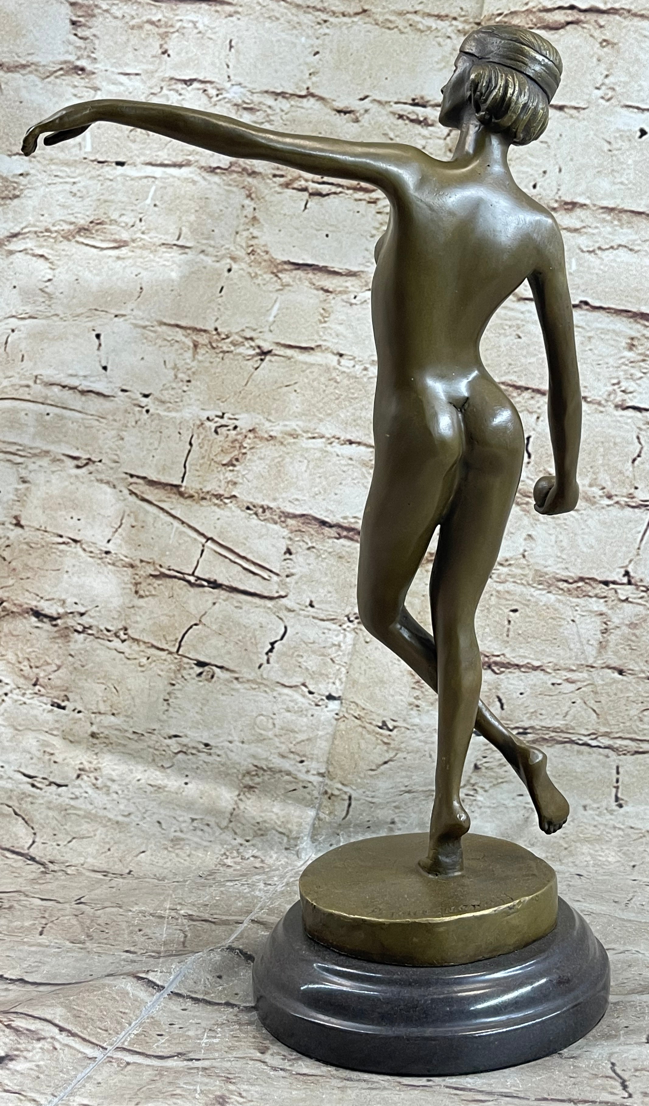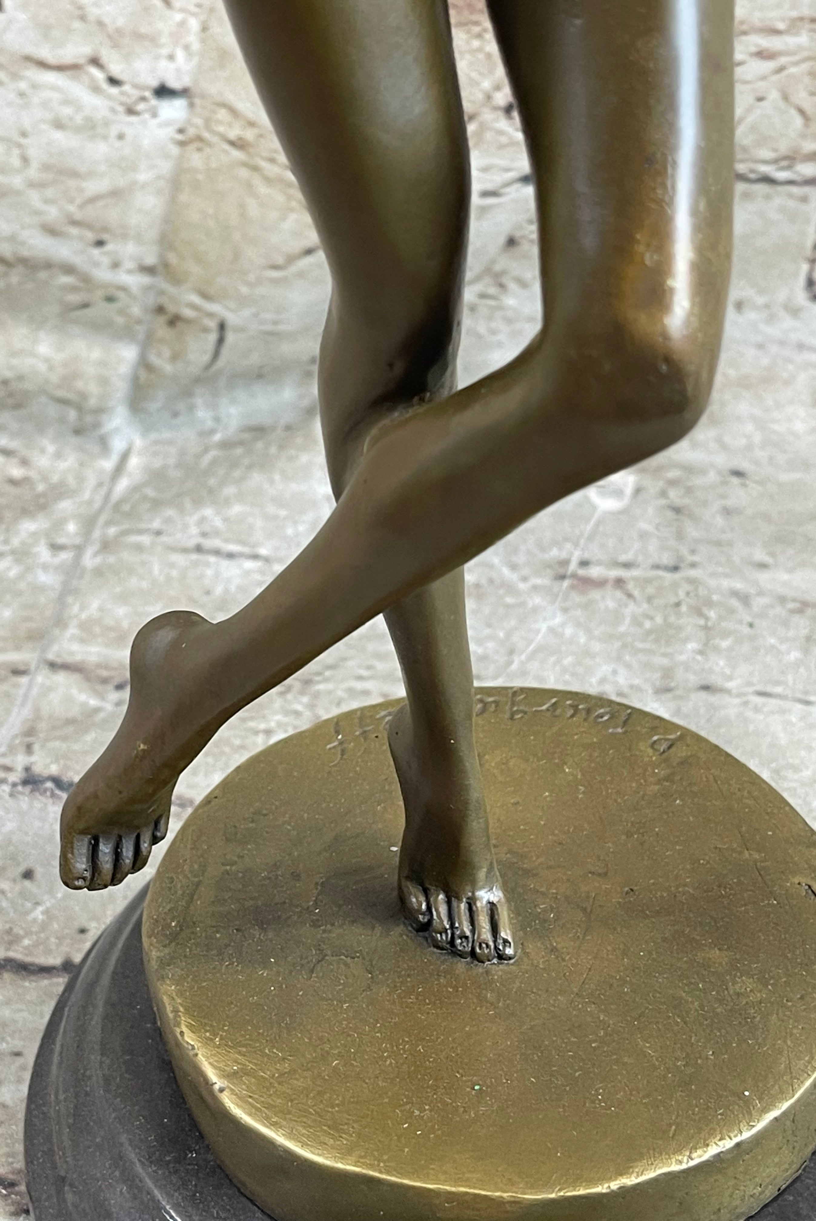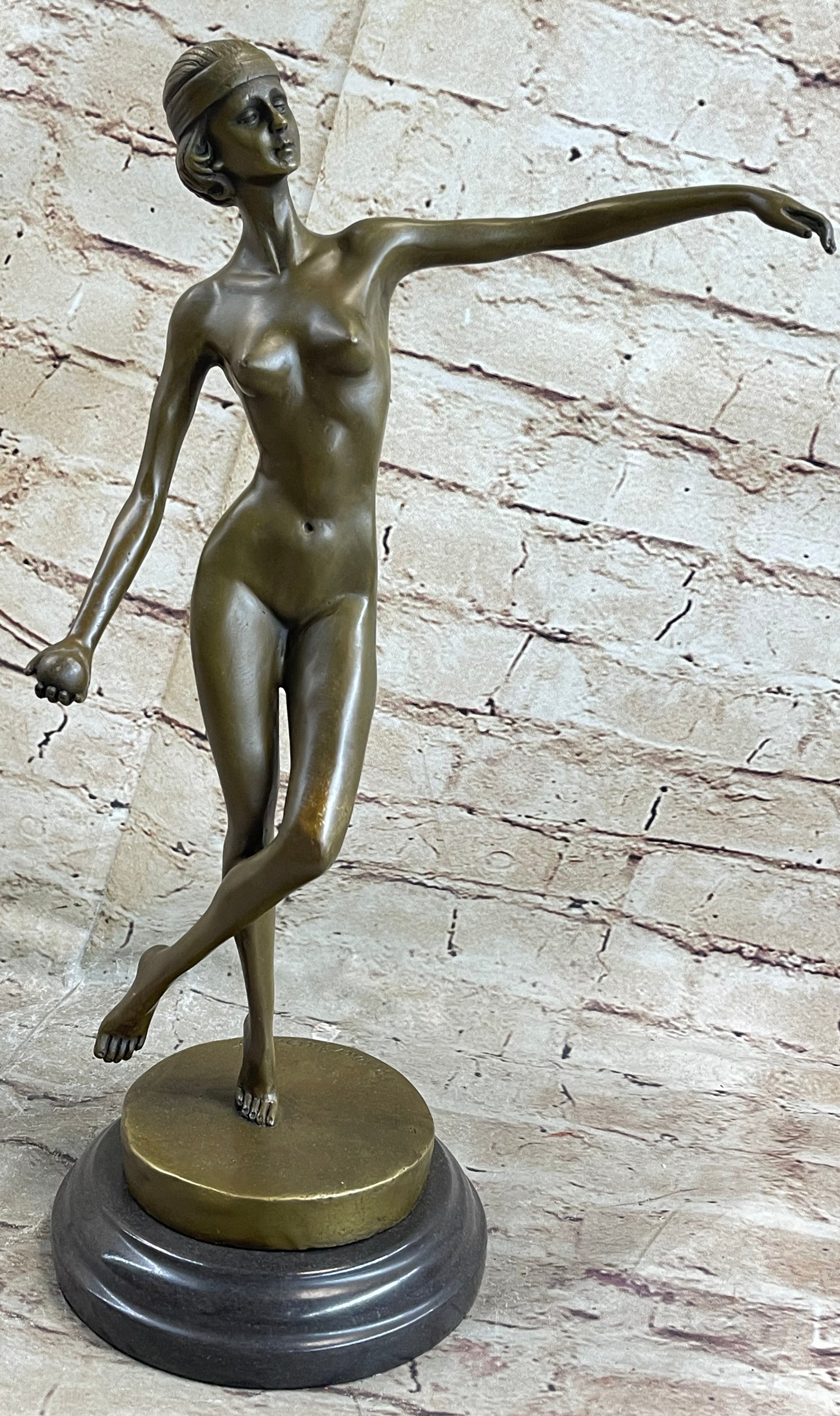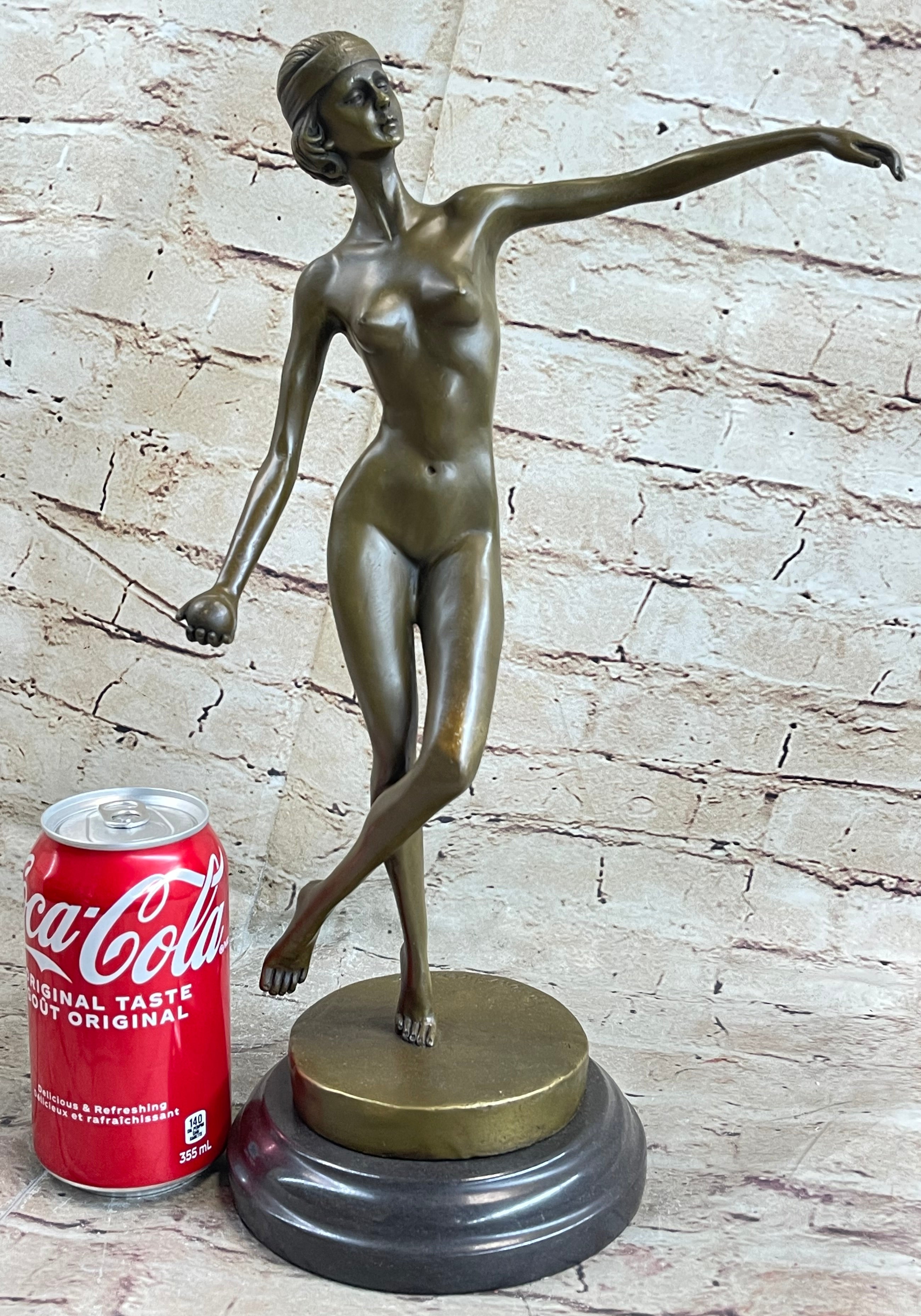 Nude Female Figure Naked Girl Holding Ball Bronze Metal Statue Sculpture Figurine Decor