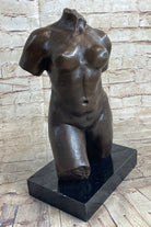 Nude Female Torso Bronze Statue Sculpture by Aristide Maillol on Marble Base 14" x 8"