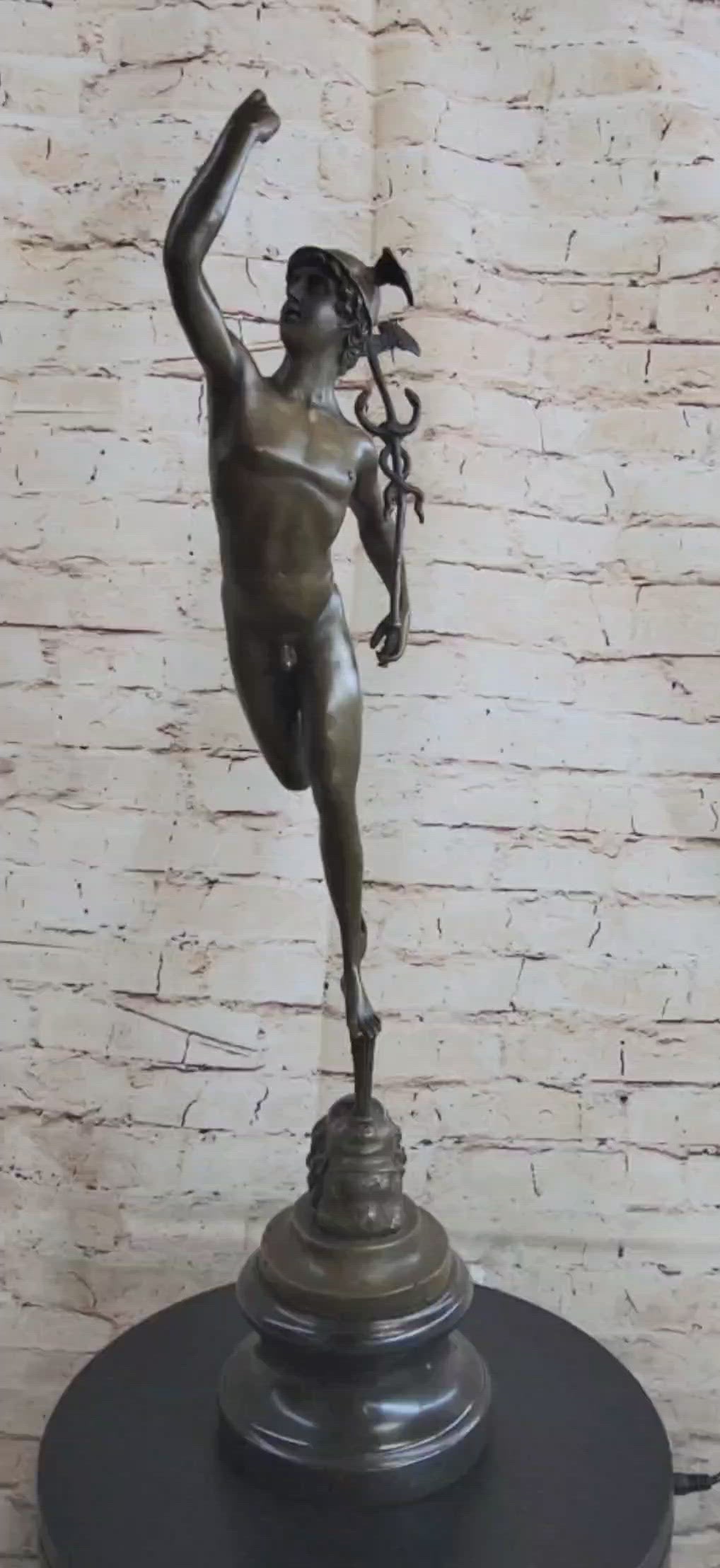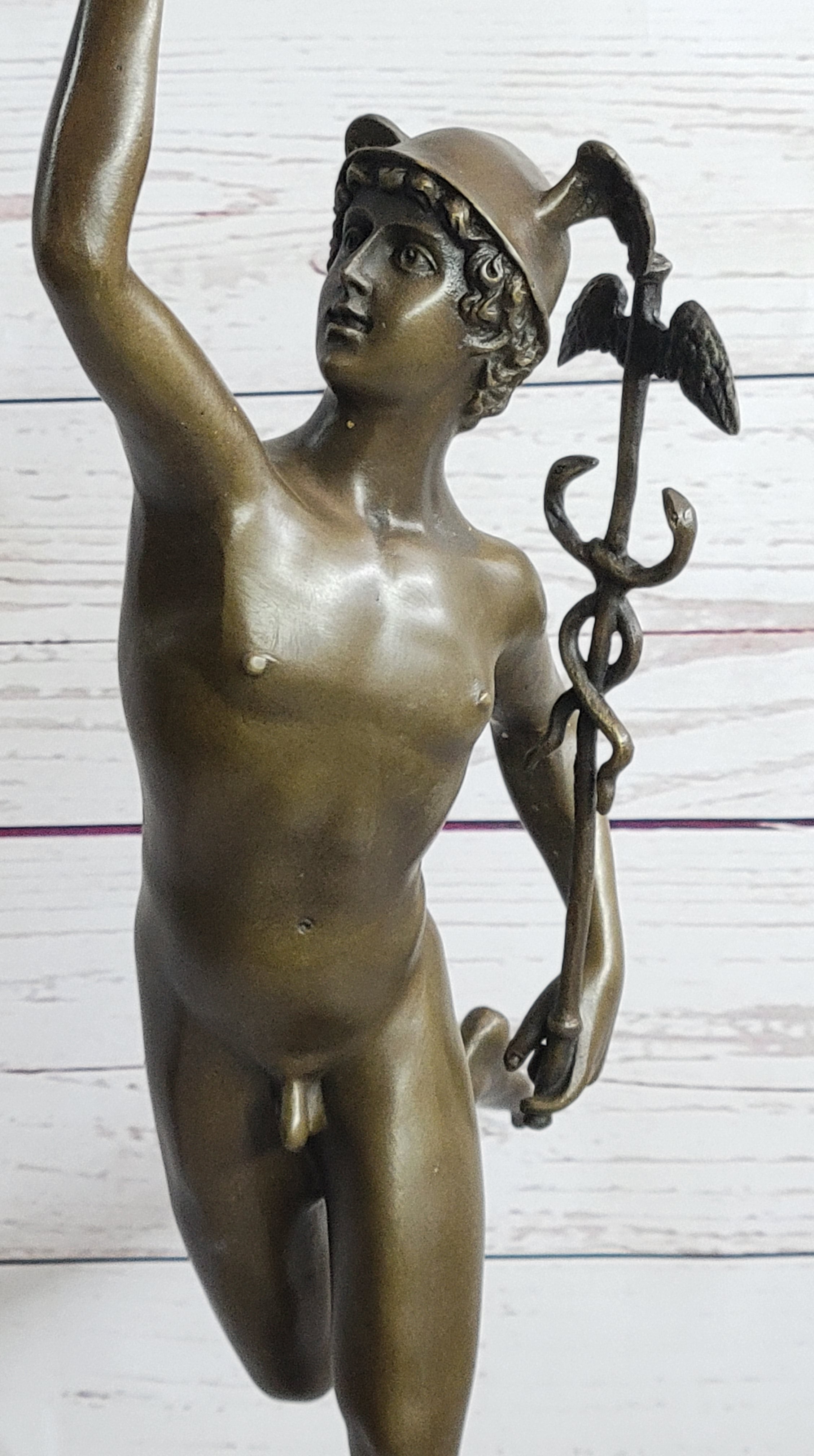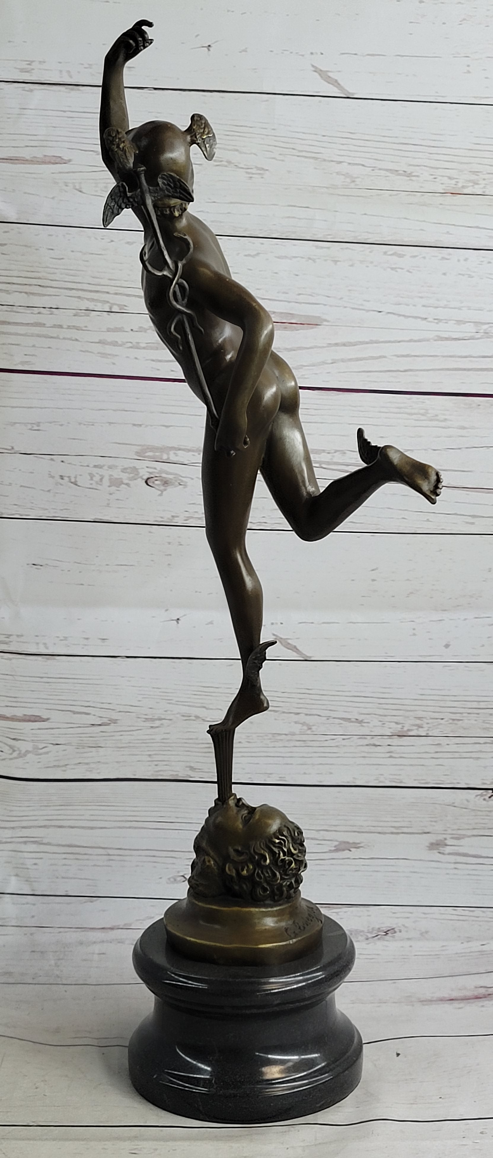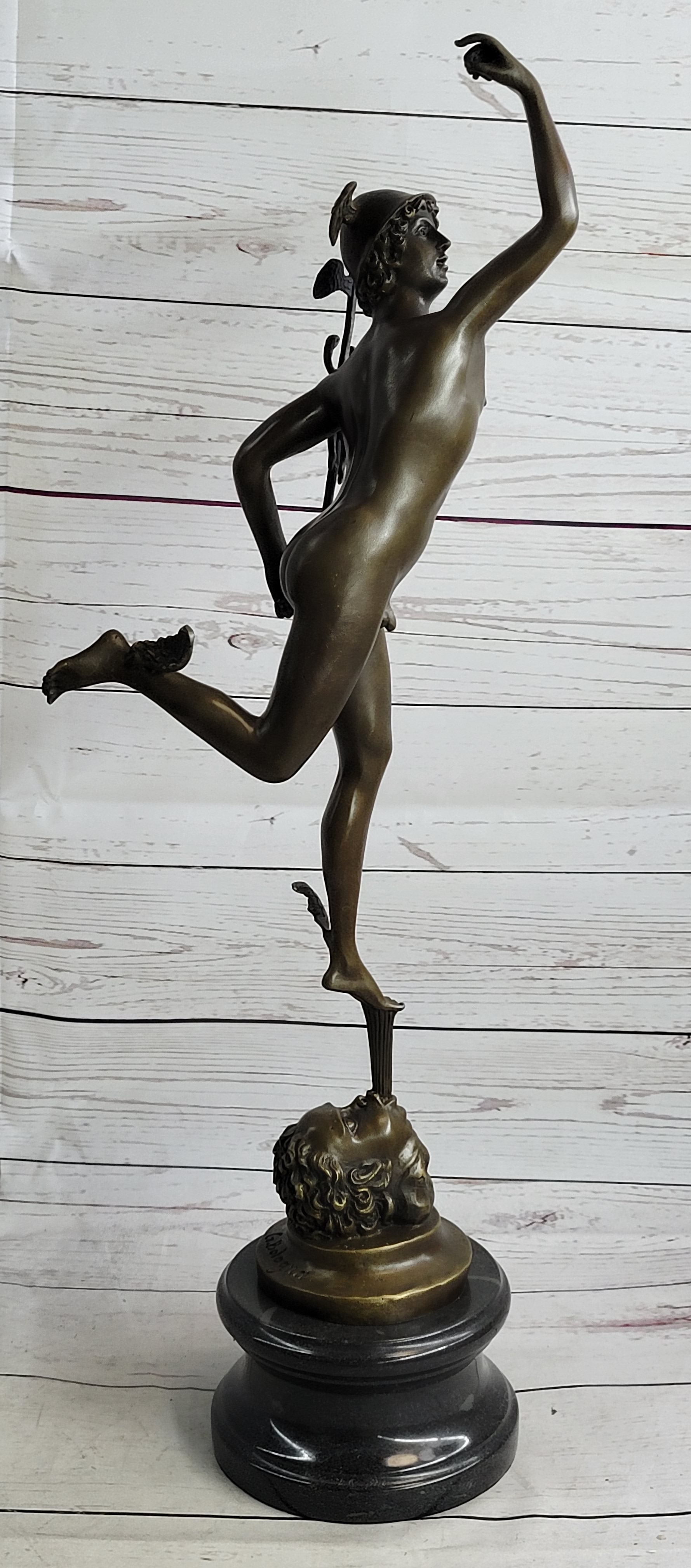 NUDE FLYING MERCURY BRONZE STATUE MARBLE BASE SCULPTURE ART DECO ROMAN MYTHICAL