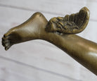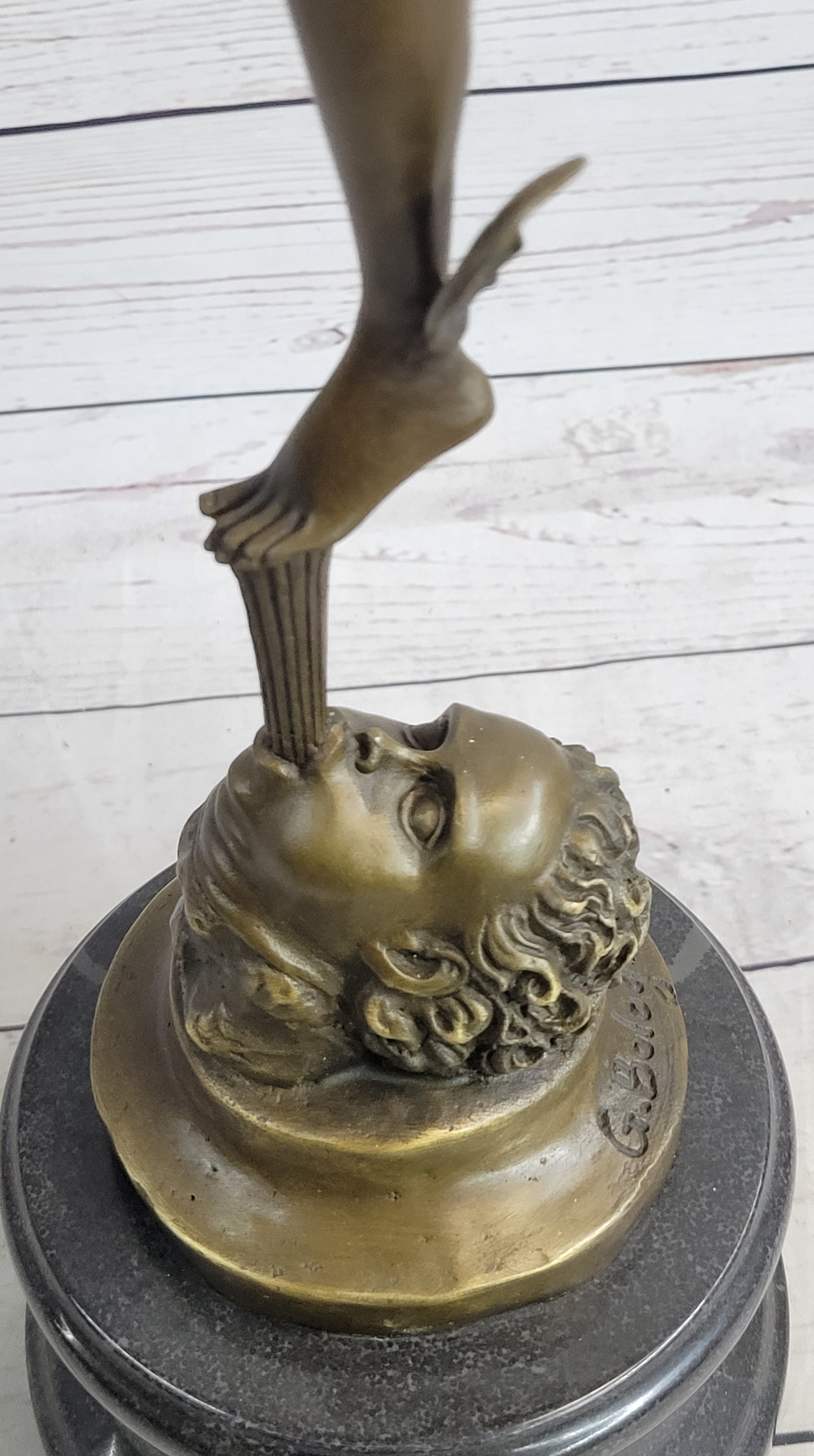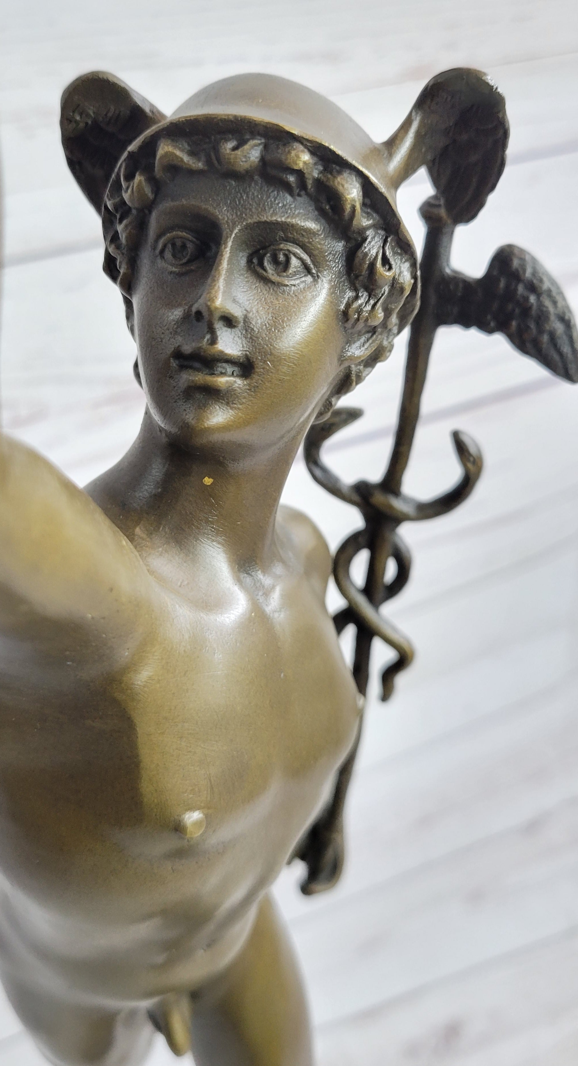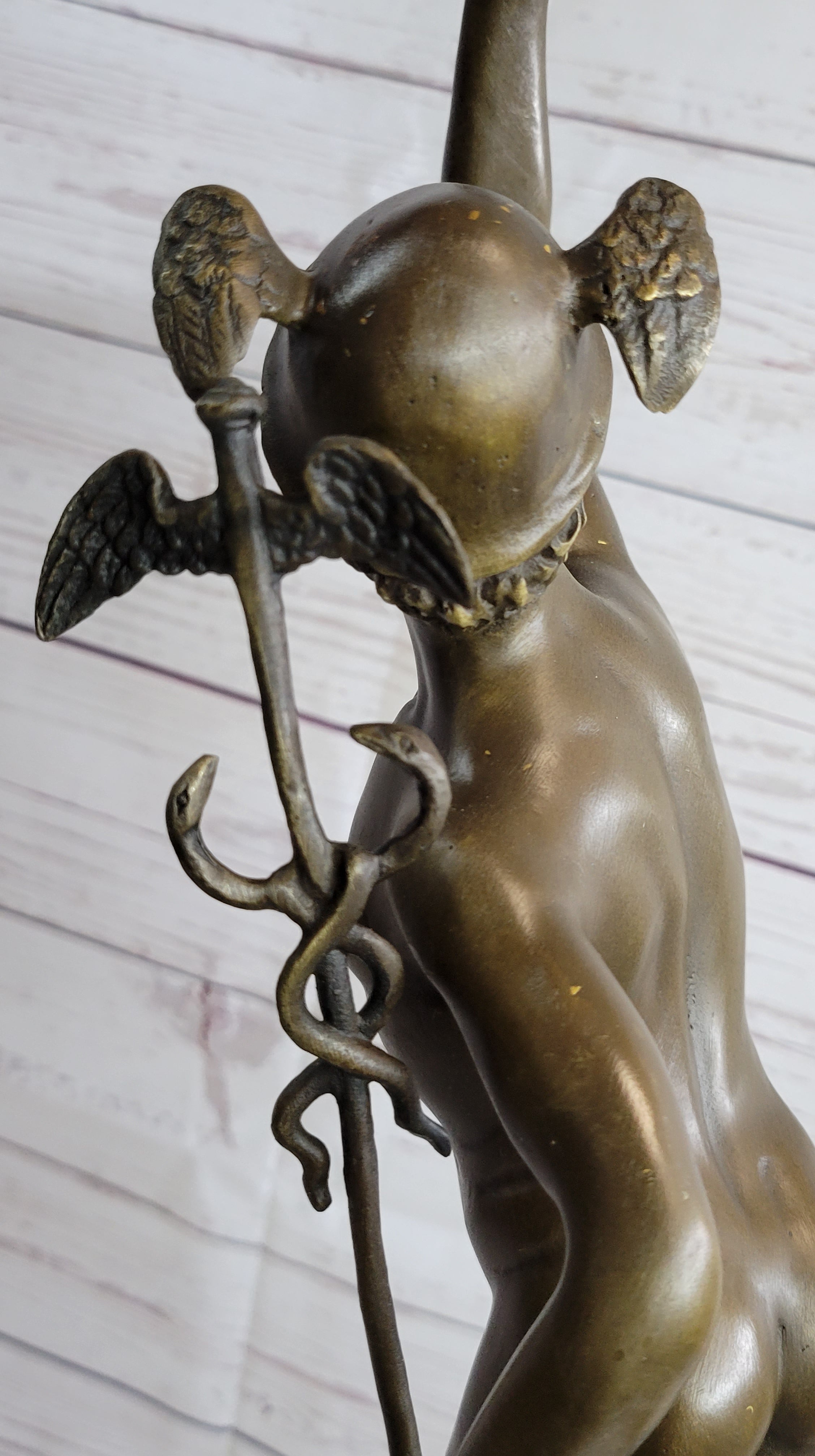 NUDE FLYING MERCURY BRONZE STATUE MARBLE BASE SCULPTURE ART DECO ROMAN MYTHICAL