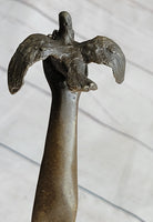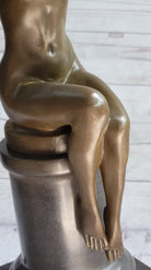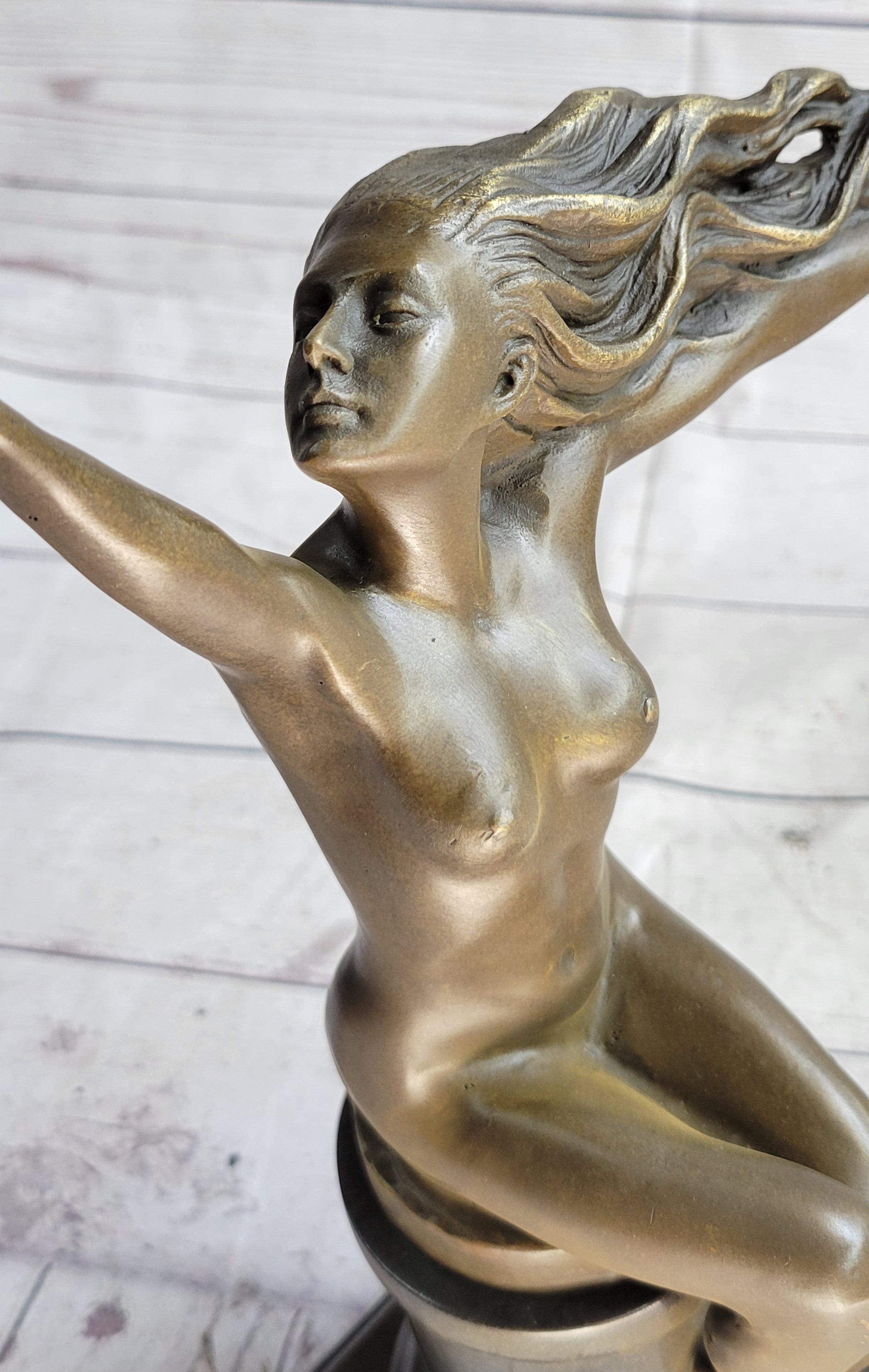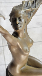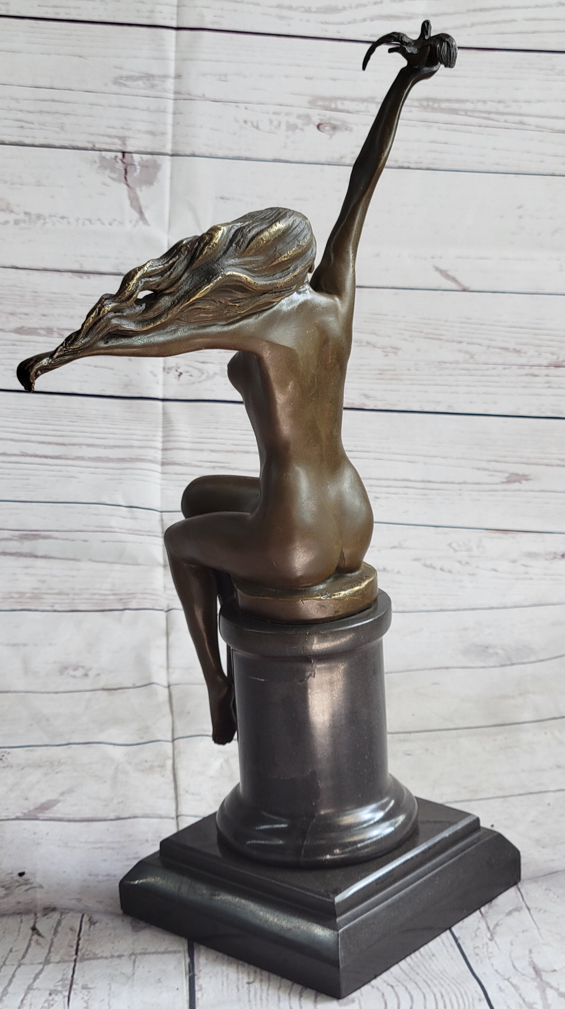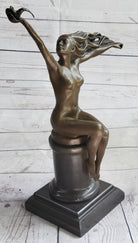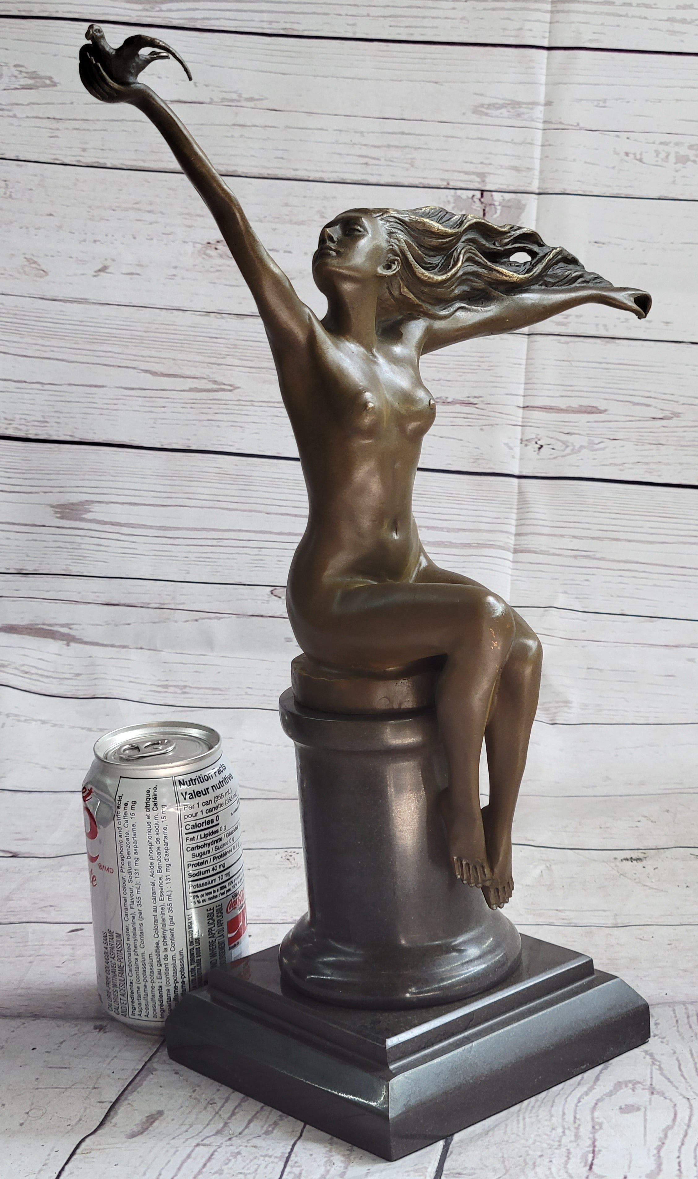 Nude Girl Seated on Pillar Holding Bird Pigeon Carrier Gennarelli Bronze Statue Sculpture