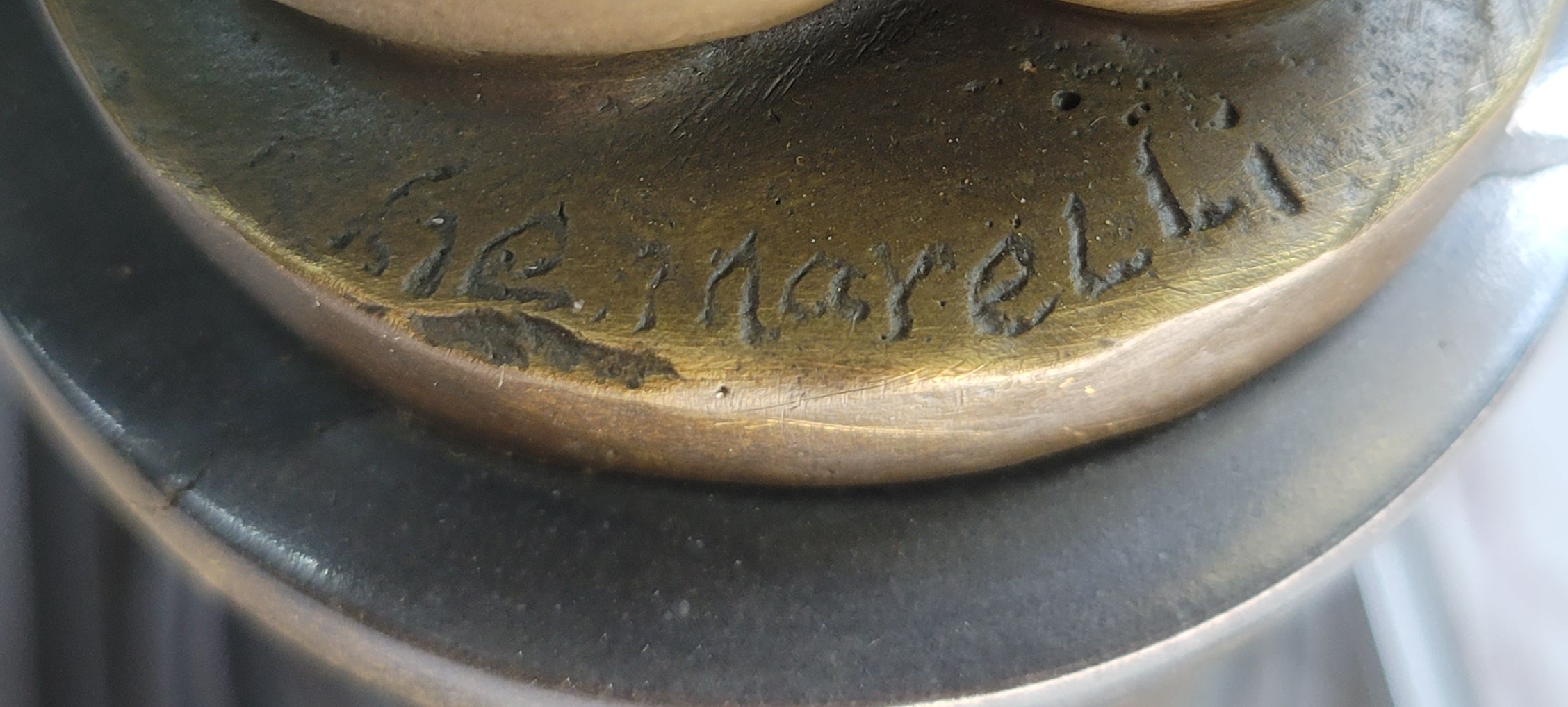 Our production control ensures the top quality of this beautiful bronze, maintaining its authenticity and artistic integrity. Whether showcased in a gallery or a personal collection, "The Pigeon Carrier" is a stunning representation of Art Deco elegance and a testament to A. Gennarelli's masterful artistry.Bronze Dimensions with Marble Base: Height 17" X Width 11 1/2"