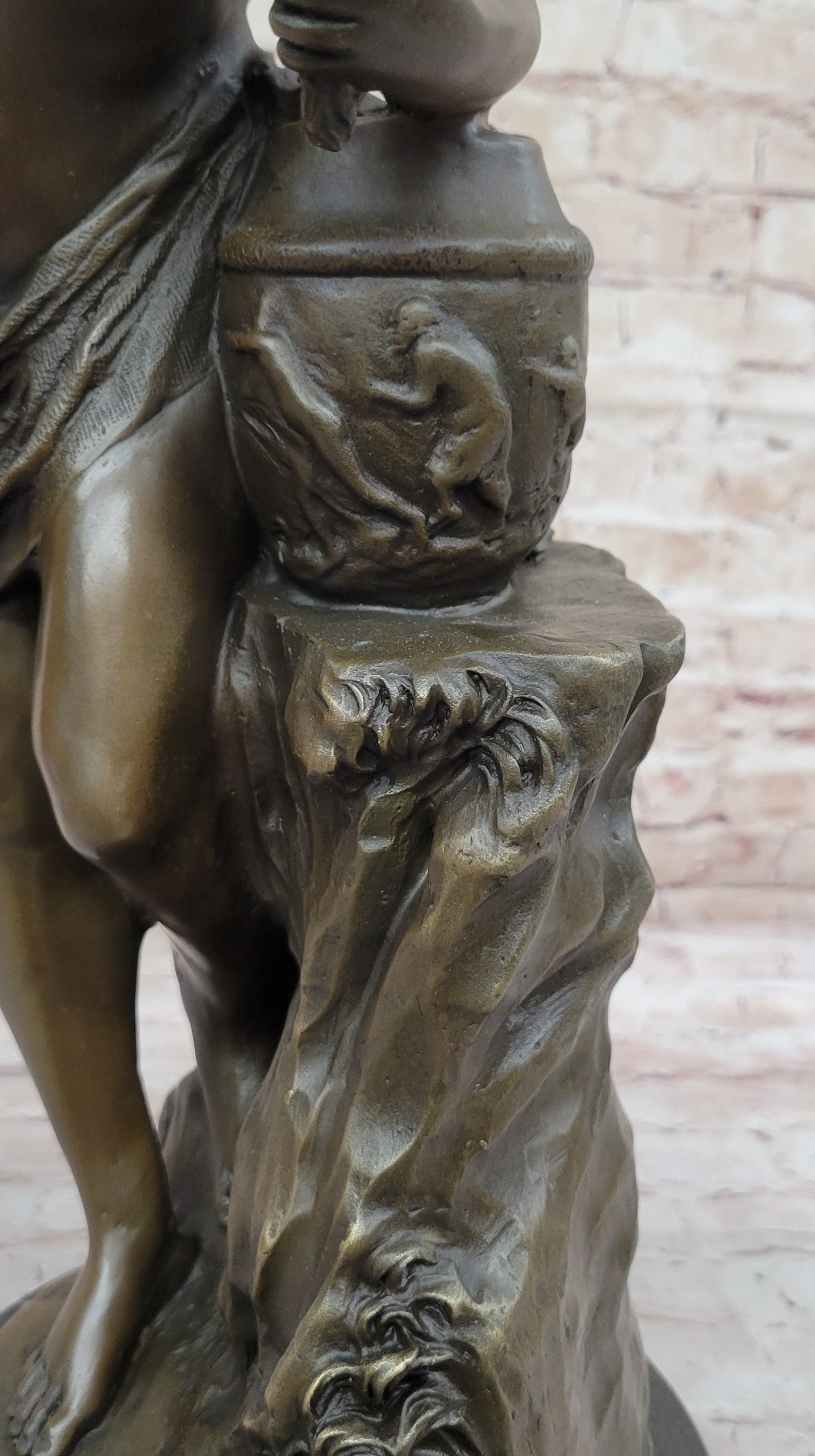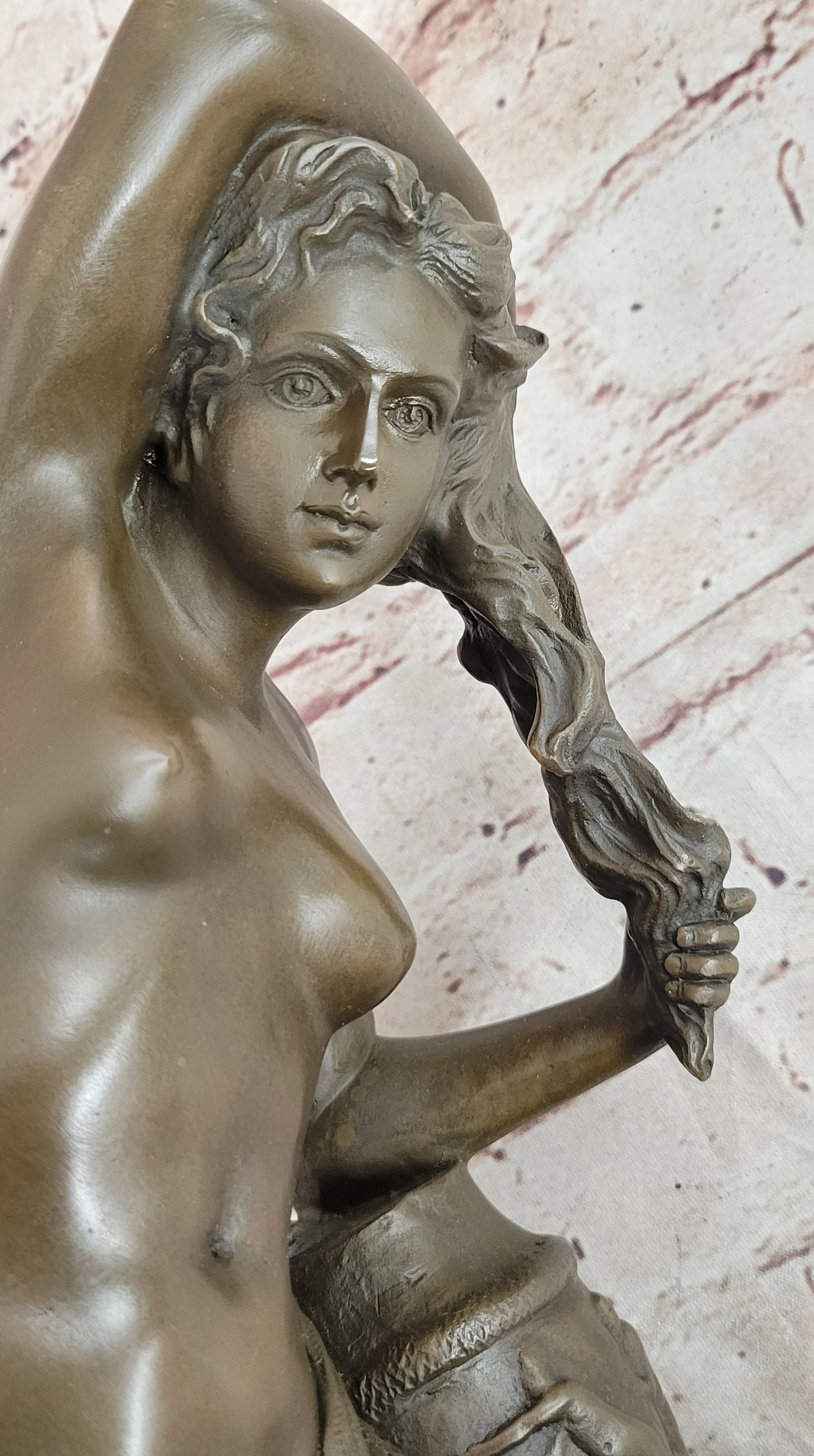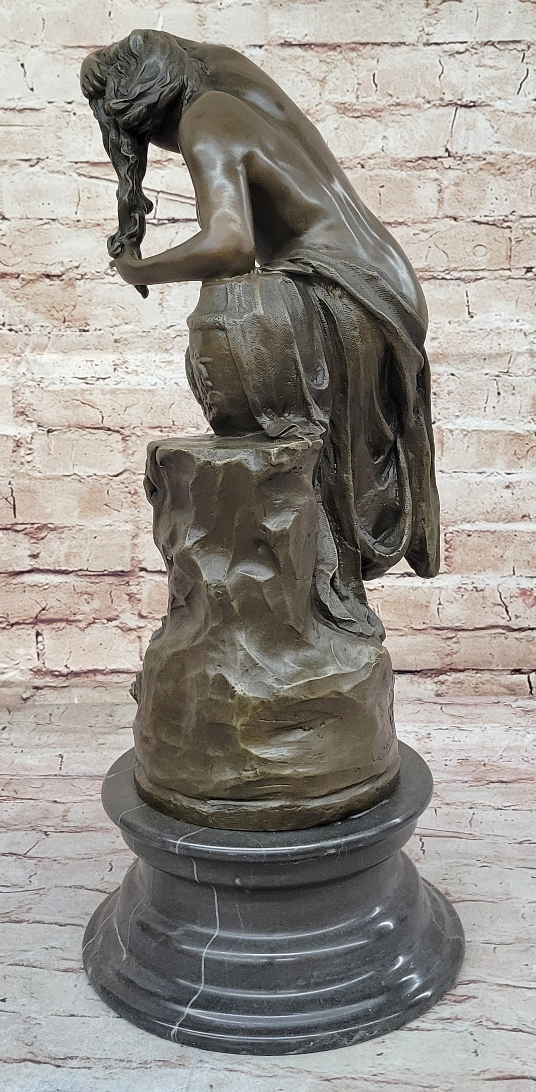This bronze sculpture captures a serene moment of a nude girl washing her hair, evoking a sense of tranquility and natural beauty. The artwork, crafted by Cesaro Figure, showcases the artist's attention to detail and skill in capturing the human form. Using the lost wax method, the sculpture maintains a high level of authenticity and craftsmanship, adding to its artistic value.