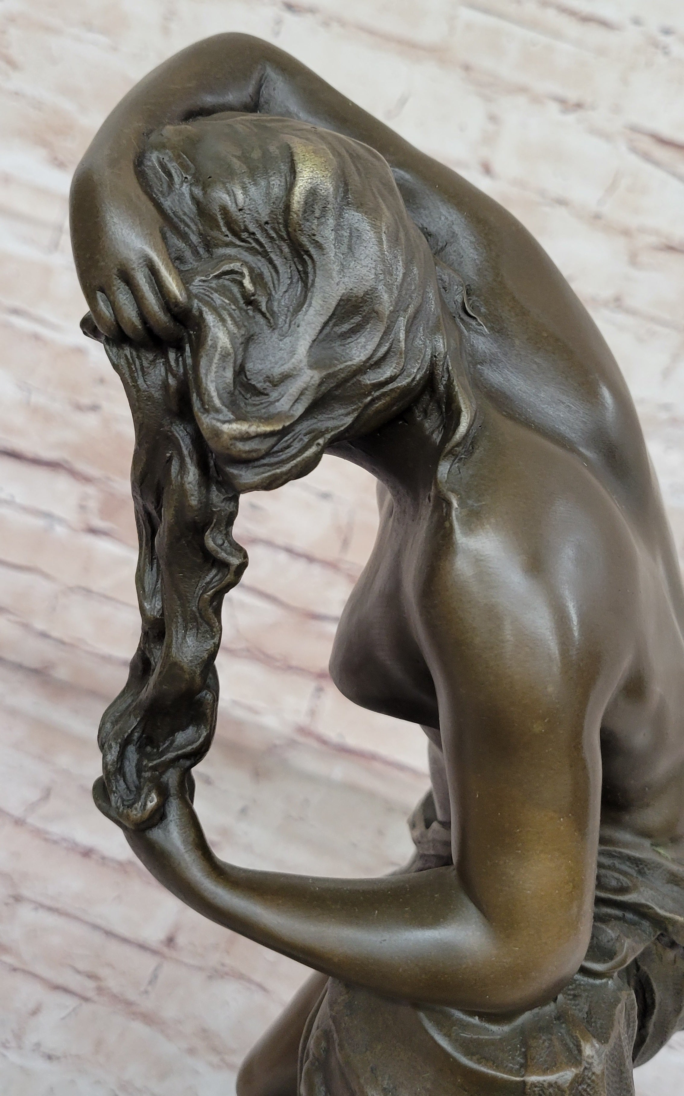 Nude Girl Washing Her Hair - Female Bronze Figure Original Sculpture Art