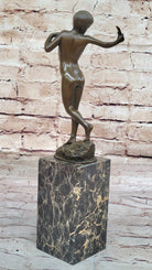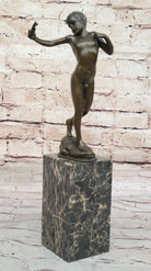 Mounted on a sturdy marble base, the sculpture stands as a harmonious fusion of strength and tranquility, symbolized by the dynamic pose of the subject. Signed by the accomplished artist Milo, this 100% bronze masterpiece invites viewers to contemplate the beauty and symbolism encapsulated in the human form. Whether displayed in a home, office, or gallery, this sculpture serves as a striking embodiment of artistic expression and evocative energy.Bronze Dimensions with Marble Base: Height 13" X Width 5"