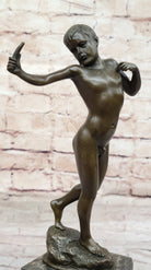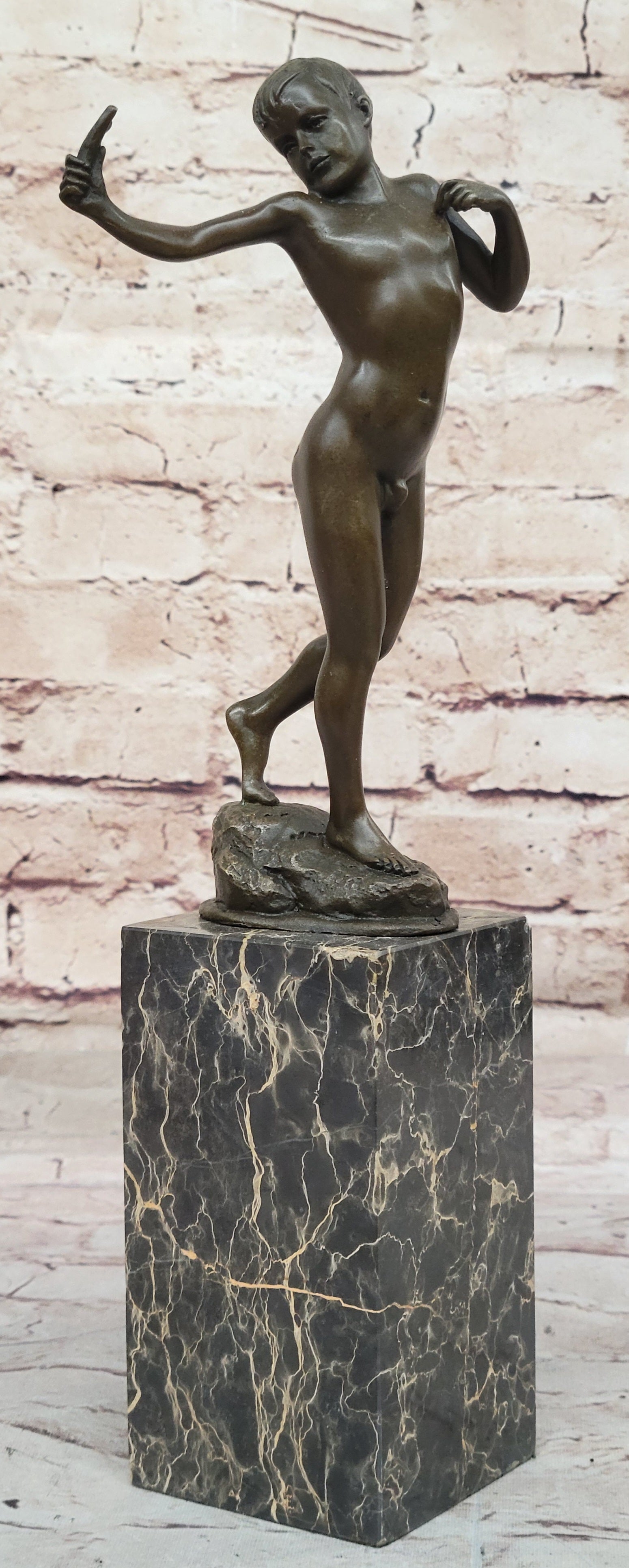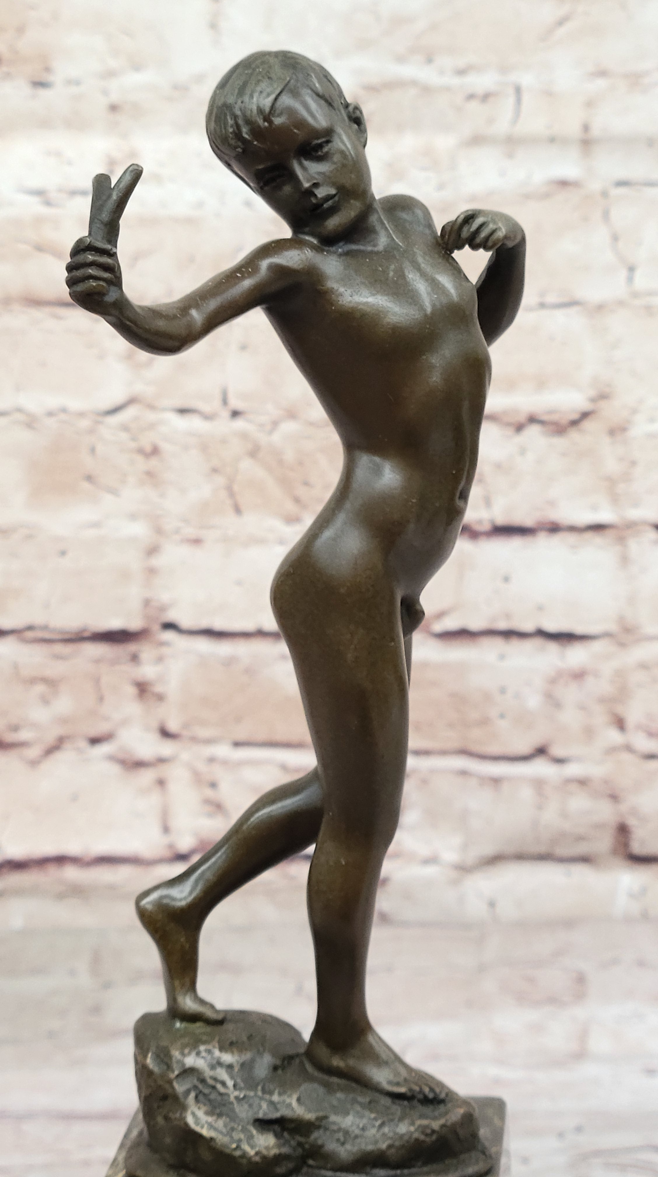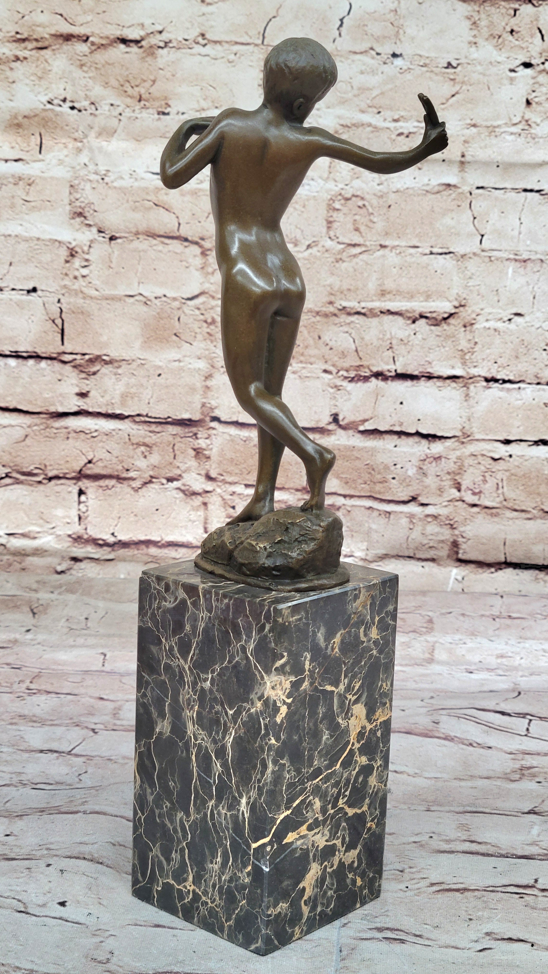 Nude Male Figure with Sling - Bronze Sculpture on Marble Base by Milo