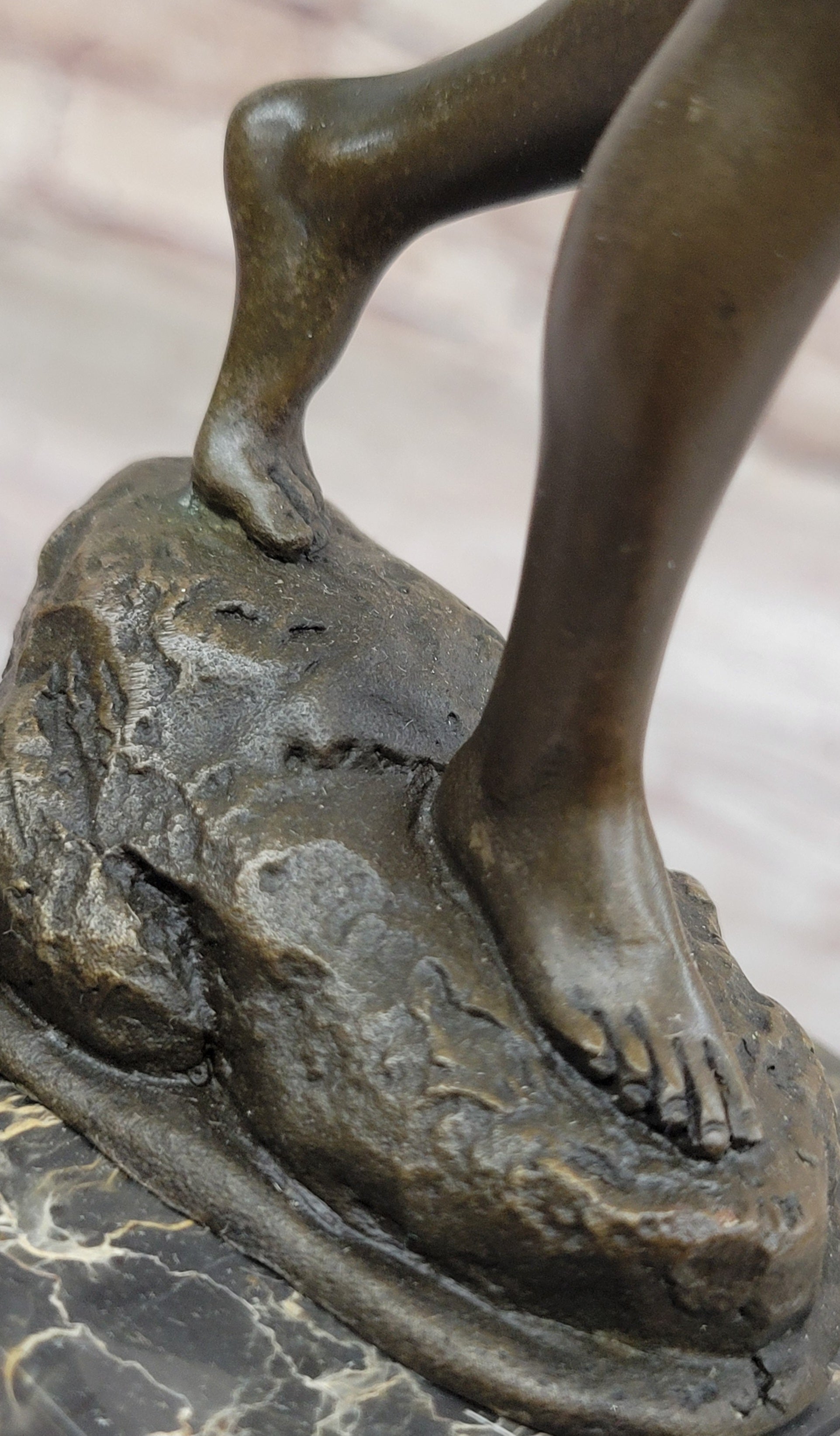 The allure of this sculpture lies in the meticulous detailing of the lines that define the subject's body, capturing the essence of strength and grace. Crafted with precision and care, this artwork is a testament to the mastery of the "Lost Wax Method," a technique that ensures the faithful reproduction of intricate details. The sculpture features a brown patina that enhances its depth and texture, adding to the visual impact of the piece.