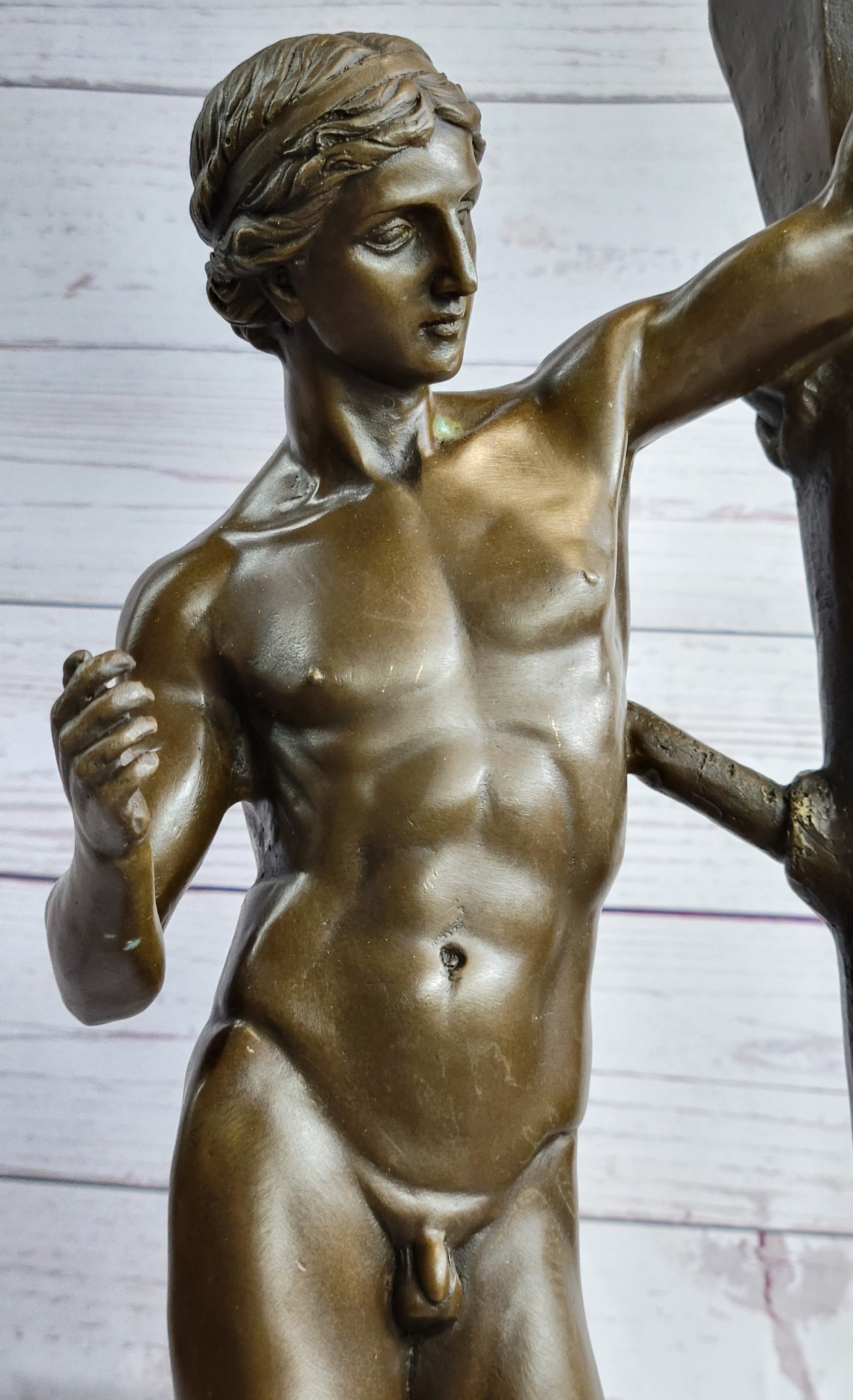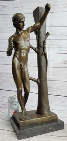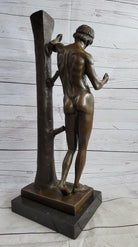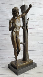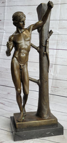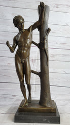 Nude Man Male Leaning Against Tree Bronze Statue Sculpture after Nisini 21" x 9"
