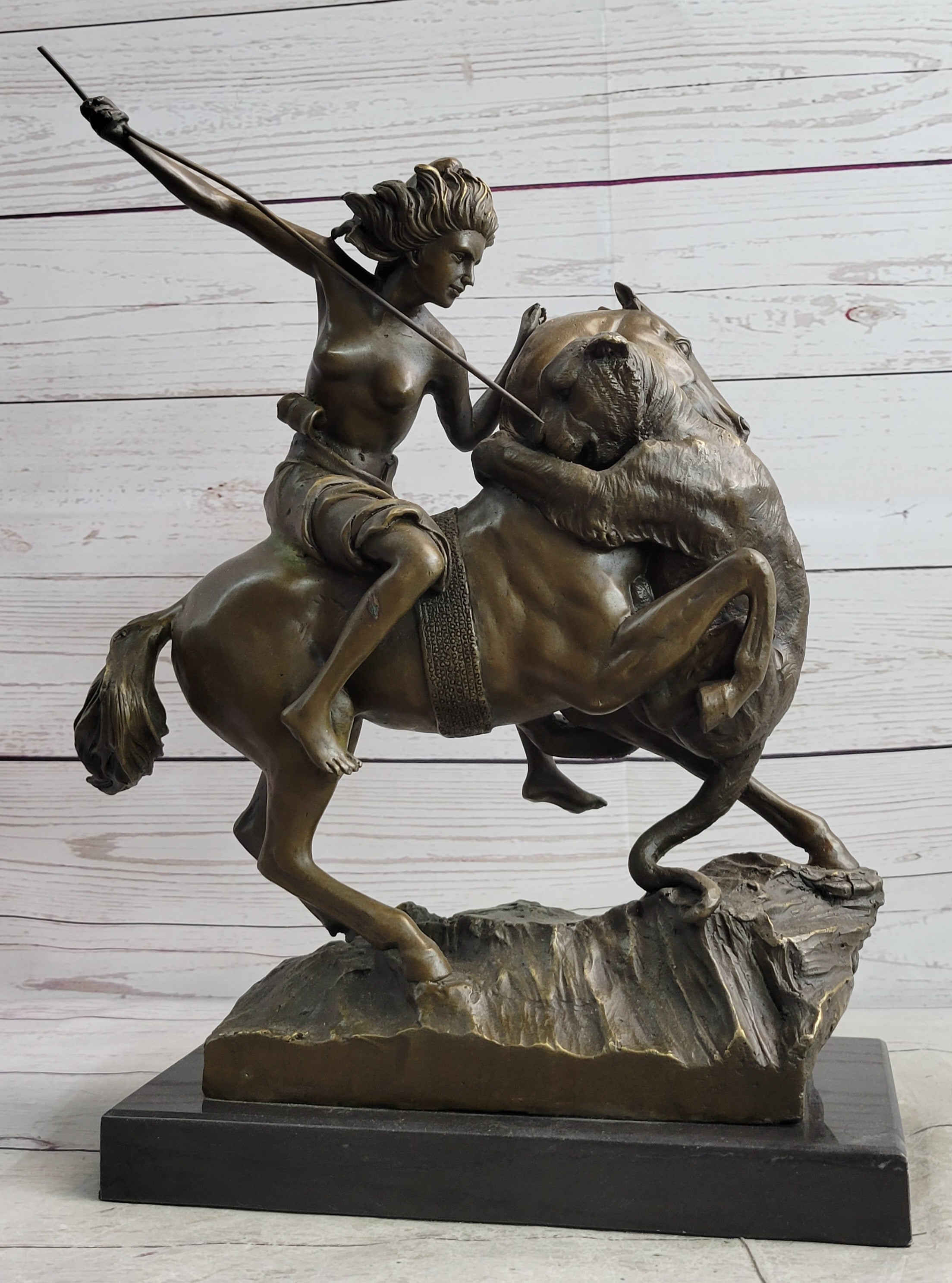 Nude Mounted Amazon Attacked by a Panther by Karl Kiss Bronze Sculpture Statue