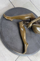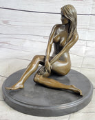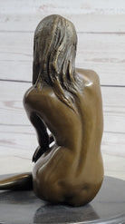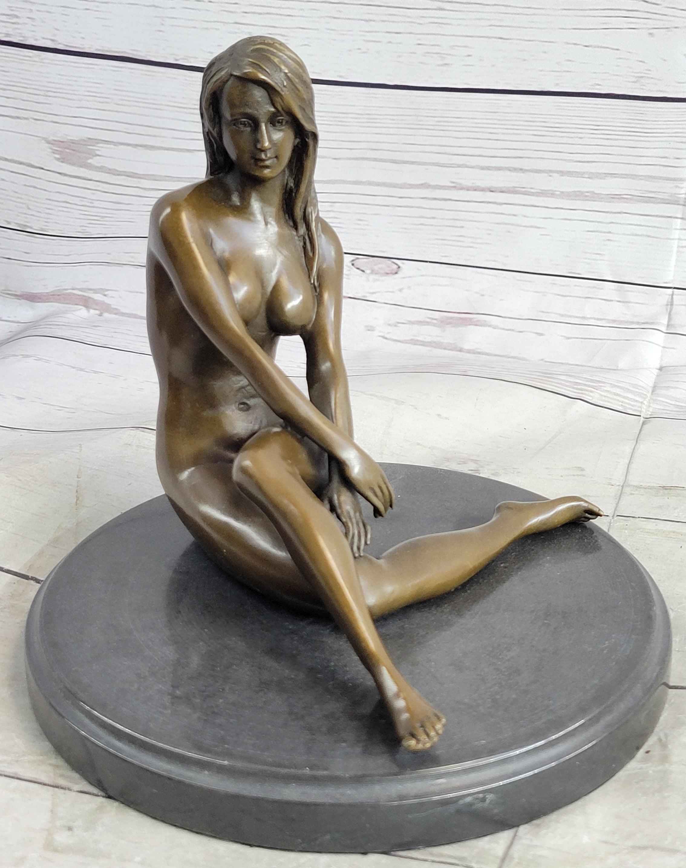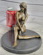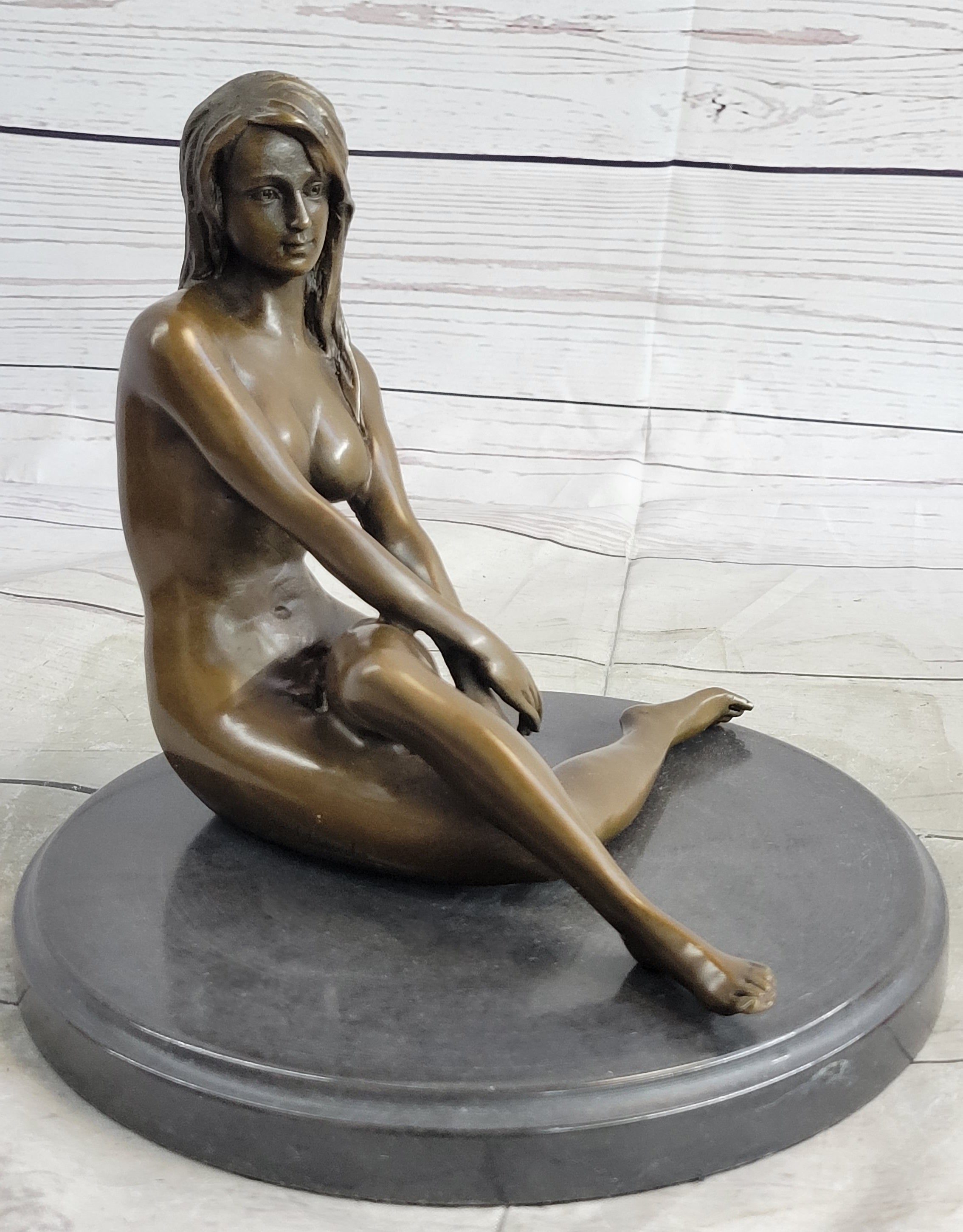 Nude Seated Girl with Legs Crossed Bronze Figure Sculpture Statue Original Art