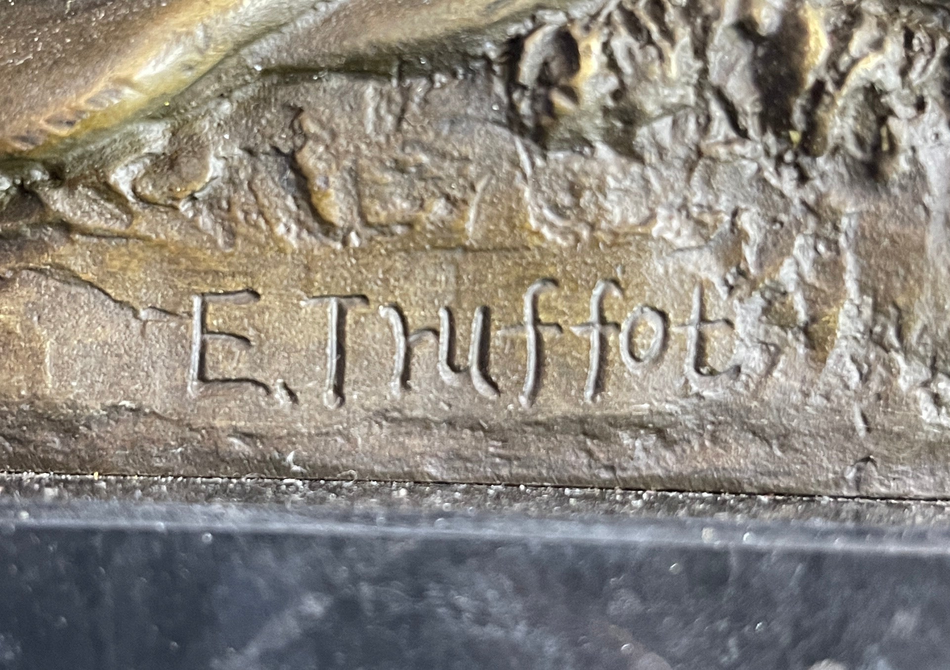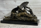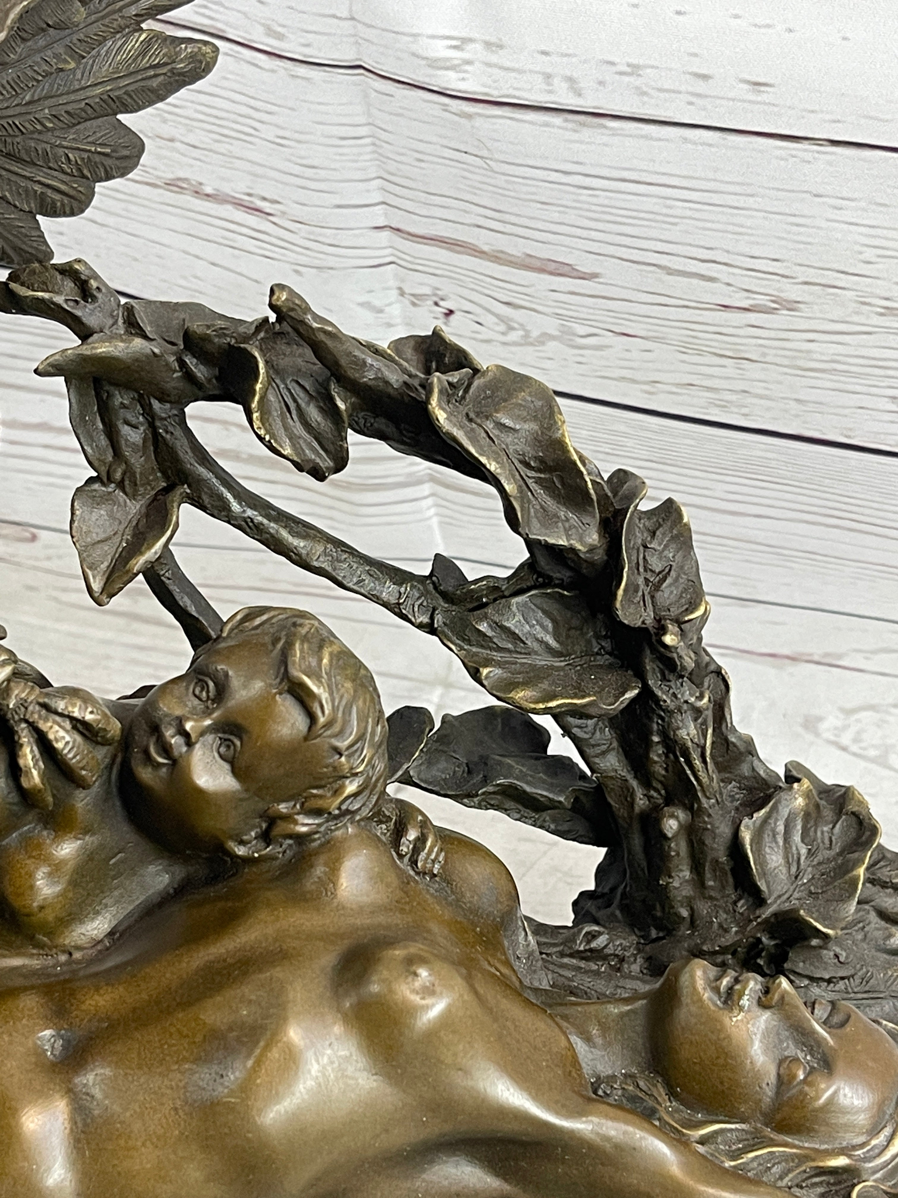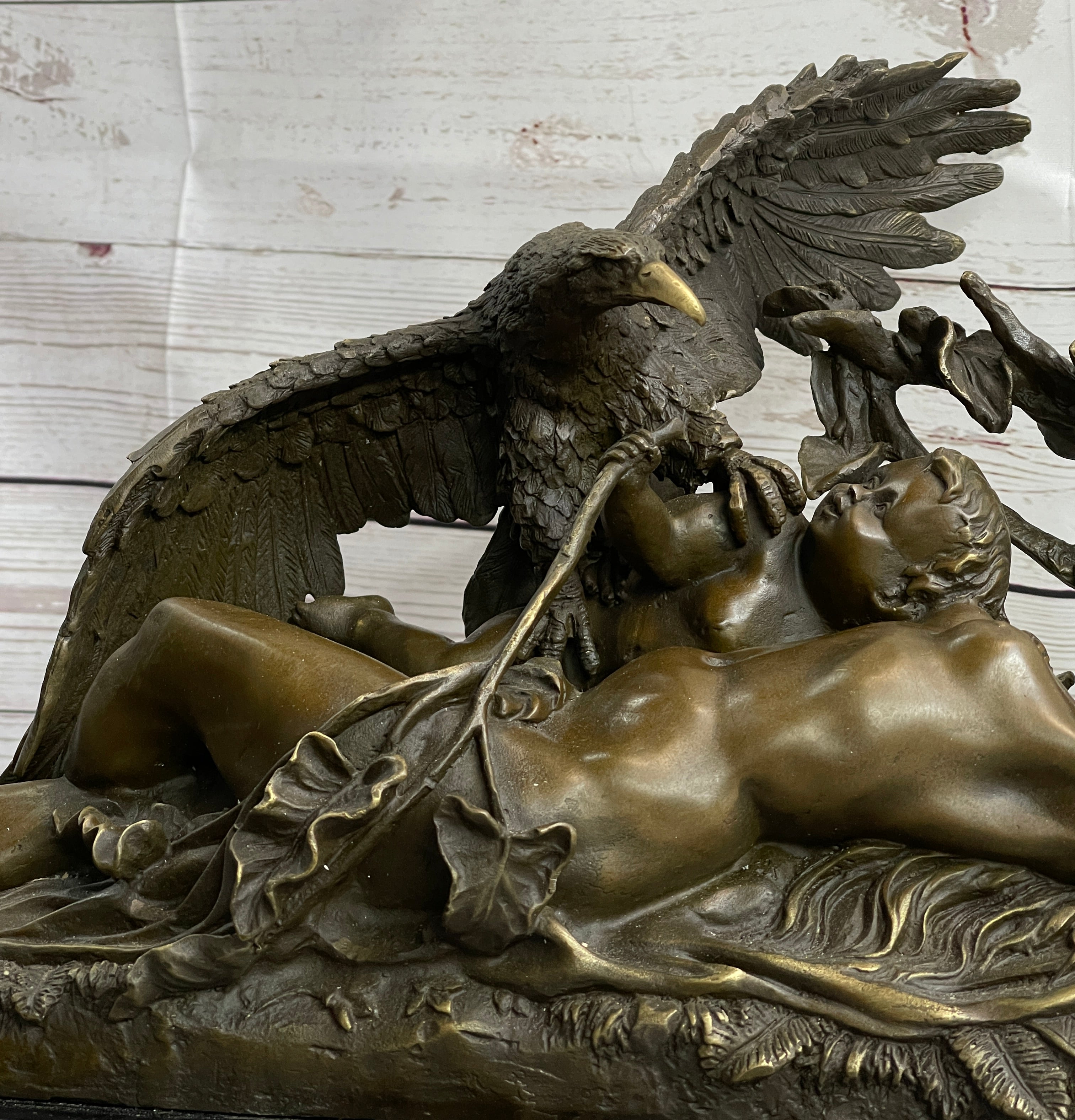 Nude Woman with Baby & Eagle Bird Bronze Sculpture Statue Decor Signed Truffot on Marble Base