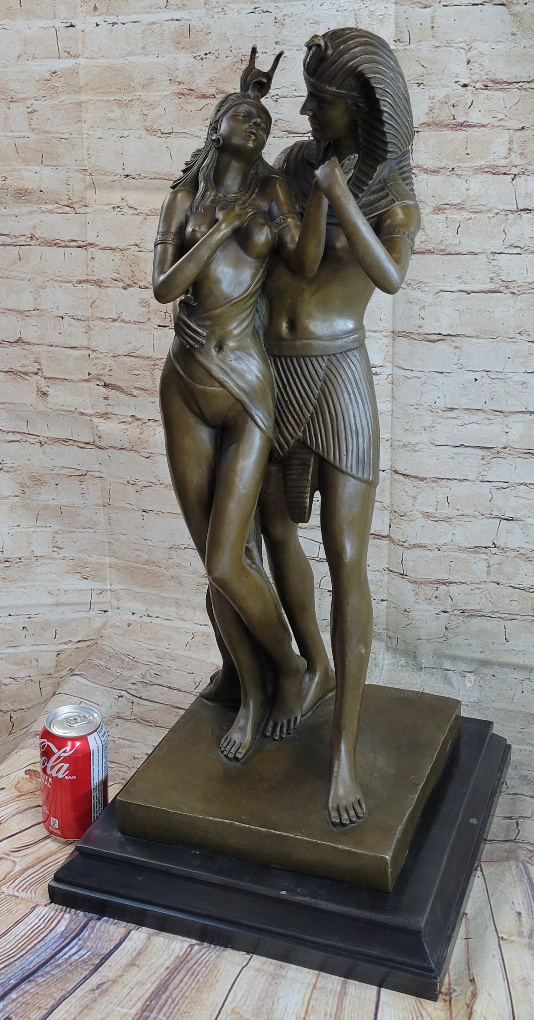 Original Ancient Egyptian King & Queen Akhenaten & Nefertiti Bronze Sculpture