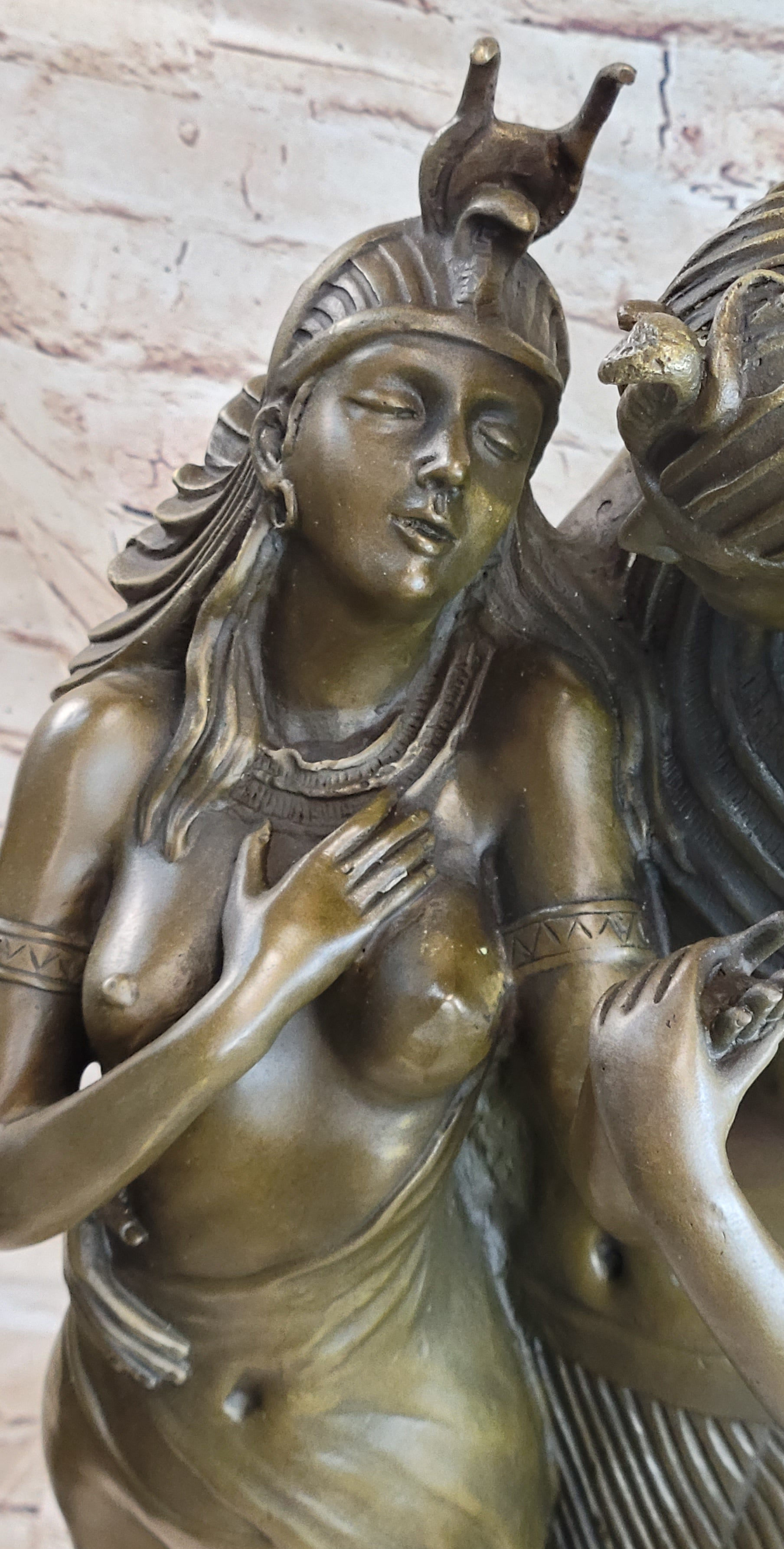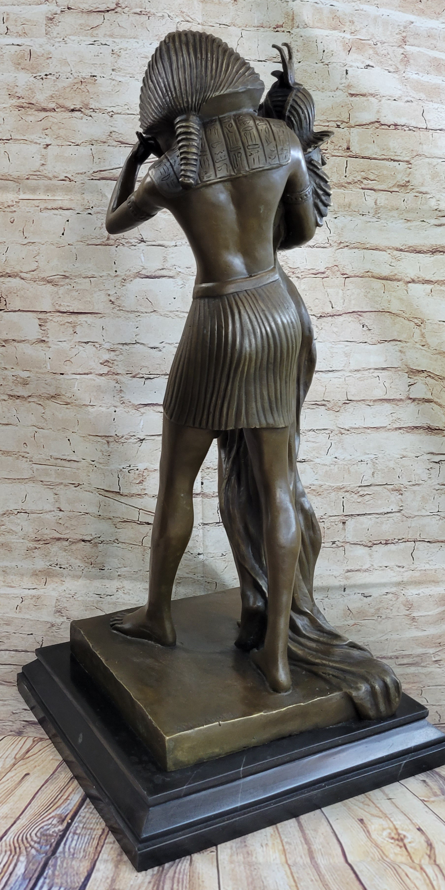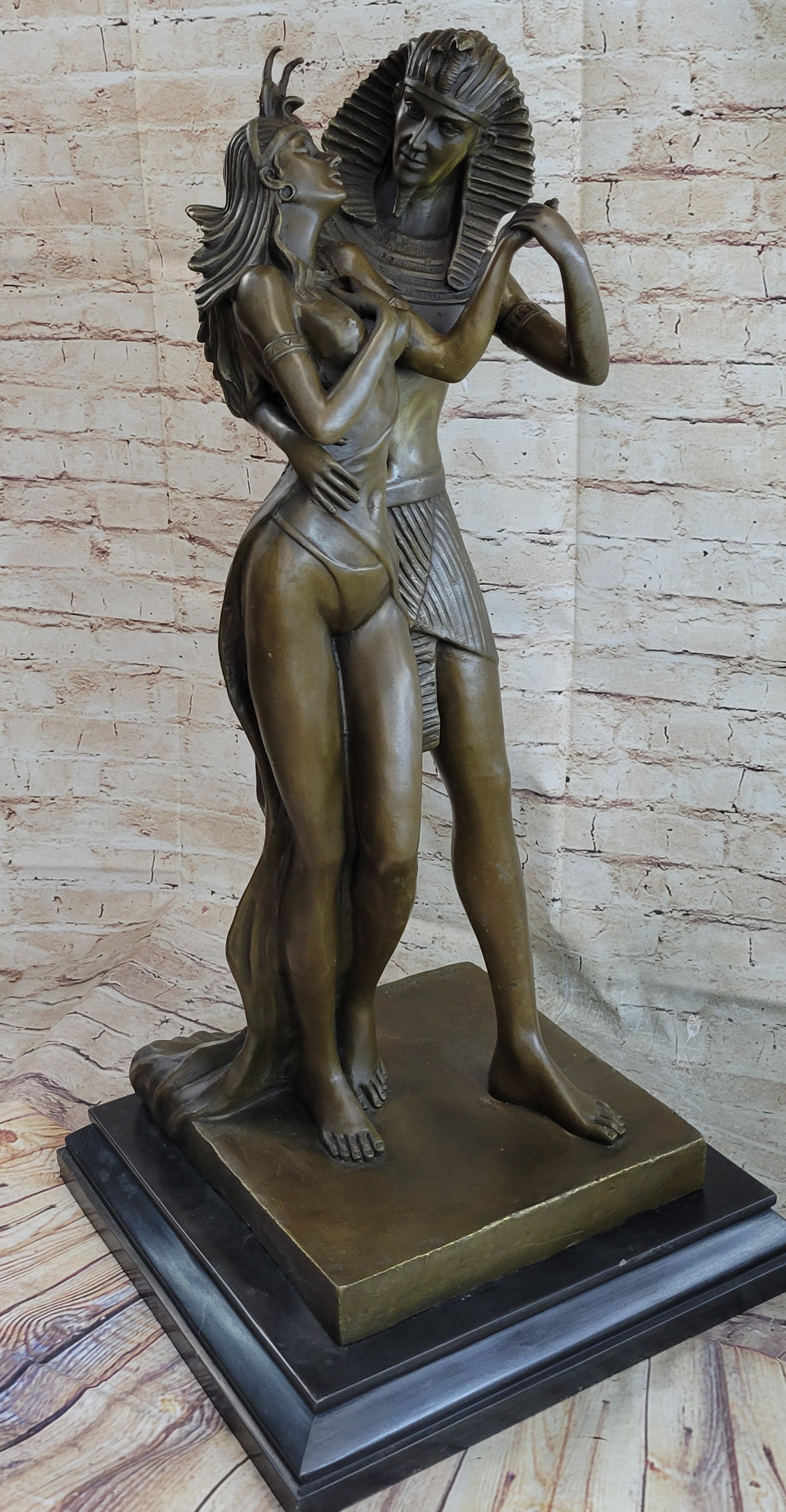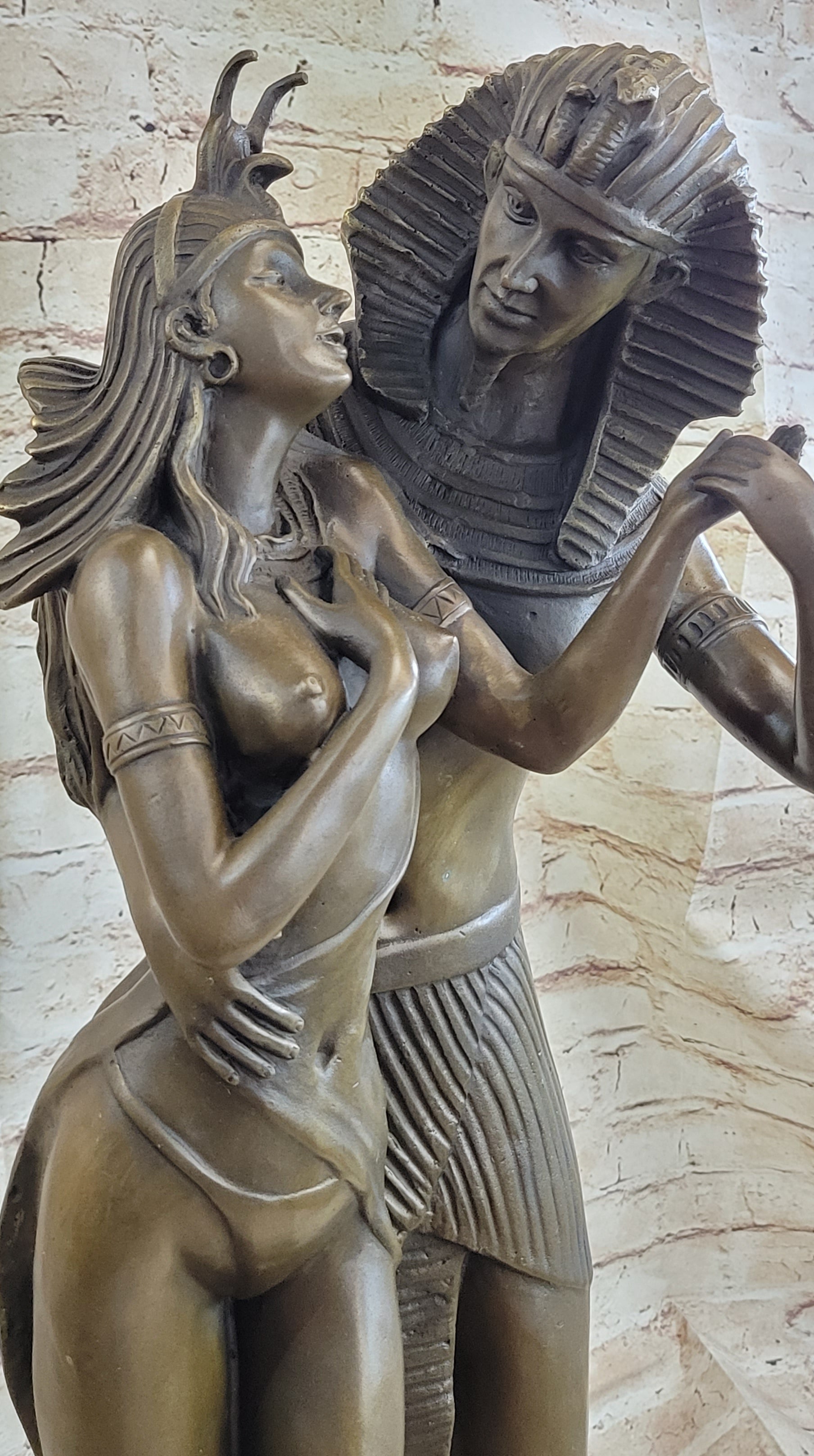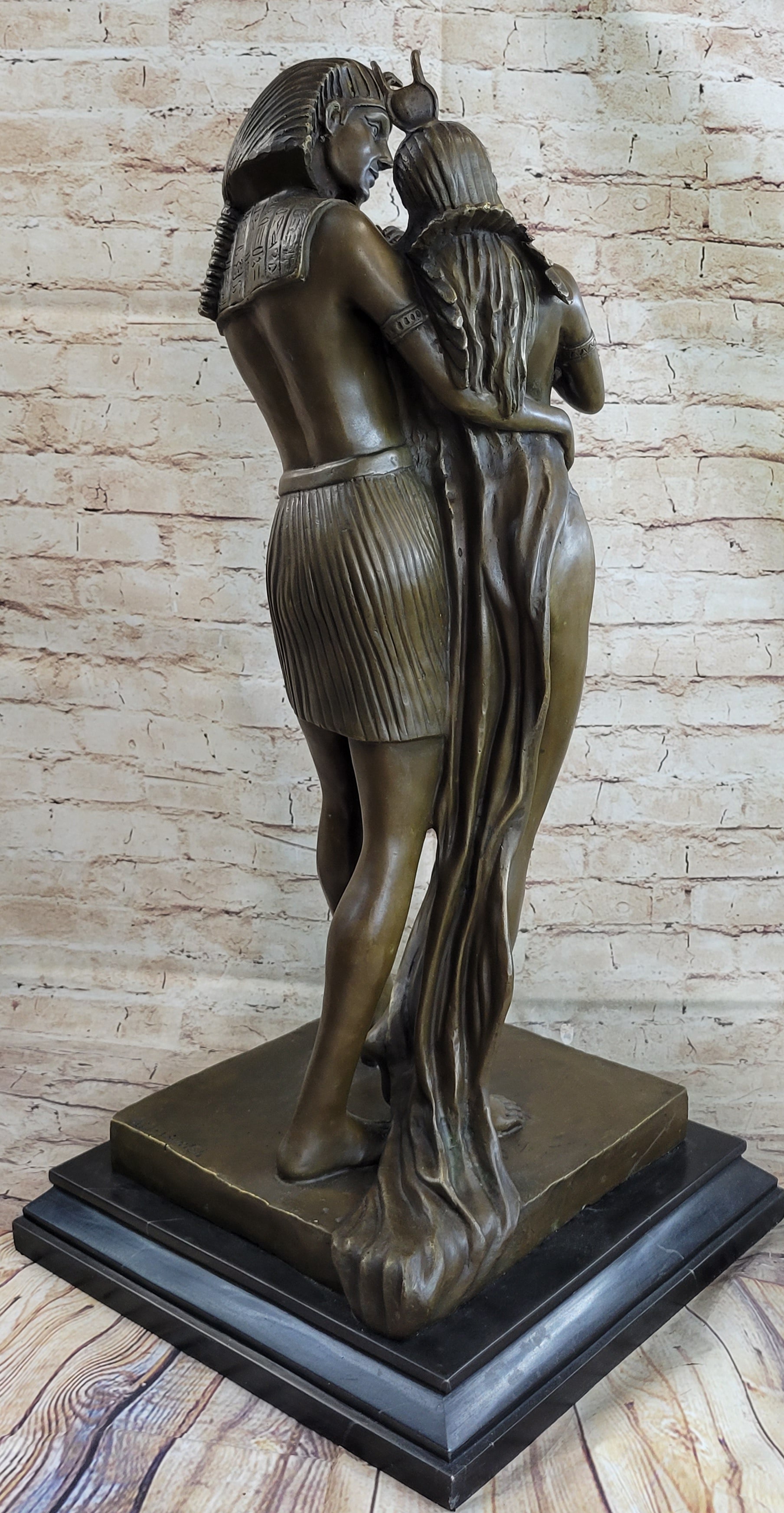 As a representation of a pivotal period in Egyptian history, this sculpture not only captures the likeness of Akhenaten and Nefertiti but also embodies the artistic legacy of the time. The intricate detailing, historical significance, and expert craftsmanship make this bronze sculpture a timeless tribute to the enduring legacy of the ancient Egyptian royal couple.Bronze Dimensions with Marble Base: Height 30" X Width 12"