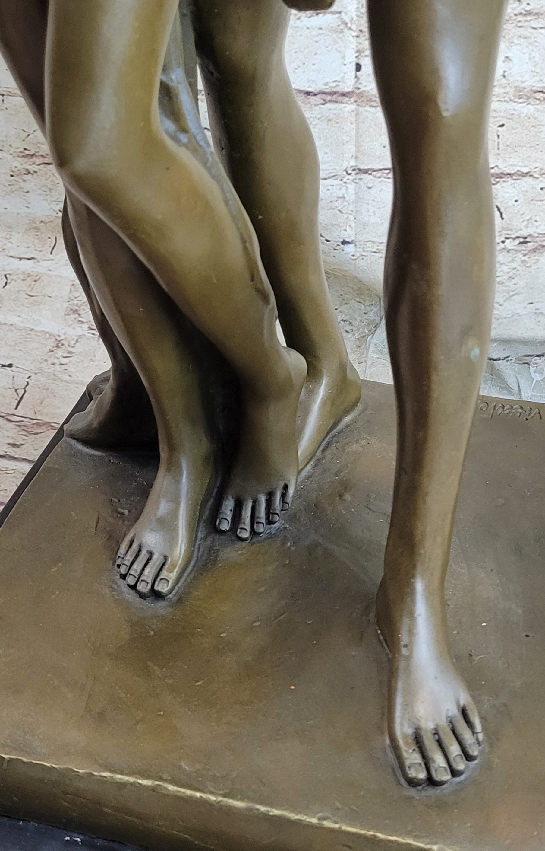 This bronze sculpture pays homage to the ancient Egyptian royal couple, Akhenaten and Nefertiti, renowned for their religious revolution that shifted the focus to the worship of a single god, Aten, or the Sun Disc. Depicting the brother and sister in a tender moment, they walk side by side in monarchical regalia, their connection evident in mutual adoration. Akhenaten and Nefertiti initiated a significant religious transformation in Egypt, and their six daughters, identified from inscriptions, reflected the family's importance. The sculpture captures the essence of their close bond, portraying a moment of unity and shared reverence.