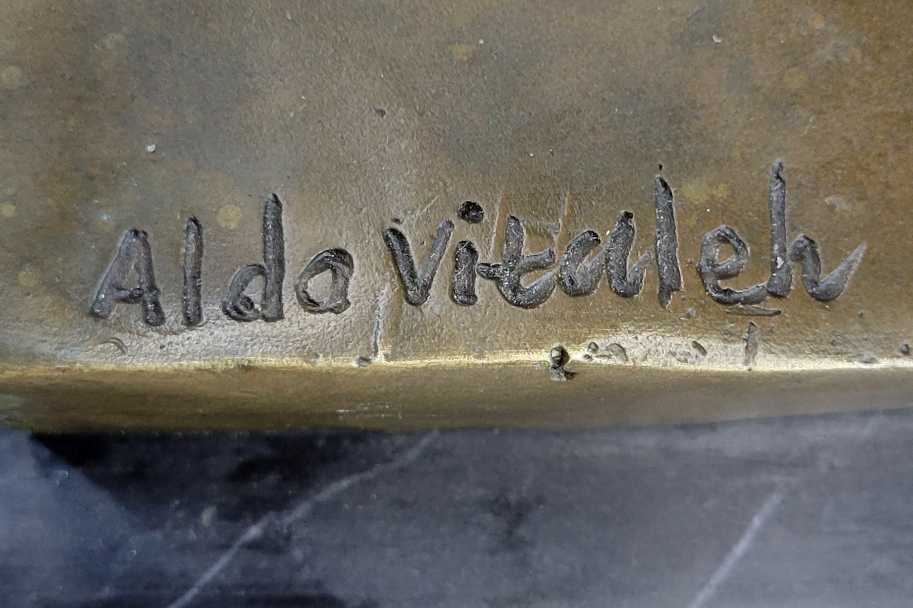 Crafted with precision and reverence for historical accuracy, this handmade bronze sculpture follows the archaic method of lost-wax casting, a technique that ensures the preservation of intricate details. The brown patina finish adds a touch of antiquity, perpetuating the regal ambiance of the piece. Mounted on a black marble base, the sculpture stands as a testament to European bronze finery, marked with a stamp of quality. The artist Fisher's signature further authenticates this masterpiece, offering a tangible connection to the skilled hands that brought this portrayal of ancient royalty to life.