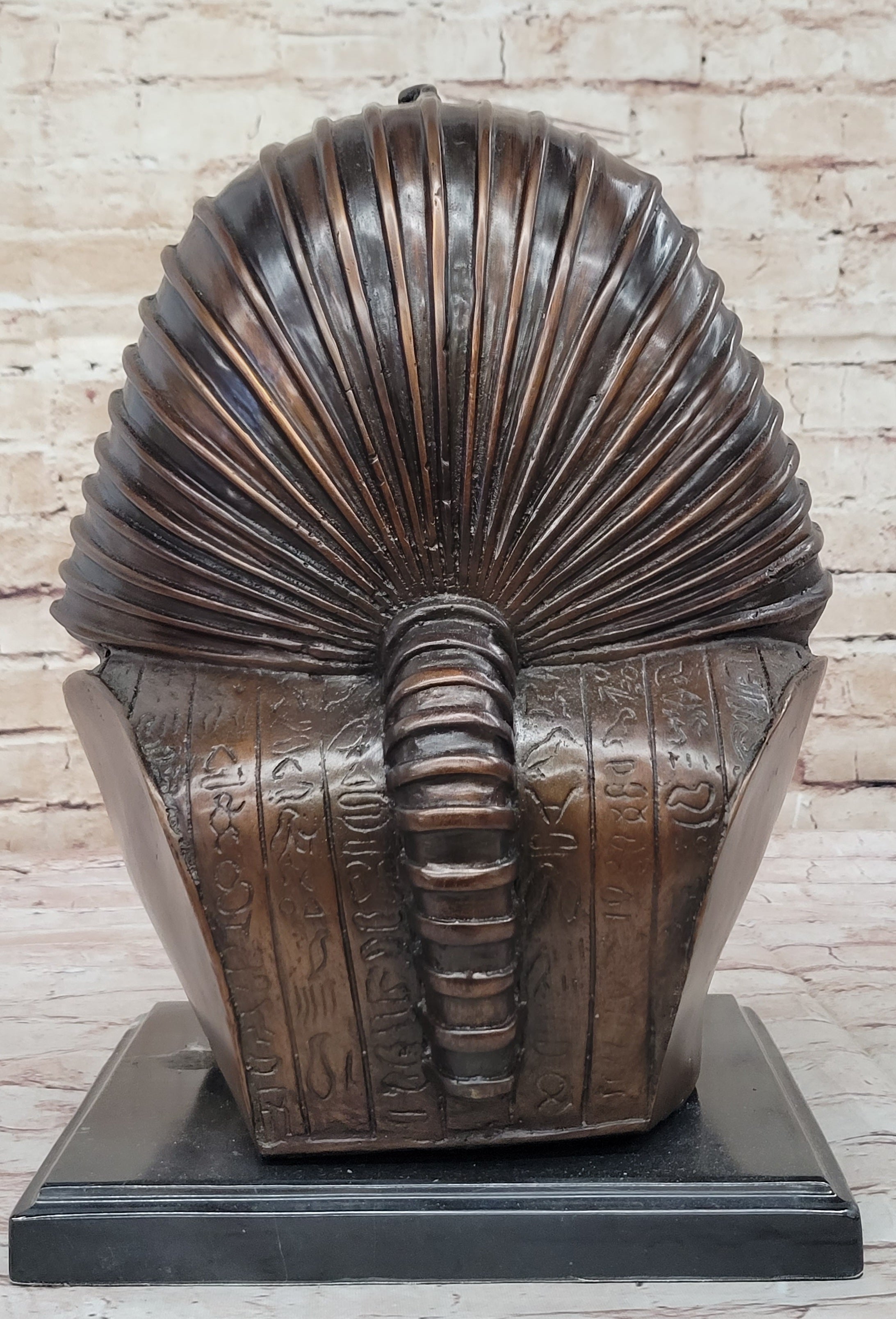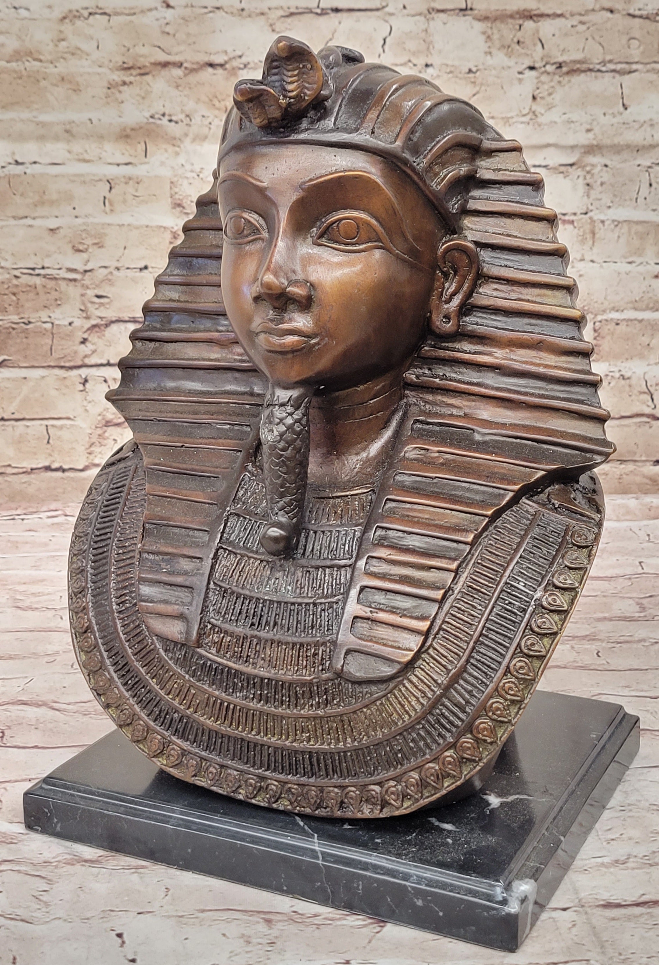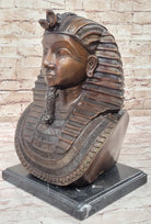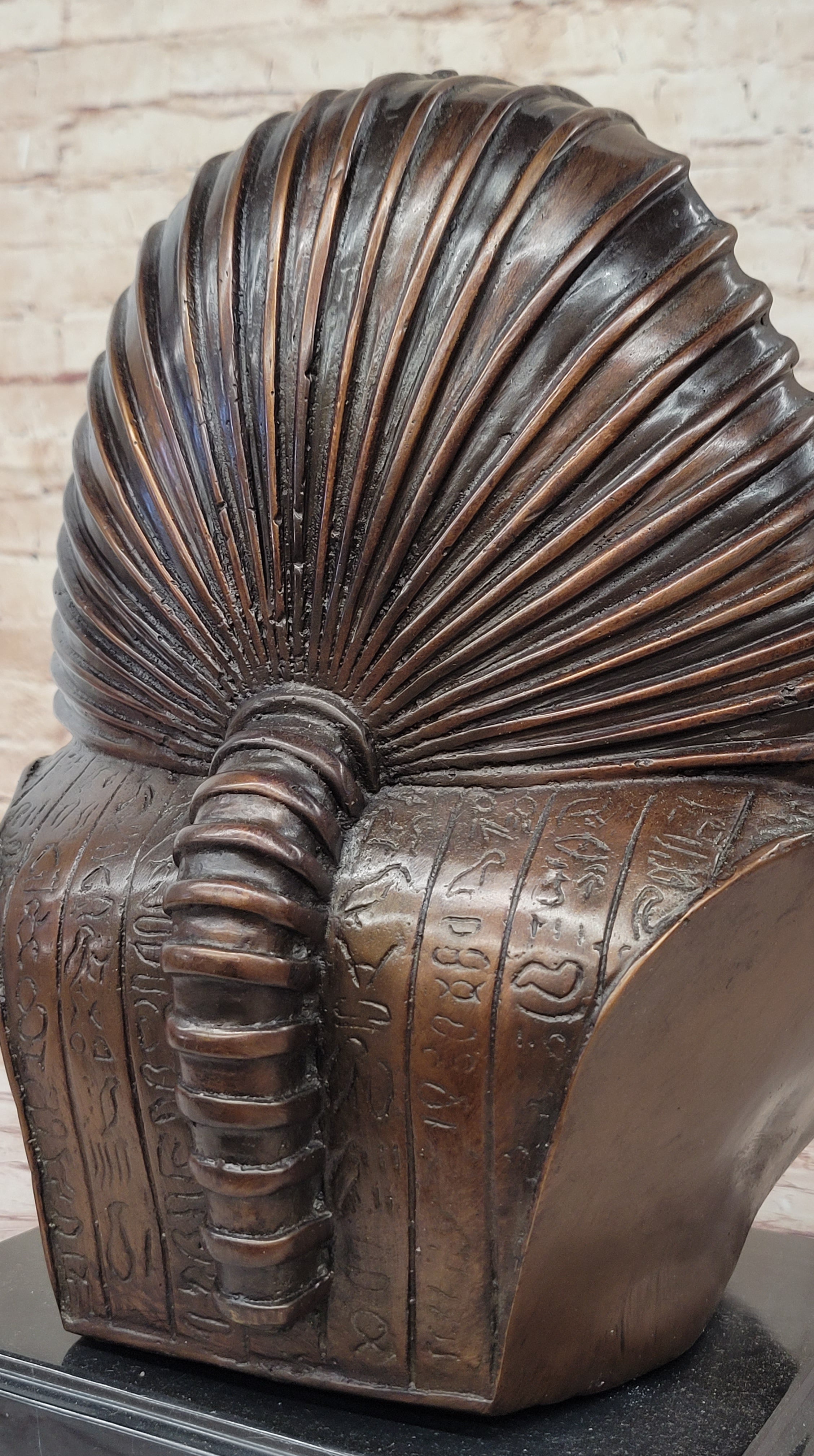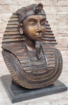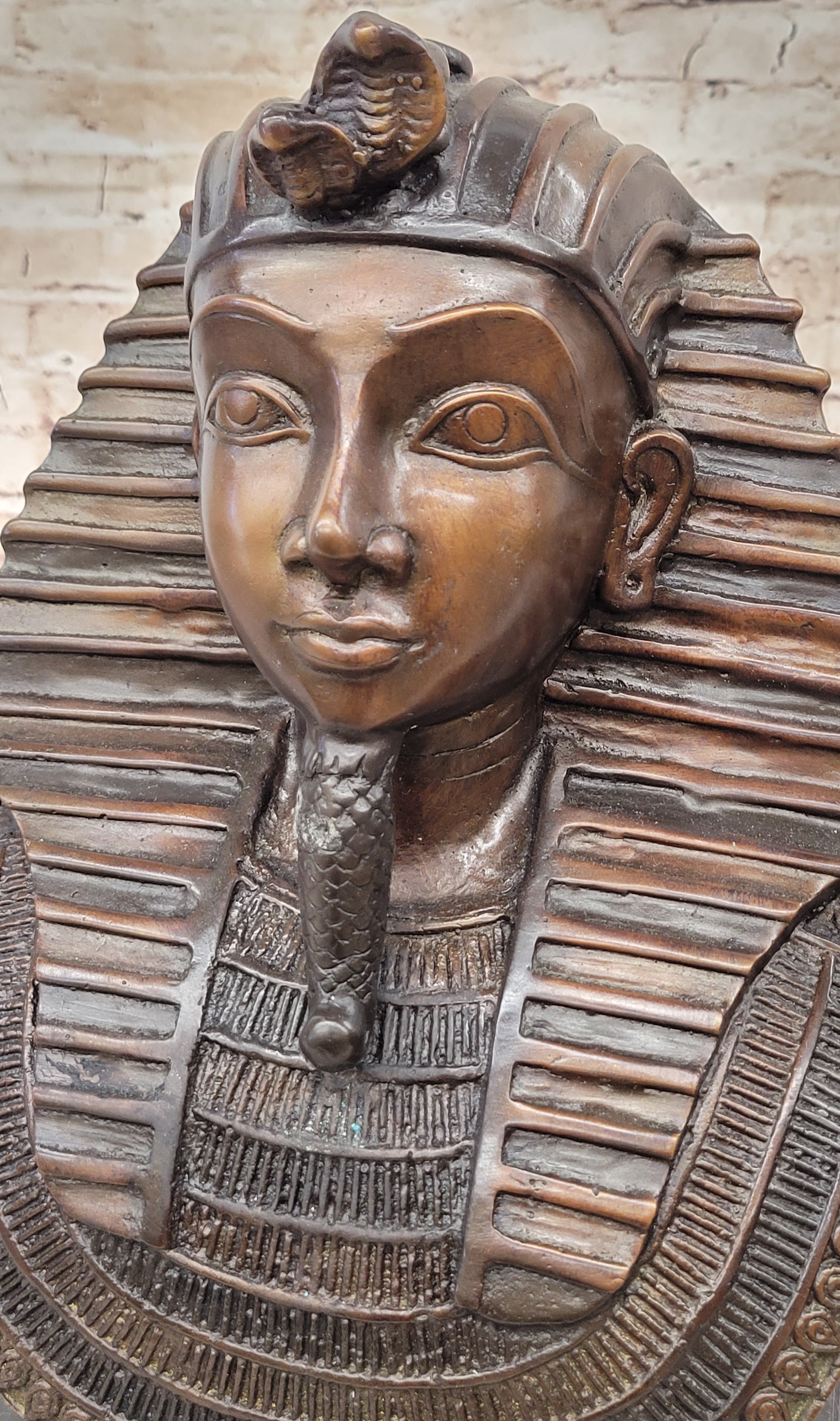 Egyptian Pharaoh Real Bronze Bust Sculpture Art Deco Statue Egyptology 14" x 9.5"