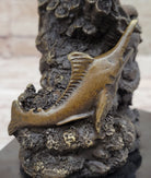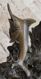 Original Bronze Statue Sculpture of Marlin Sailfish Swordfish Jumping out of Ocean on Marble Base