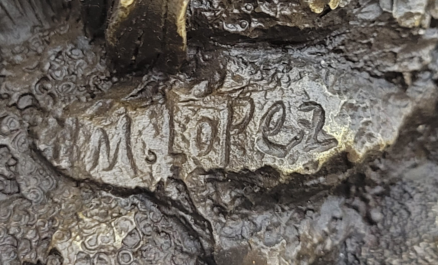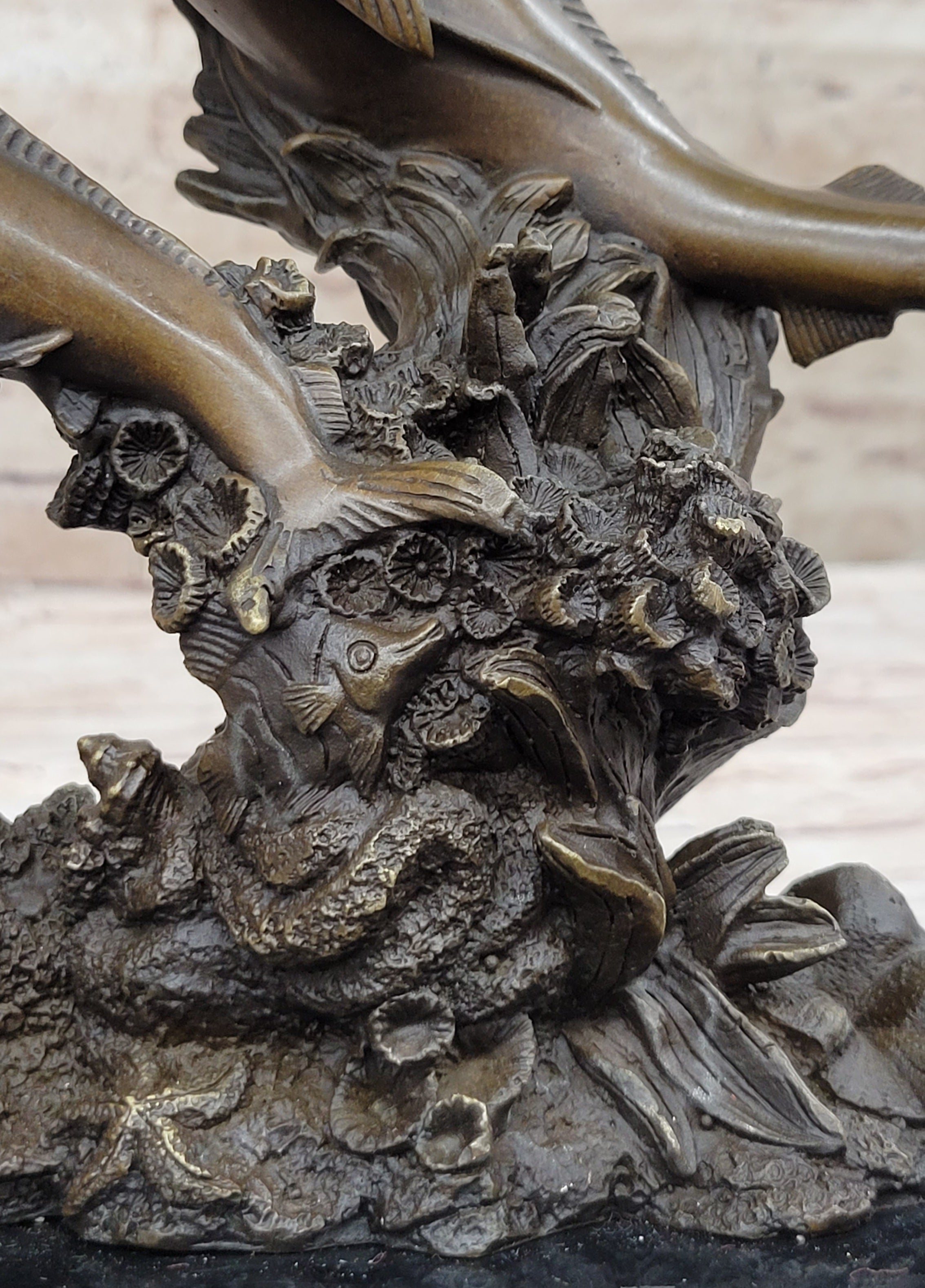 The sculpture is signed by the artist M. Lopez, ensuring that this is a unique and authentic work of art. Whether you are a collector of marine life sculptures or simply a lover of beautiful art, this piece is sure to impress and inspire all who view it.Bronze Dimensions with Marble Base: Height 10" X Width 8"