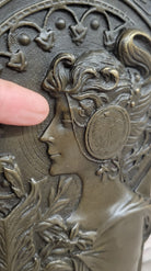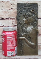 Art Noveau Girl Portrait Bas Relief Bronze Sculpture Carving Hanging Art 9.5" x 4"