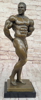 Celebrate the power of physical fitness and dedication with this extraordinary bronze sculpture. It serves as a reminder of the rewards that come from hard work and serves as a source of motivation for individuals pursuing their fitness goals. Embrace the spirit of strength and resilience with this iconic portrayal of the iron man.Bronze Dimensions with Marble Base: Height 19" X Width 7"