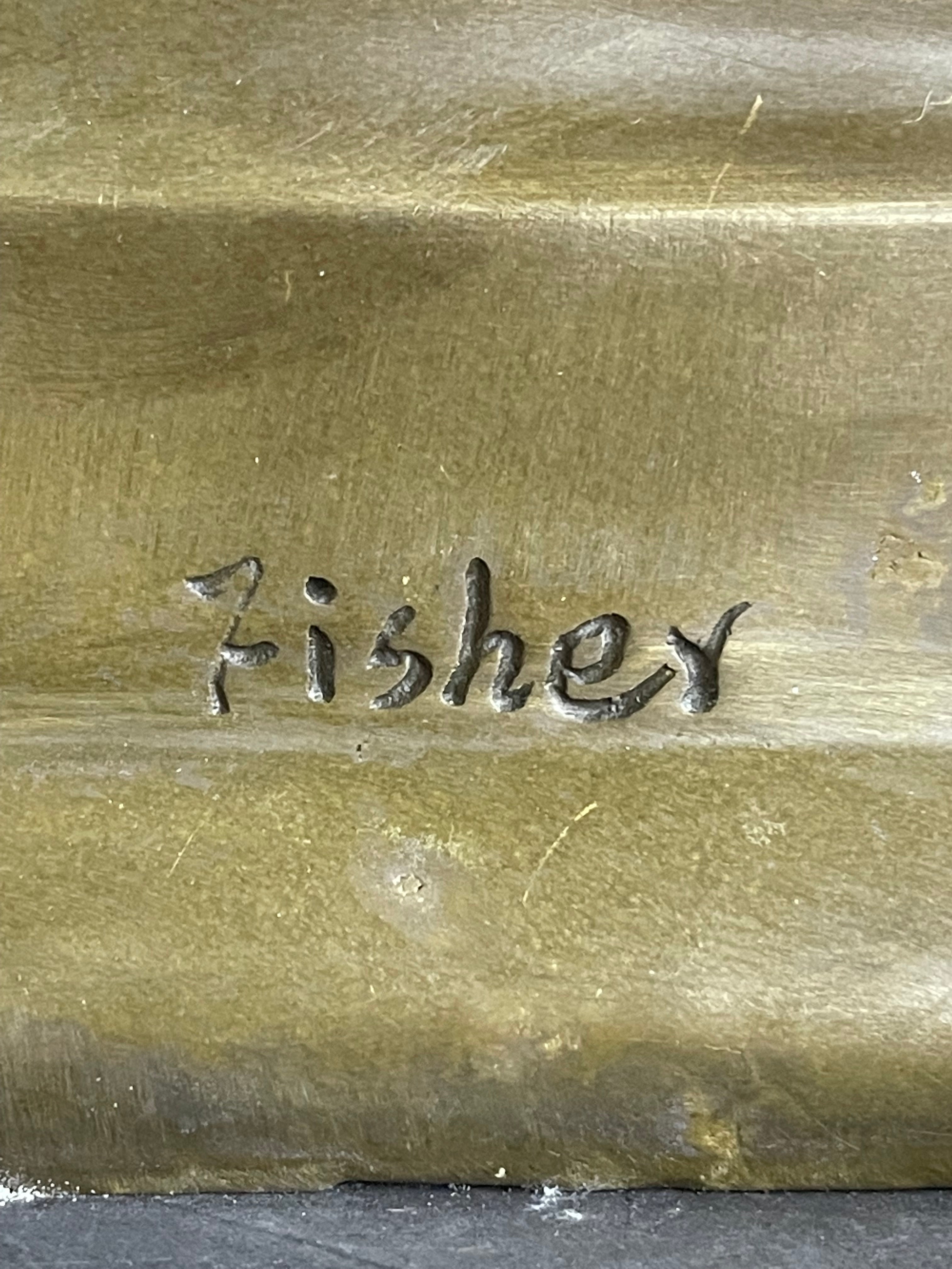 Across diverse cultures and epochs, the eagle embodies multifaceted symbolism, representing a convergence of spiritual protection, strength, wisdom, and courage. As a conduit between the physical and the spiritual, the eagle carries prayers and embodies the illumination of spirit. It stands as a testament to the pursuit of higher truths, offering a unique connection to spirit guides and teachers. This handmade bronze sculpture, cast using the ancient lost-wax method, meticulously portrays the eagle's features, with feathers adorned in a brown patina tarnish that further accentuates its authenticity. Mounted on a black marble base and bearing the artist Fisher's signature, this sculpture resonates as a powerful symbol of balance, dignity, and the embodiment of knowledge and resilience.Bronze Dimensions with Marble Base: 12.5" X 9"
