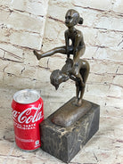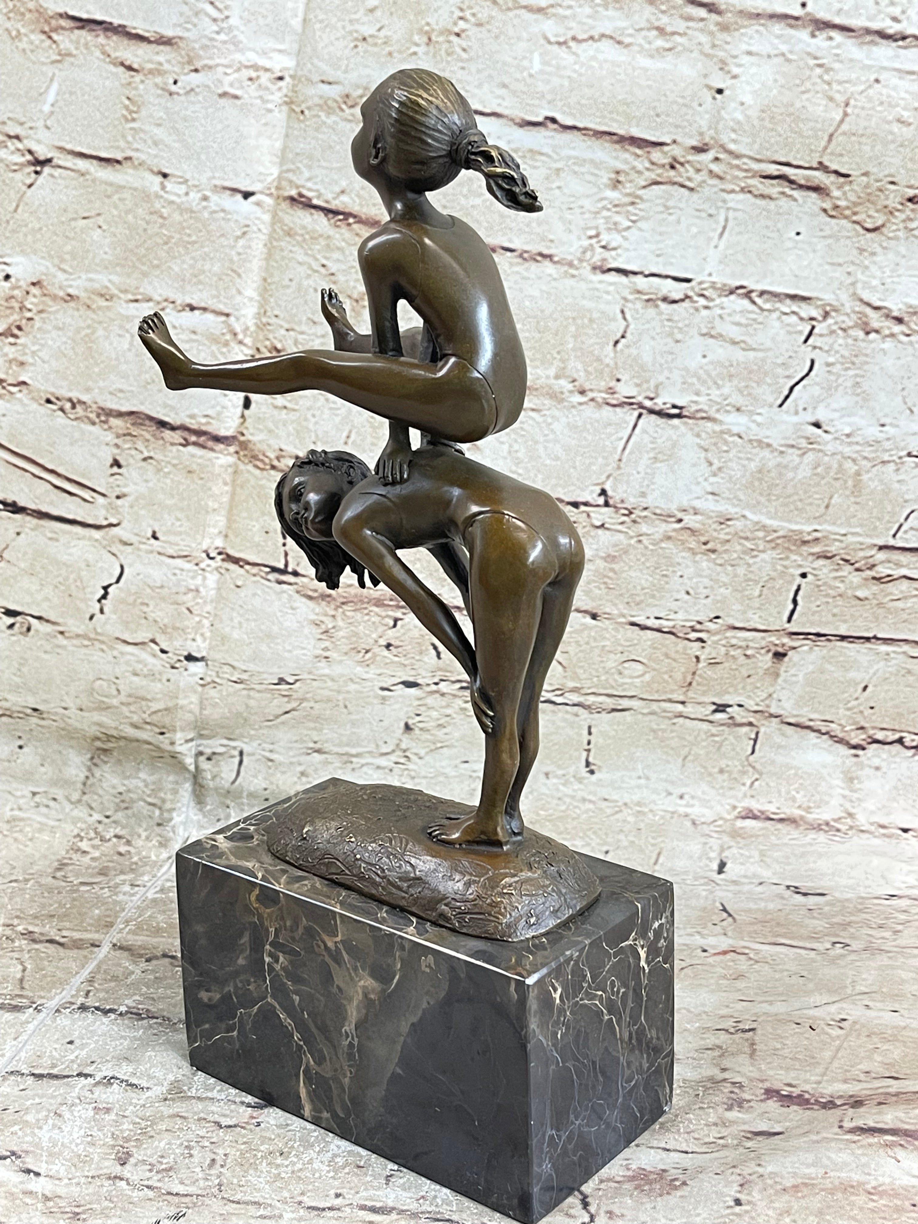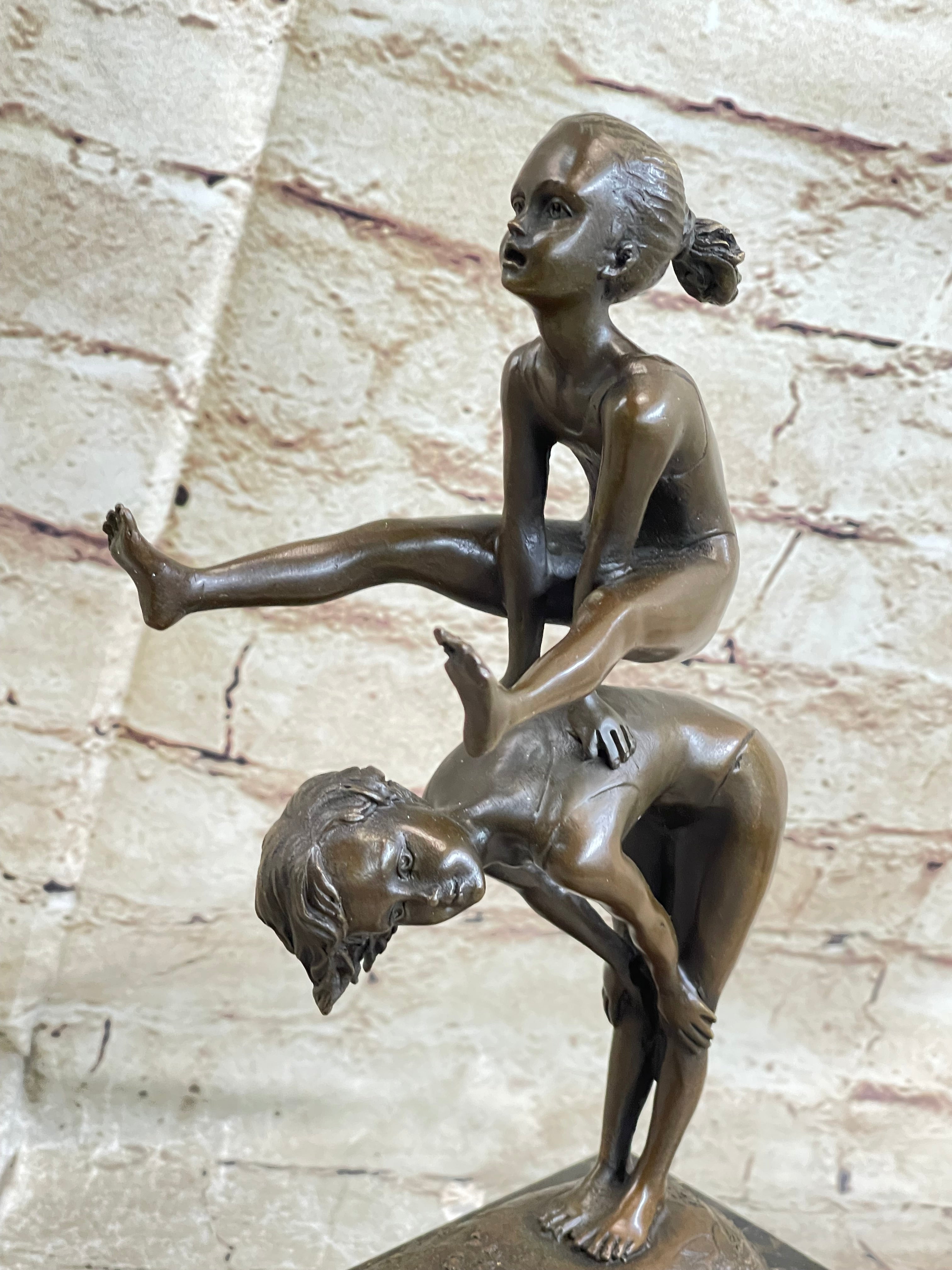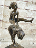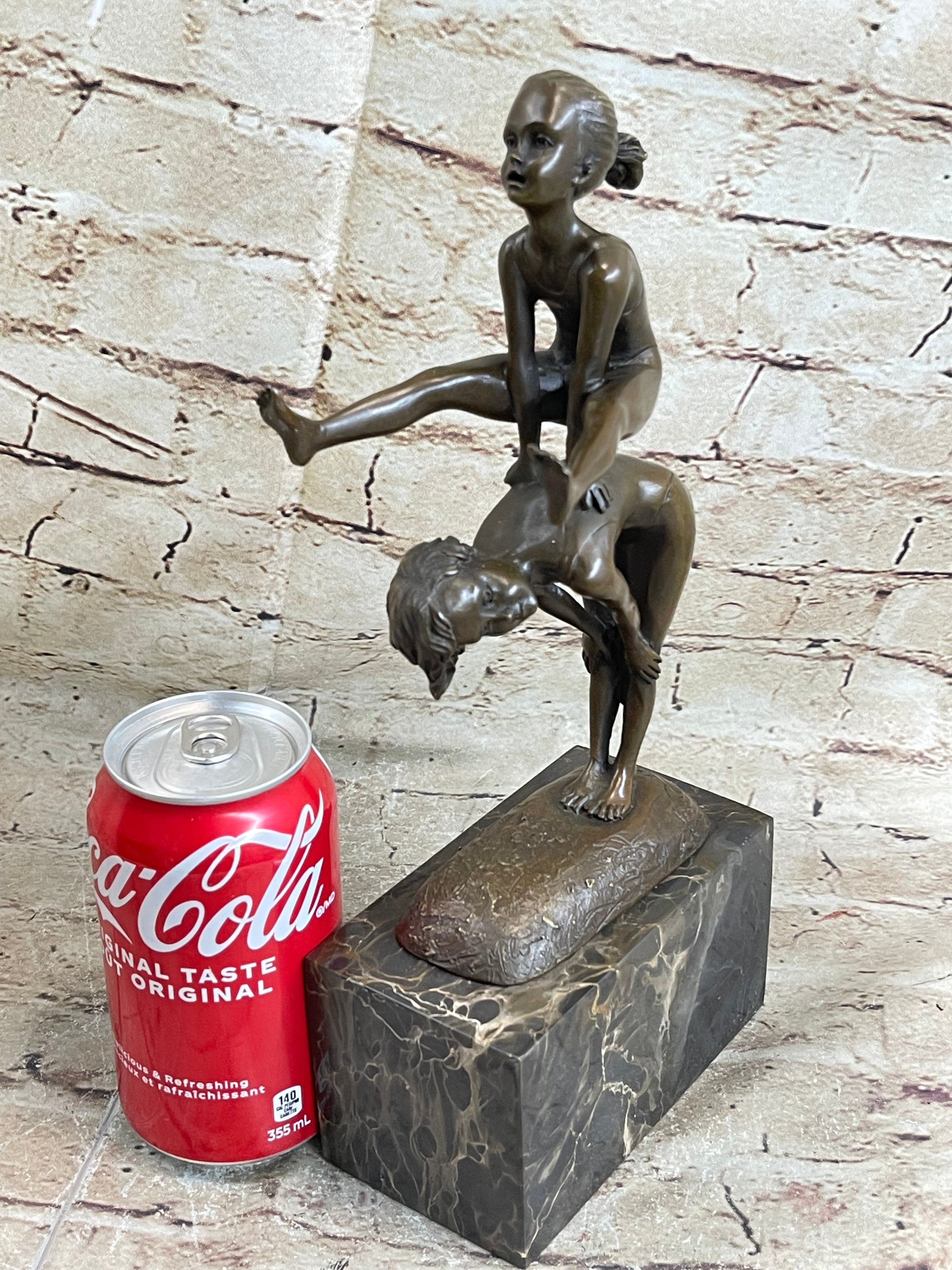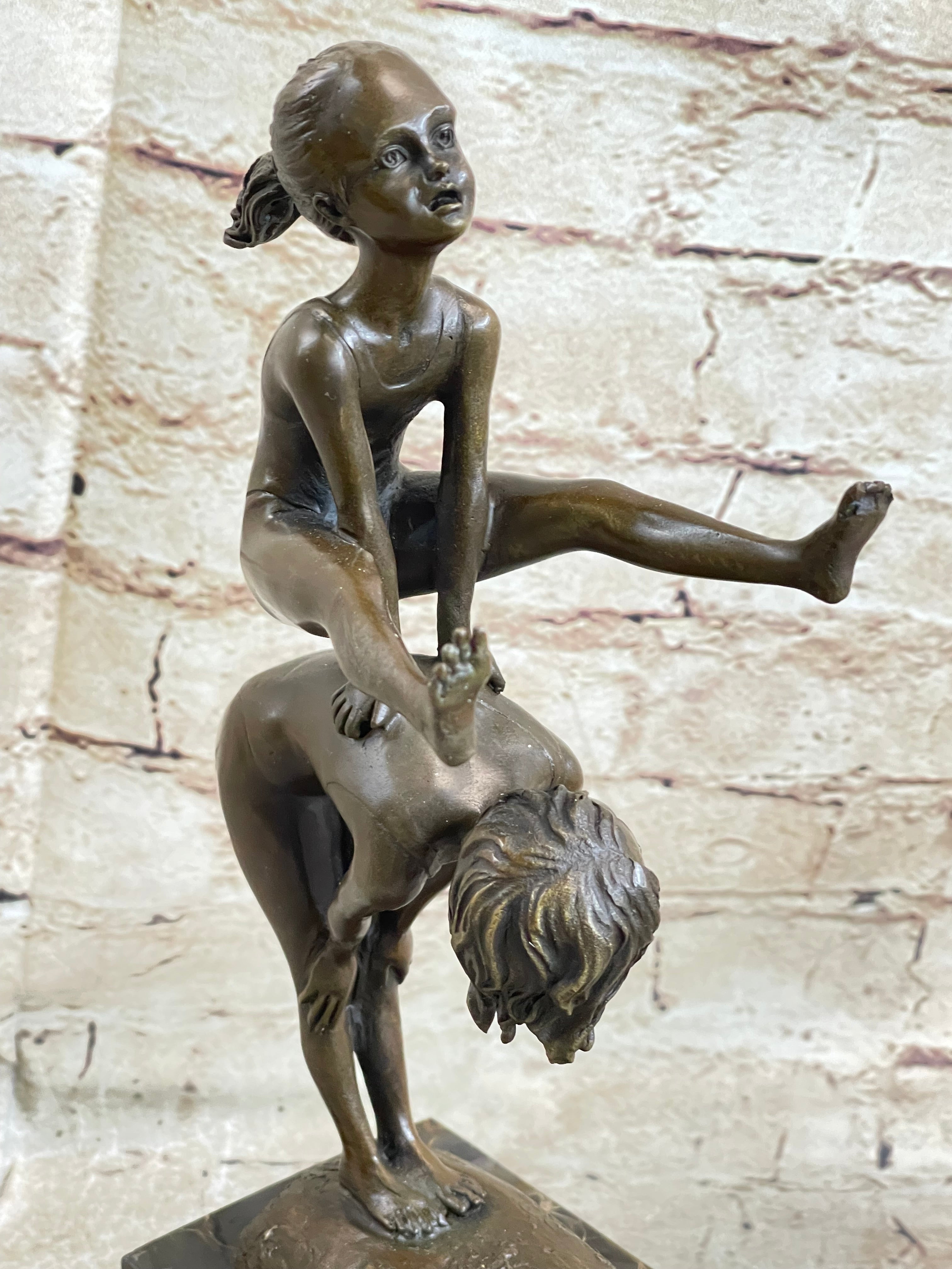 ORIGINAL MILO KIDS PLAYING LEAP FROG BRONZE SCULPTURE HOT CAST MARBLE BASE DECOR