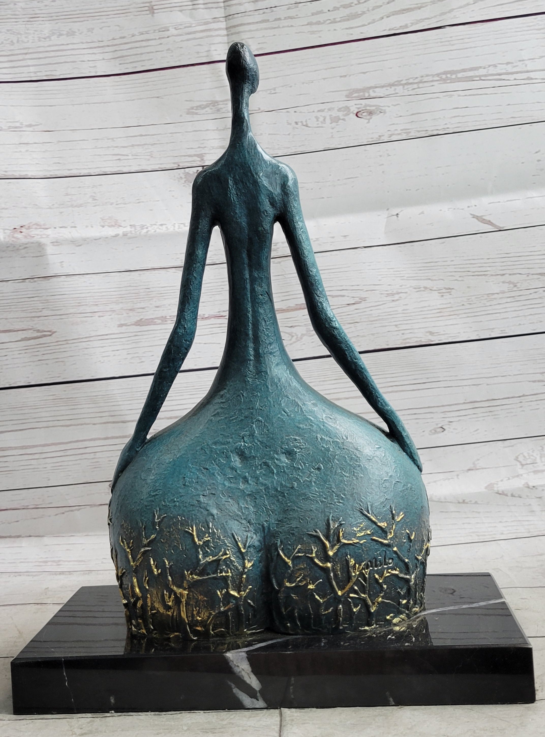 Capturing the essence of fluid motion and feminine strength, this abstract sculpture portrays a female dancer in a striking and powerful pose, emphasizing the alluring curves and contours that symbolize the inherent beauty and vitality of womanhood. Crafted with precision and care, the sculpture is fashioned entirely from 100% bronze, meticulously cast using the esteemed lost wax method. Poised gracefully atop a sleek black marble base, this remarkable piece serves as a striking representation of the timeless allure and strength of the female form. Marked with the signature of the acclaimed artist Milo, this sculpture stands as a captivating testament to the enduring spirit and elegance of the female dancer, capturing the dynamic essence of movement and grace that defines the art of dance.