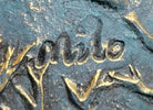 Exuding an air of captivating elegance and feminine strength, this abstract sculpture masterfully captures the essence of a female dancer, showcased in a powerful and sharply defined position that speaks to the timeless beauty and vitality inherent in the female form. Reflecting the alluring contours and curves often associated with feminine grace and allure, the sculpture is meticulously crafted from 100% bronze, employing the intricate and revered lost wax method to ensure its exceptional quality and detail. Elevated on a sleek black marble base, this striking piece embodies the enduring spirit and elegance of the female dancer, serving as a captivating tribute to the fluidity and grace that define the art of dance. Bearing the signature of the renowned artist Milo, this sculpture stands as a testament to the enduring allure and strength embodied by the female form, capturing the essence of movement and power that resonates throughout the art world.Bronze Dimensions with Marble Base: Height 15" X Width 11"
