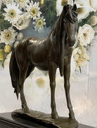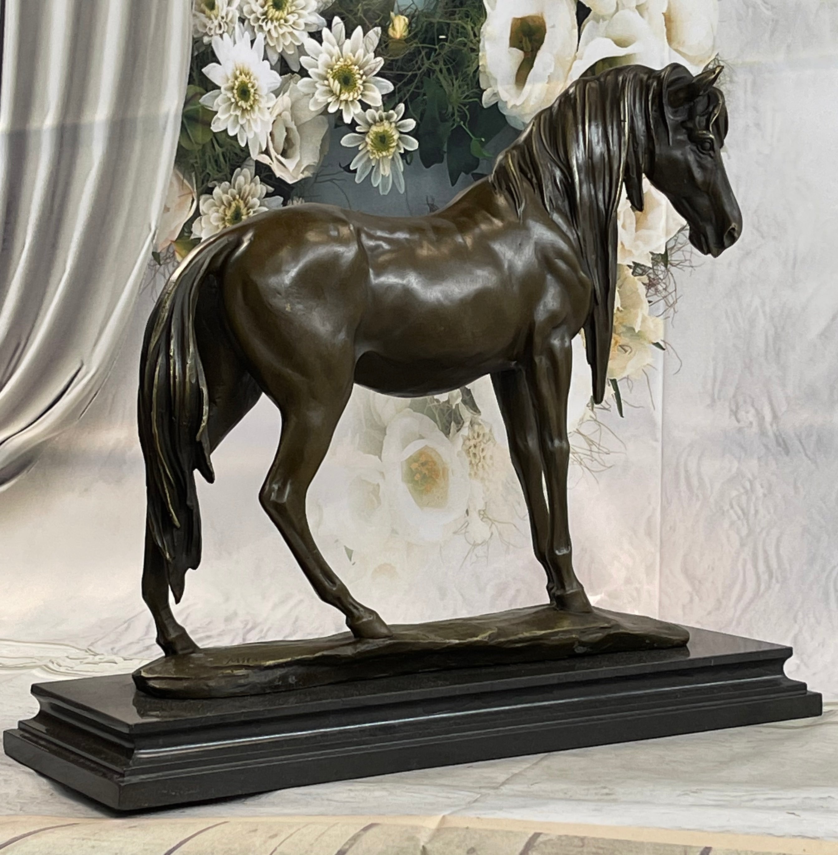 The sculpture, with its portrayal of a lean and powerful horse, resonates with equestrian enthusiasts and those who appreciate the untamed beauty of these majestic creatures. Crafted with precision and attention to detail, the artwork showcases the artist's commitment to capturing the authenticity of the subject matter. The use of the lost wax method adds depth and texture to the sculpture, allowing for a nuanced representation of the horse's form and character.
