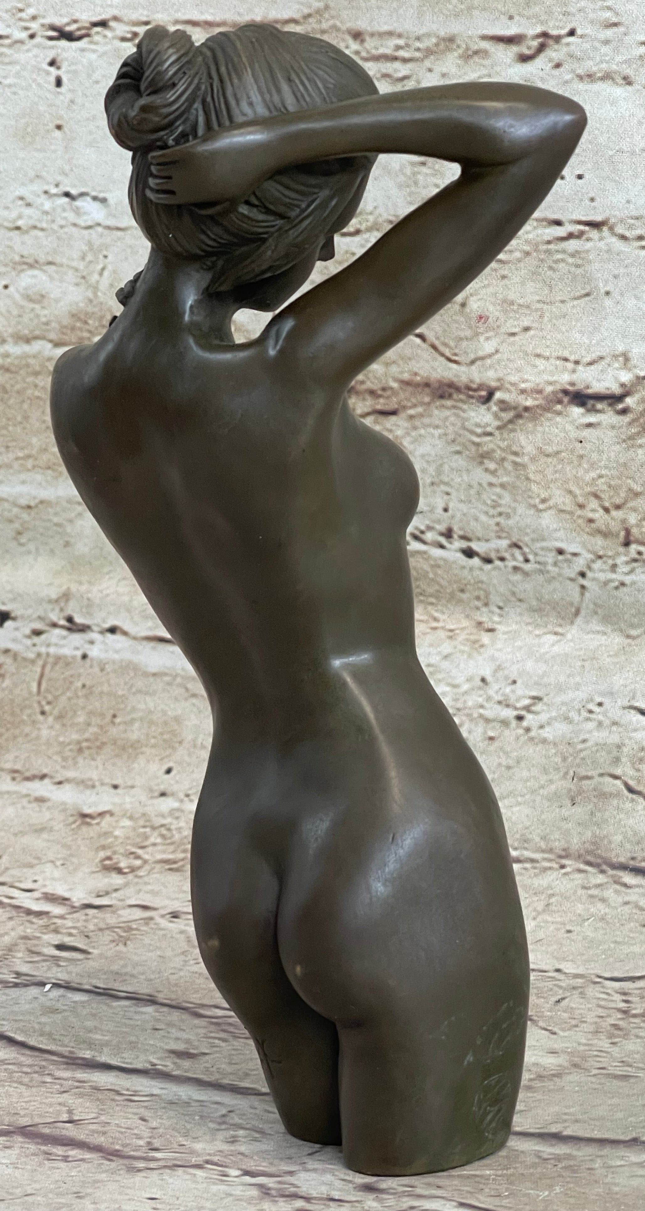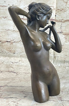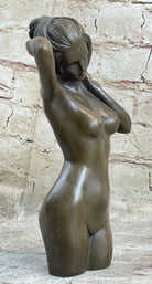 Original Signed Nude Girl Bust Torso Bronze Sculpture Art Statue Figure Figurine
