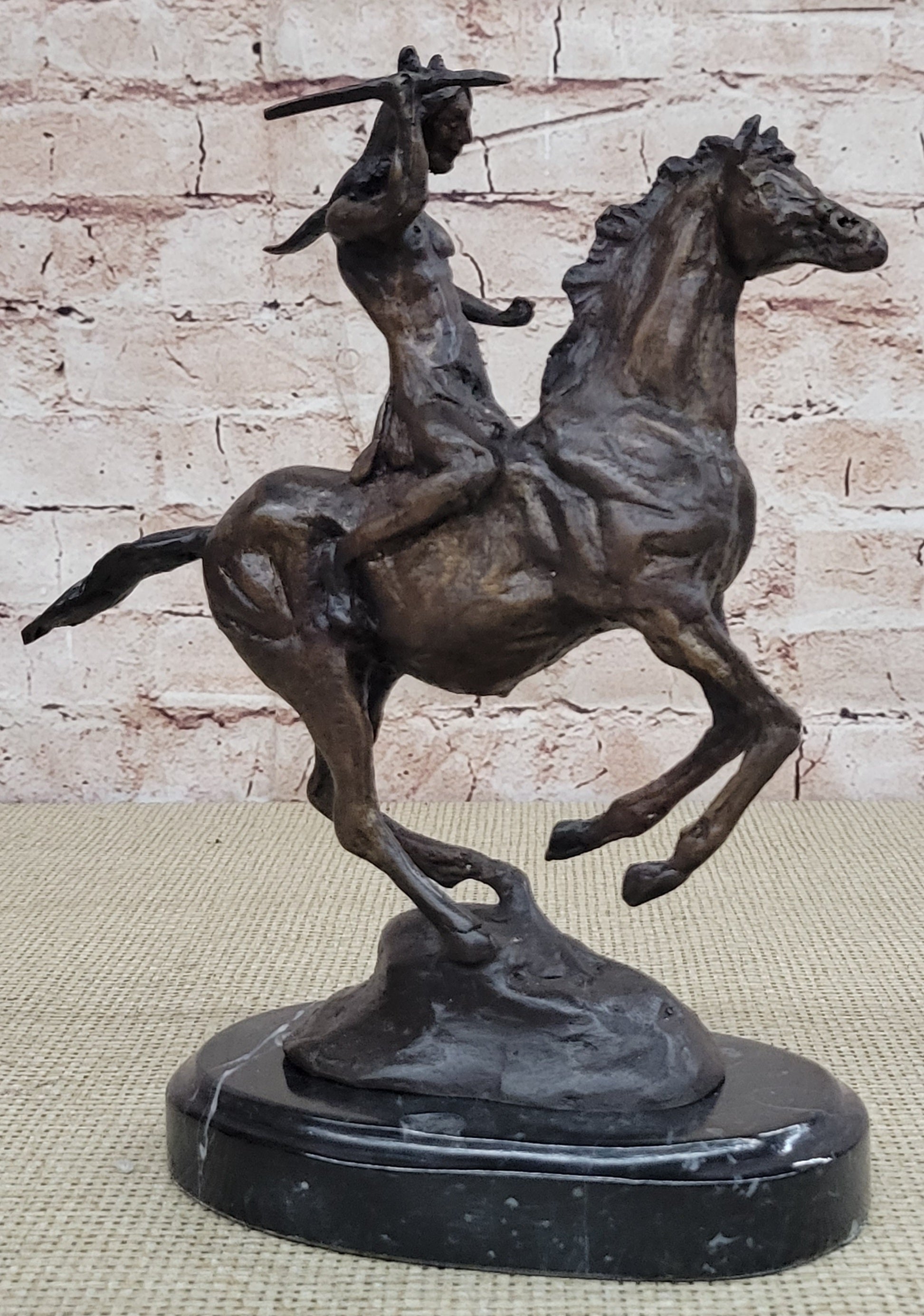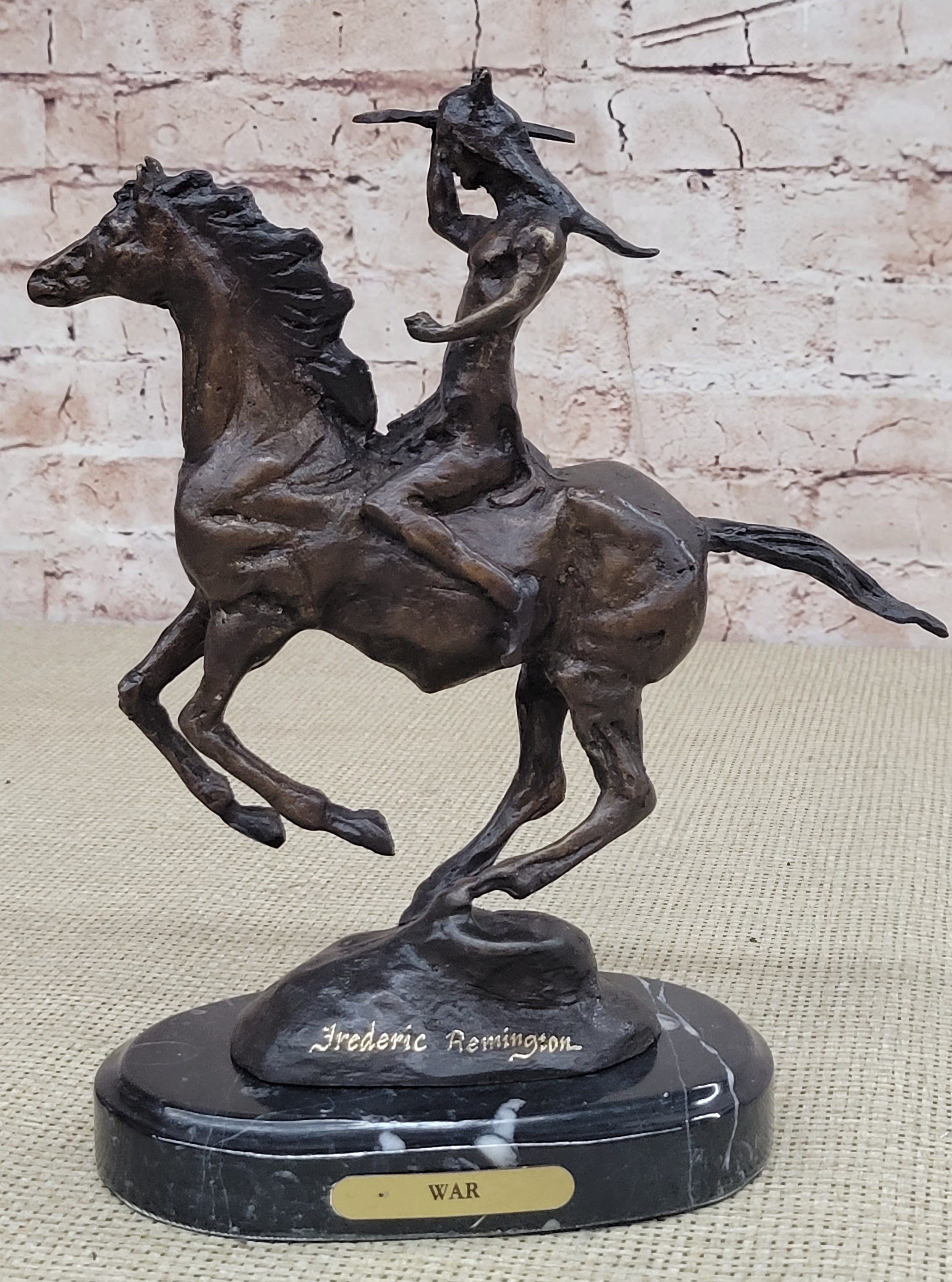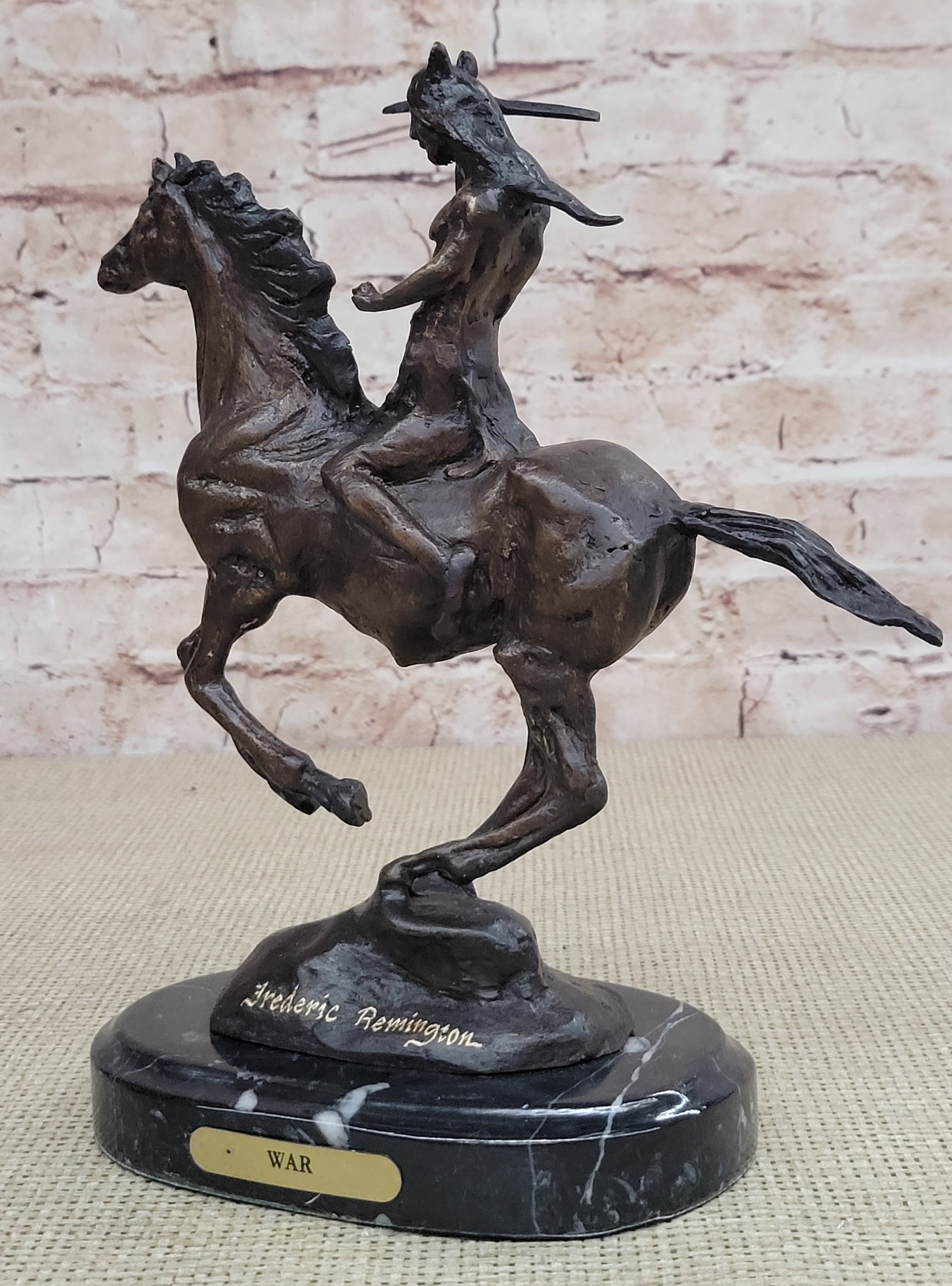 WAR Western Bronze Sculpture Native American Horseback Statue 9" x 8"