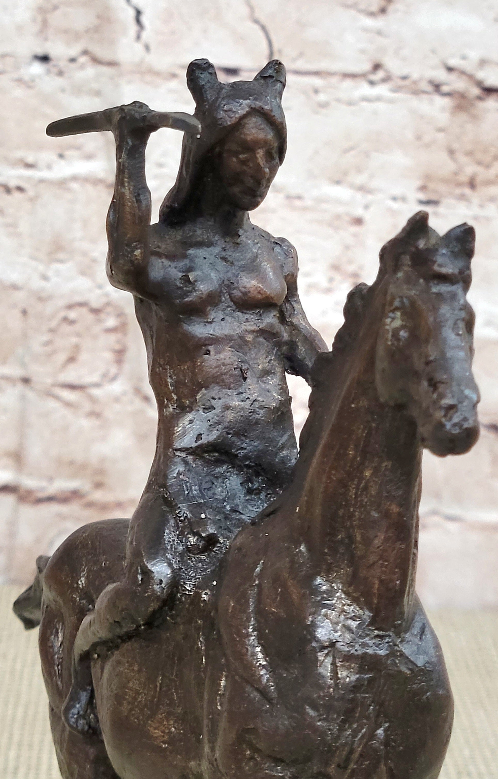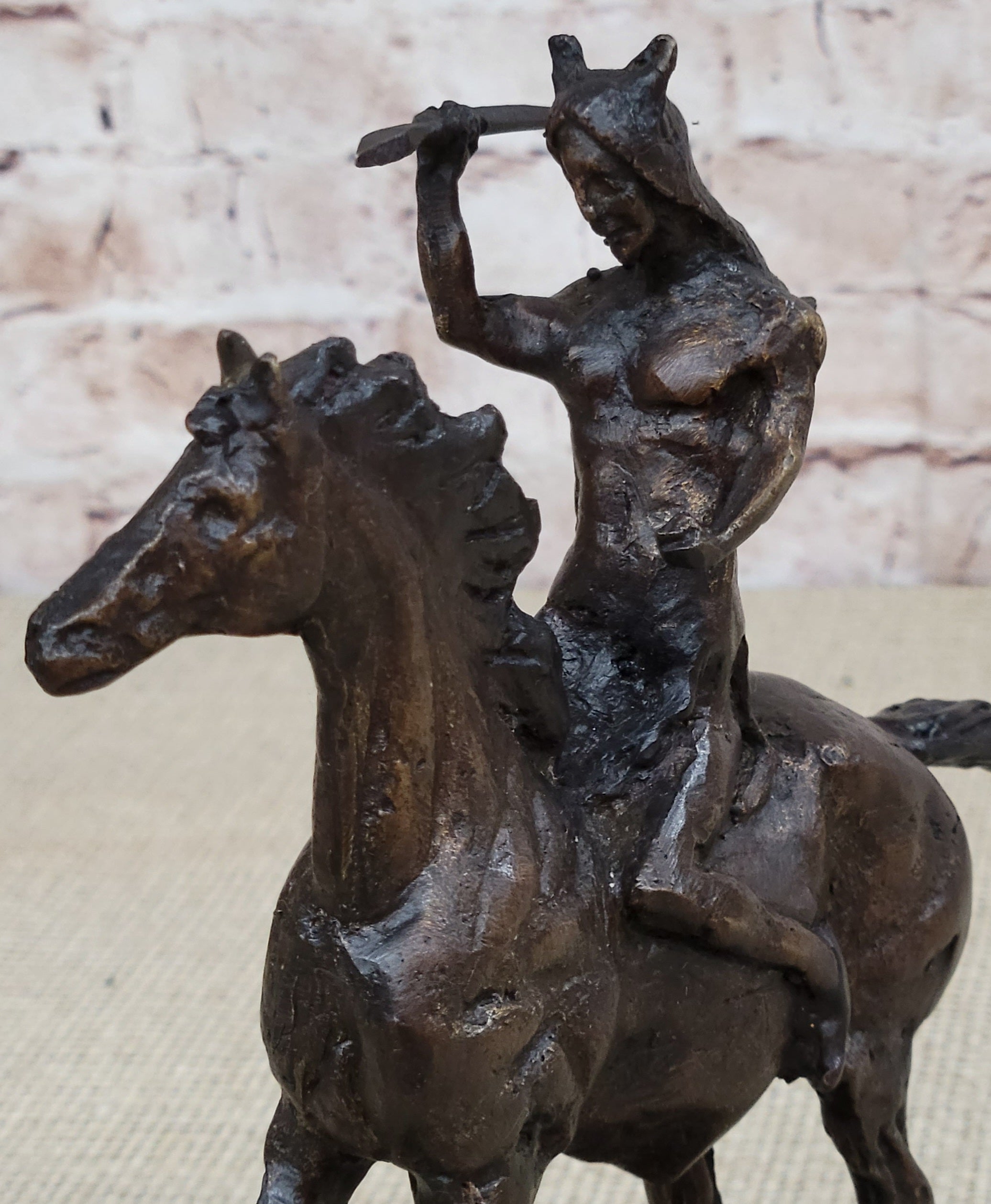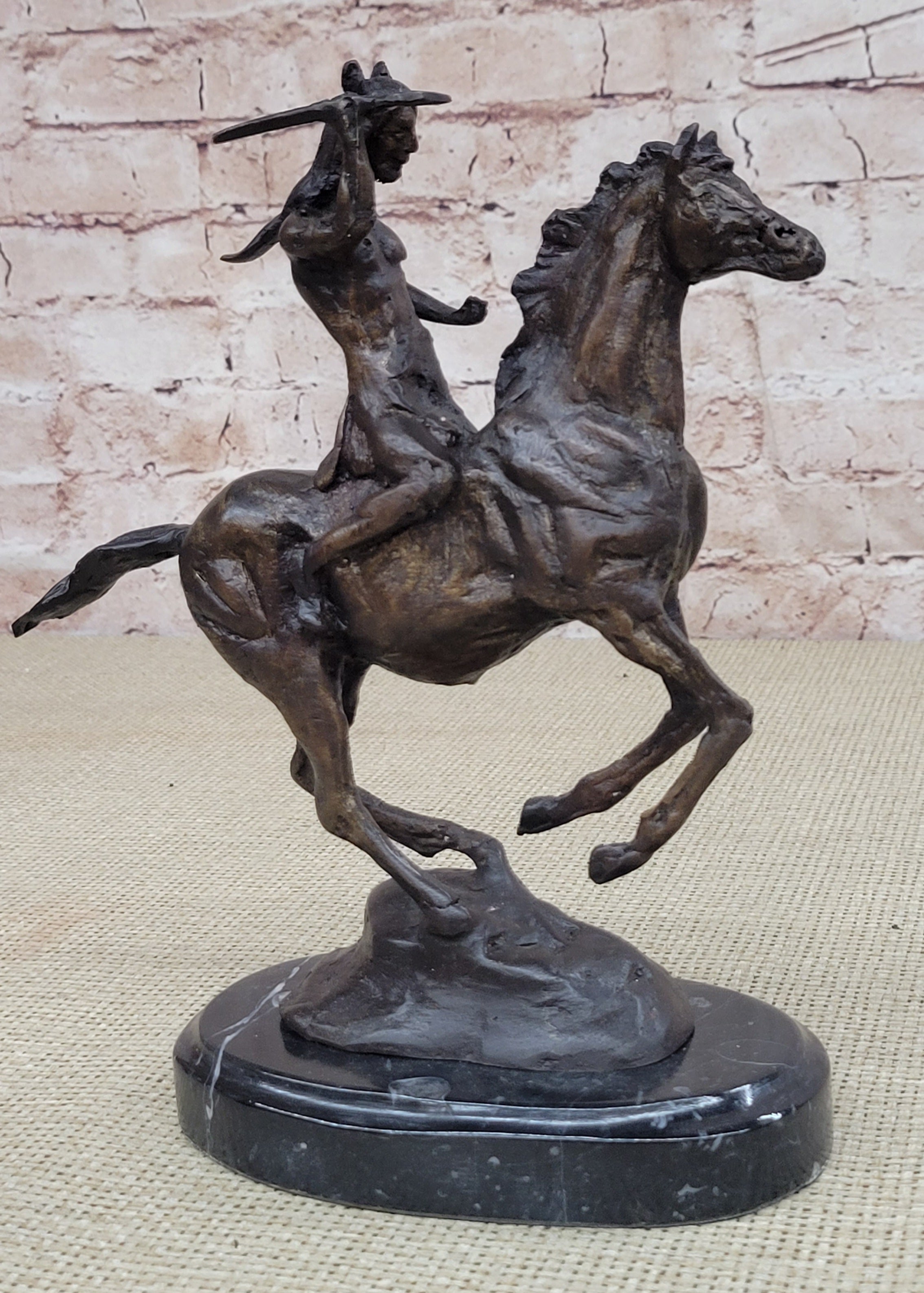 WAR Western Bronze Sculpture Native American Horseback Statue 9" x 8"