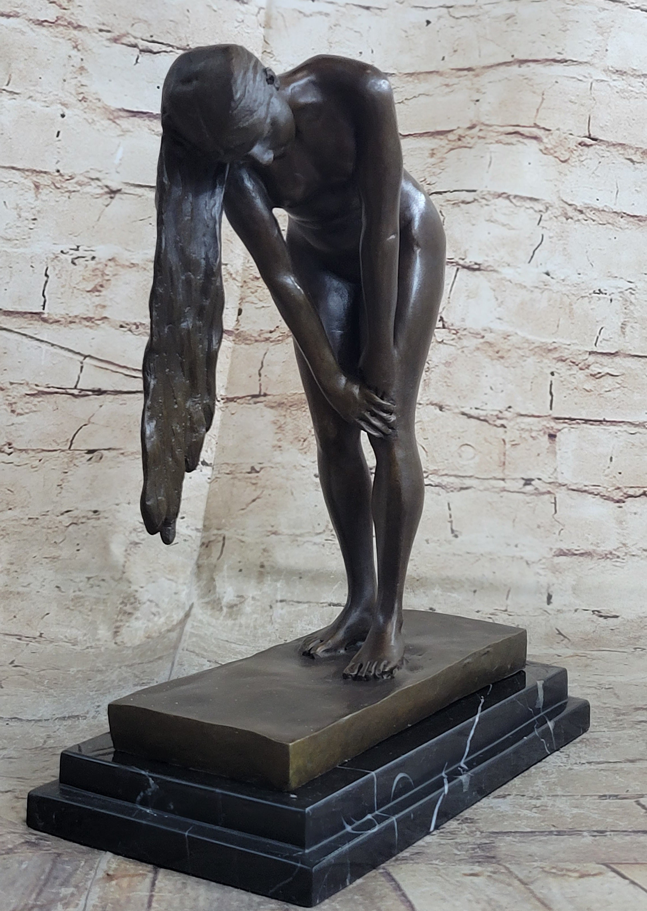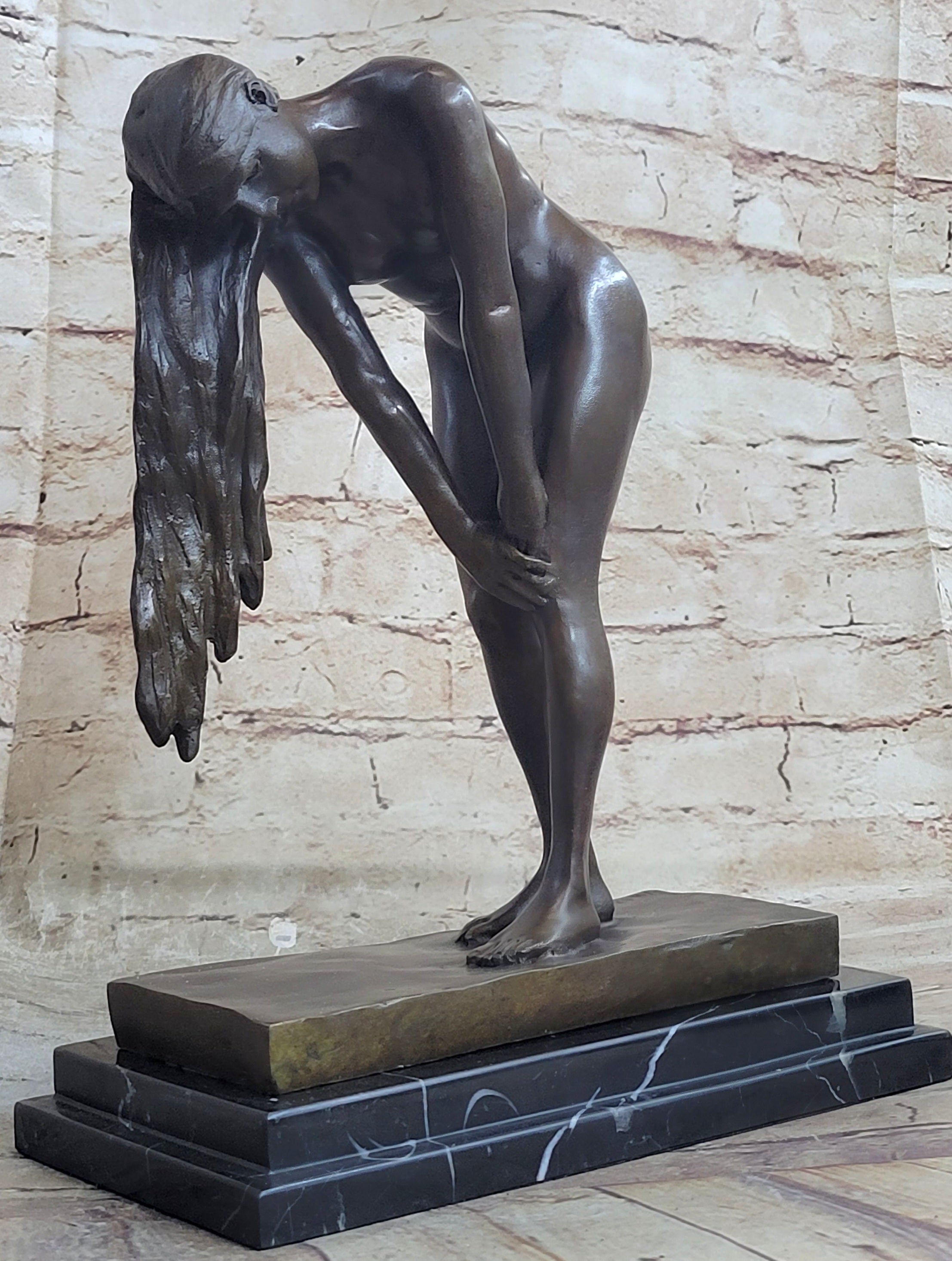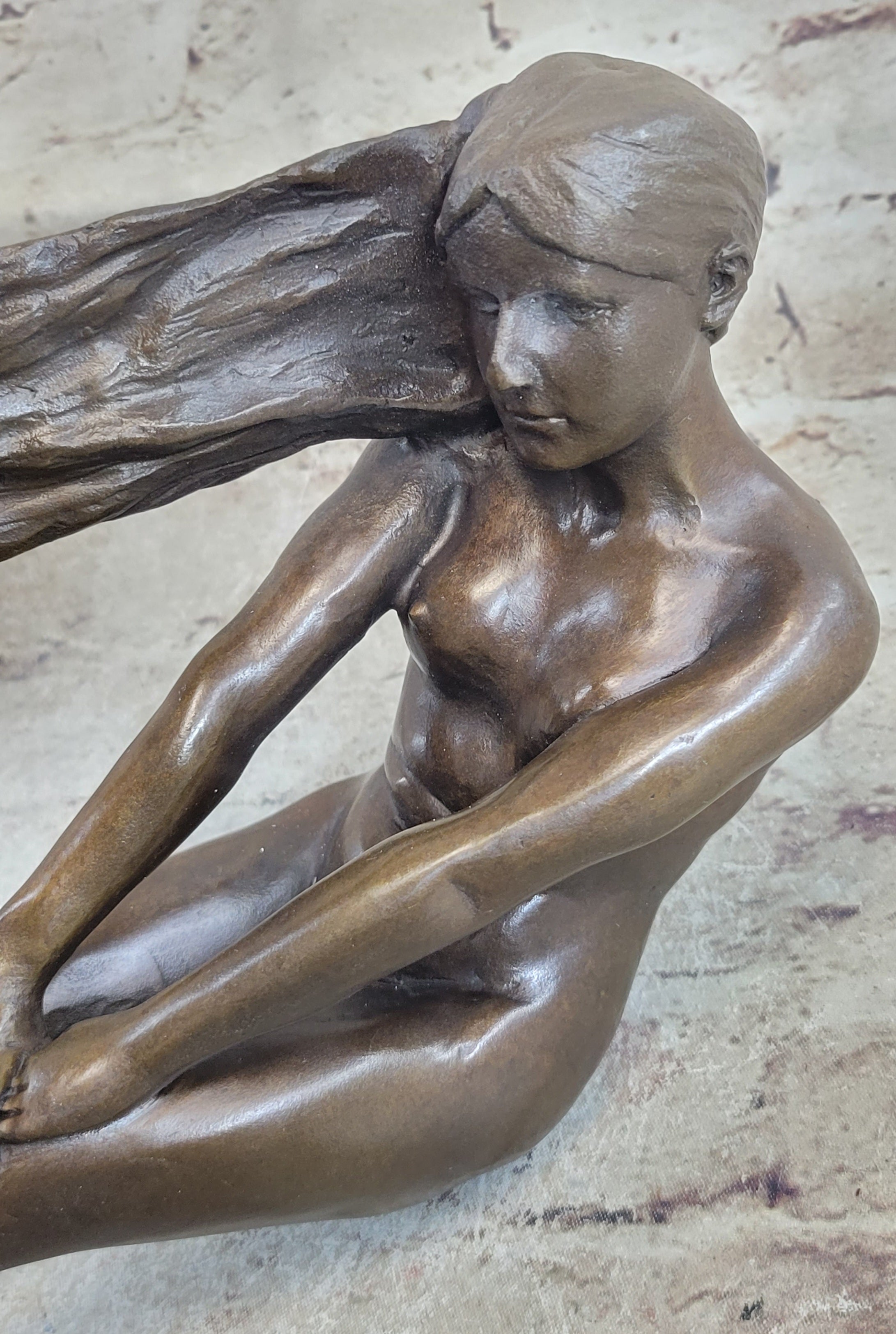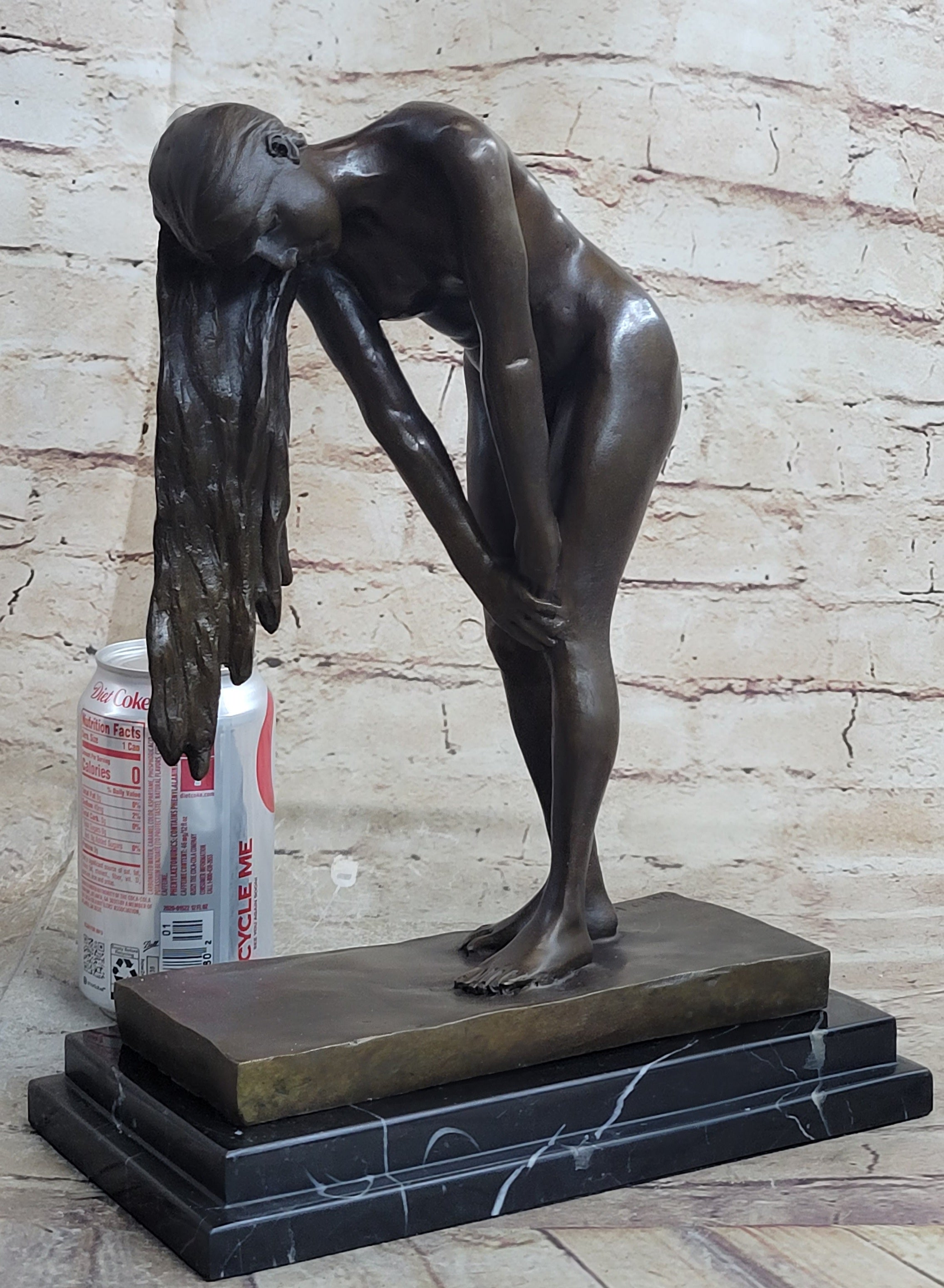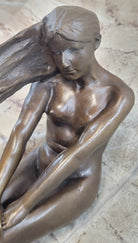 Original Vitaleh Nude Girl w/ Long Hair Bronze Sculpture Statue Art Gift
