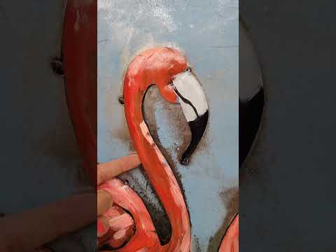 Pair of Flamingos Mixed Media 3D Wall Art Painting on Metal & Wood