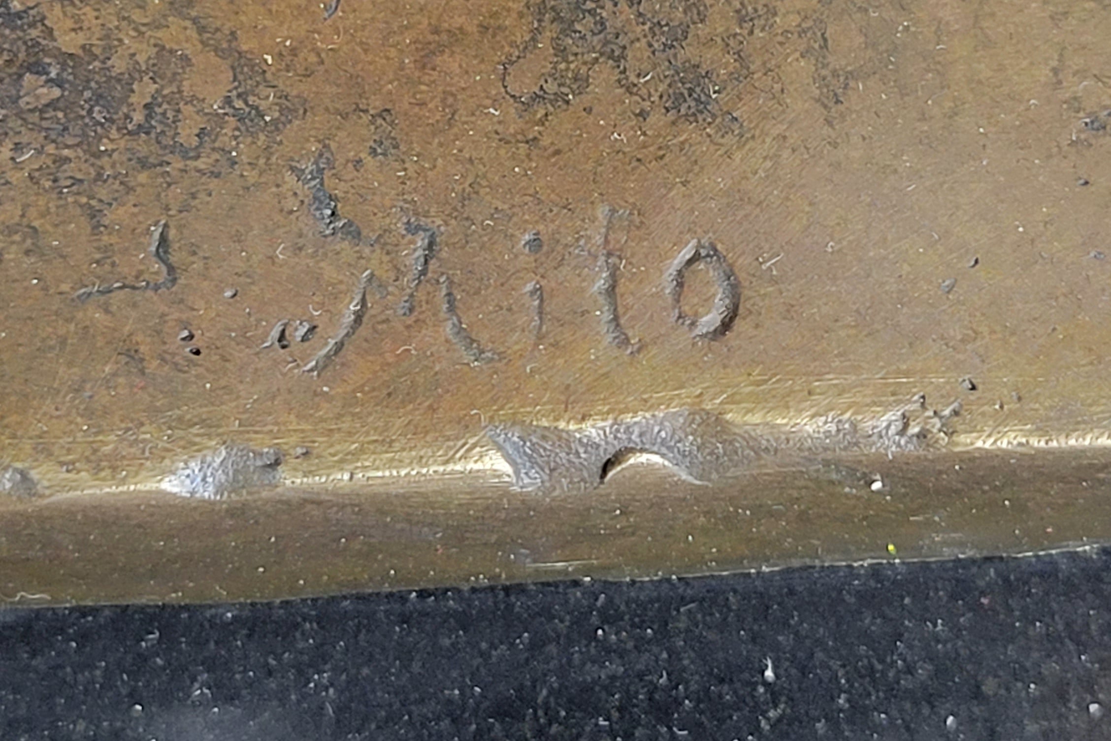 Mounted on a black marble base, this bronze sculpture is not only a celebration of dance but also a testament to the timeless appeal of classic craftsmanship. The contrast between the bronze figures and the sleek marble base enhances its visual impact, making it a standout piece in any collection or display. This sculpture beautifully encapsulates the elegance and romance of a dance, making it a perfect addition to any art lover's home. Signed by D.H. Chiparus, it bears the hallmark of one of the most celebrated sculptors of the Art Deco period.Bronze Dimensions with Marble Base: Height 15.5" X Width 7"