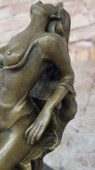 Crafted with meticulous attention to detail, this sculpture is a testament to the artist's skill and creativity. The bronze material, carefully cast using the renowned "Lost Wax Method," showcases the intricate details of the woman's form, from the curves of her body to the folds of her negligee. The sculpture is adorned with a rich brown patina, enhancing its visual appeal and lending it a timeless quality. Mounted on a marble base, it stands as a true work of art.