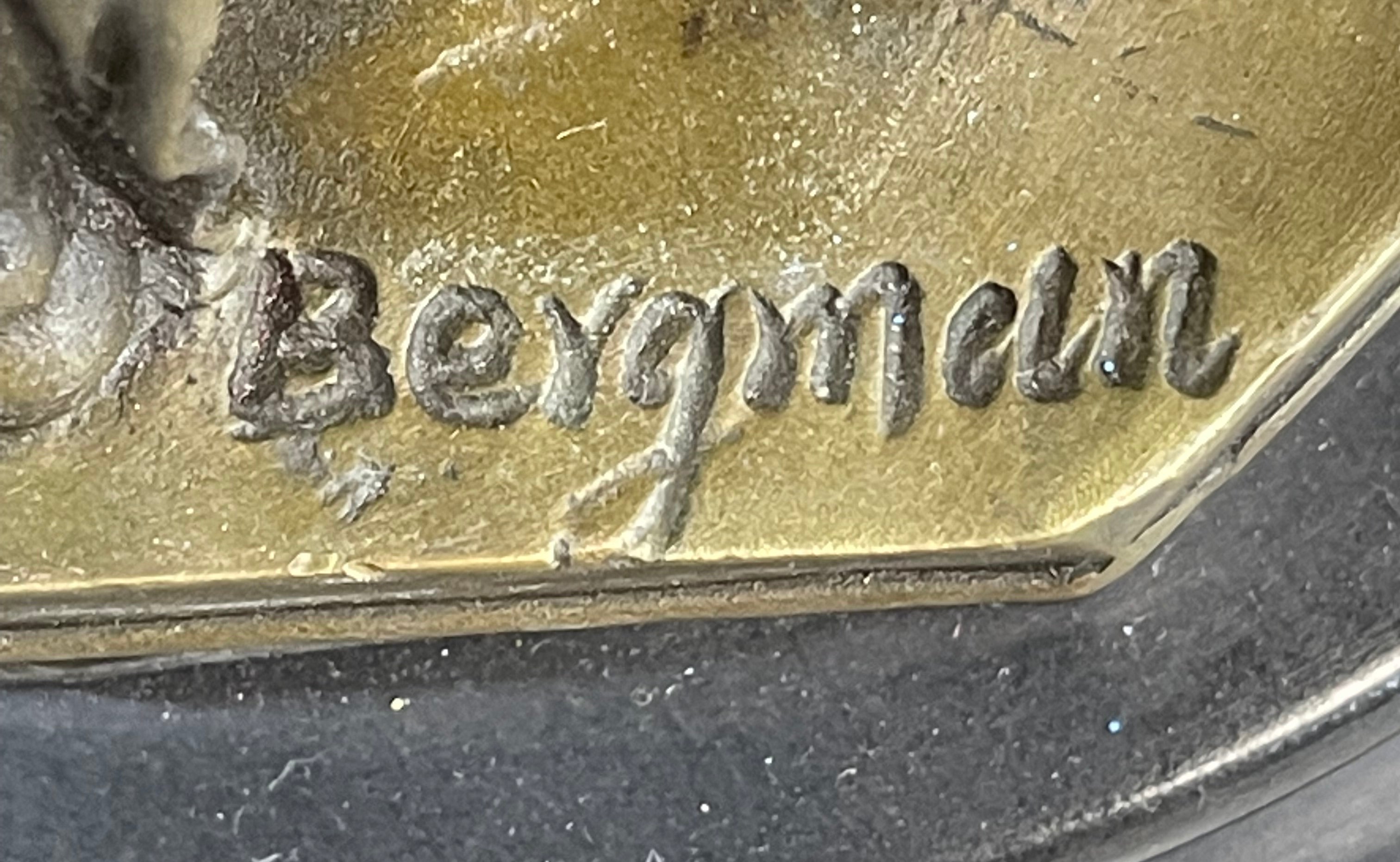 Franz Bergman (Gablonz, Austria 1838-1894) was a pioneering sculptor who founded a legacy of exquisite bronze sculptures. His son, Franz Xaviar Bergman (Vienna, Austria 1865-1953), continued this artistic tradition, further enhancing the reputation of the Bergman foundry with his exceptional craftsmanship and innovative designs. The Bergman foundry became renowned for its diverse and intricate bronze works, encompassing a wide array of themes and subjects.