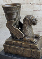 Persian Persepolis Griffon Dragon Bird Candle Holder Bronze Bookend Sculpture Statue Decor