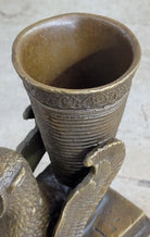 This remarkable bronze sculpture beautifully captures the essence of the Dragon Peacock, with meticulous attention given to every intricate detail. The craftsmanship is truly commendable, showcasing fine lines delicately etched onto the dragon's skin. The exquisite peacock tail serves a dual purpose, doubling as a charming vase, candle holder, or even an incense burner.