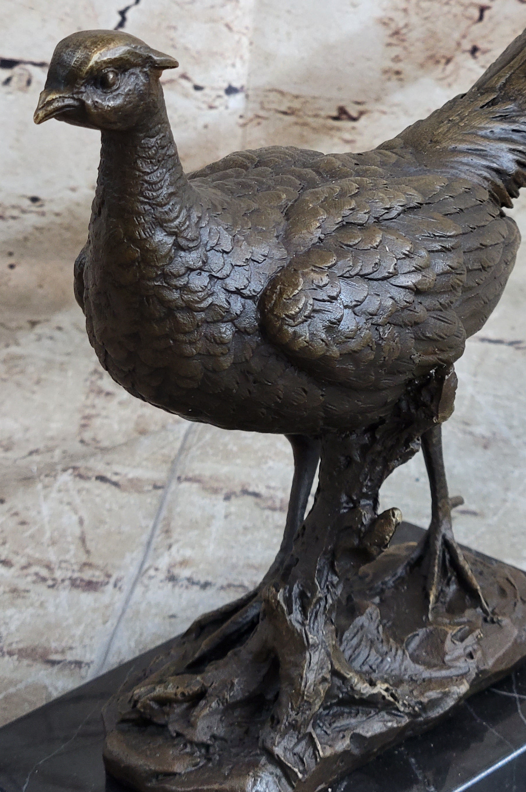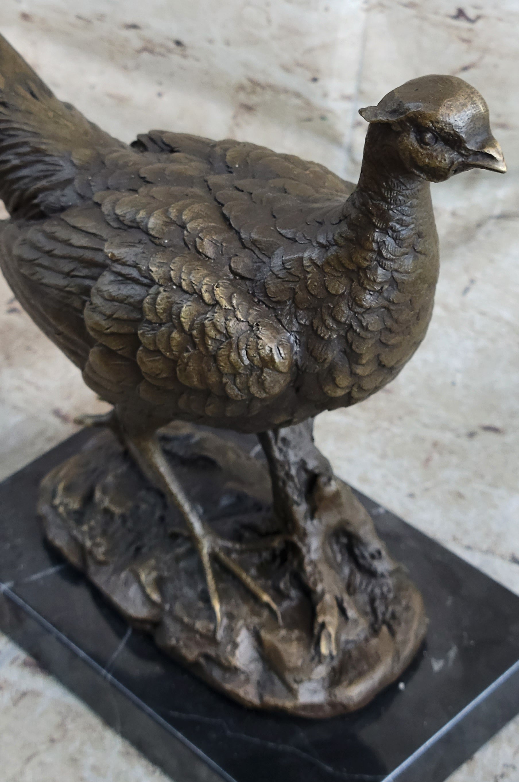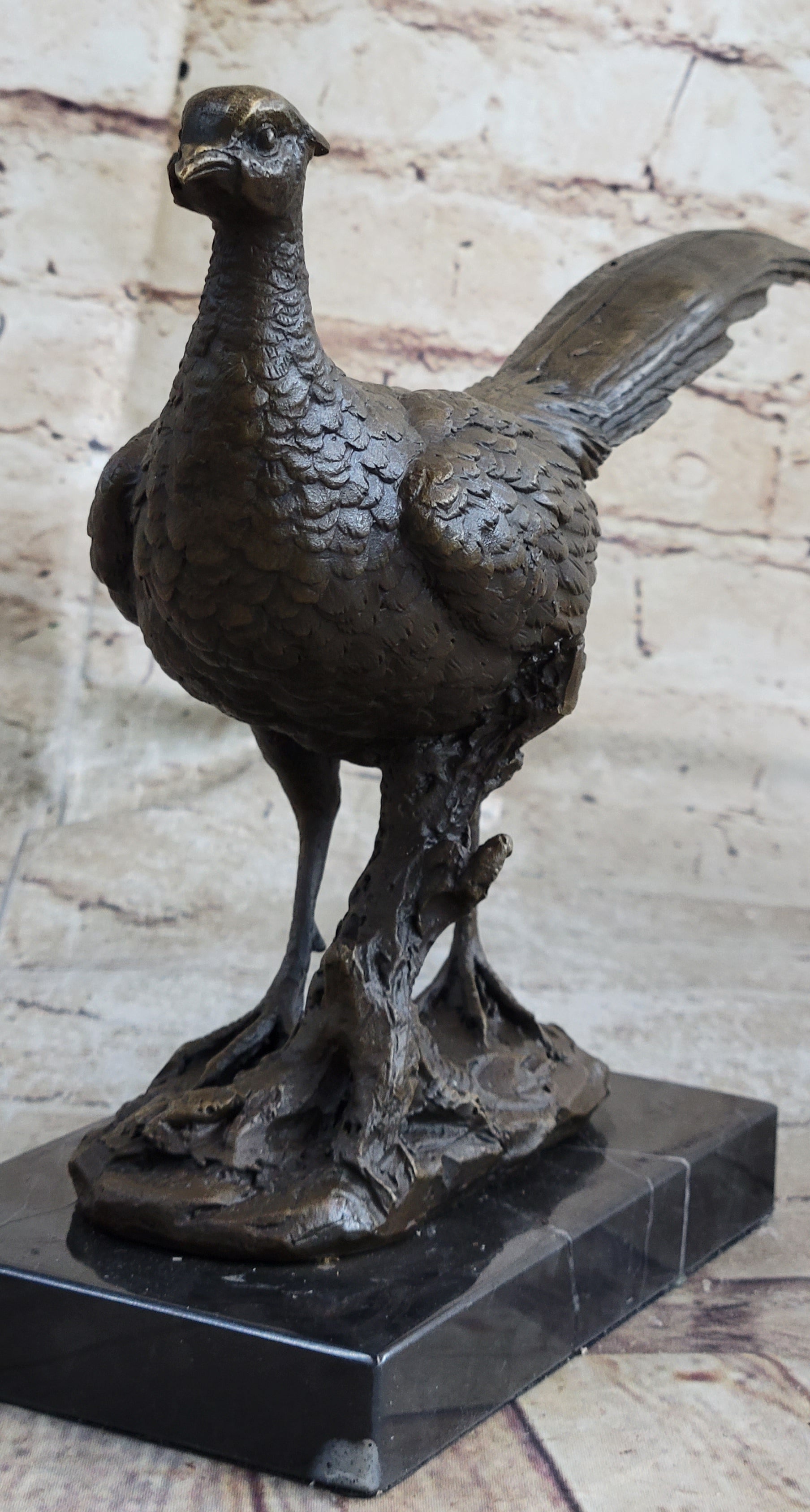 Pheasant Bronze Sculpture Grouse Hunter Wildlife Lodge Art Marble Bird Statue